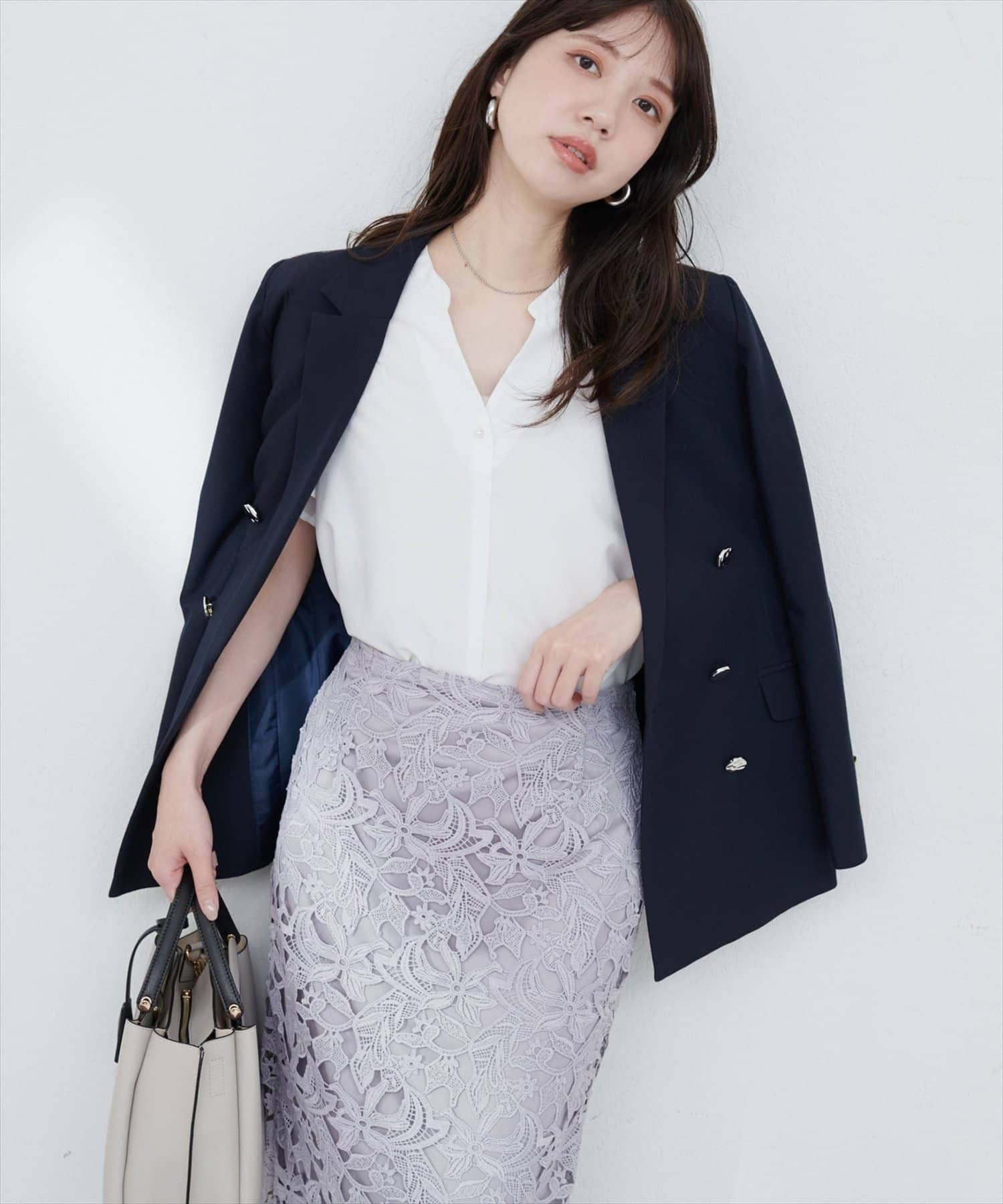 オフィススタイルには、タイトスカートやパンツと合わせてスマートに。