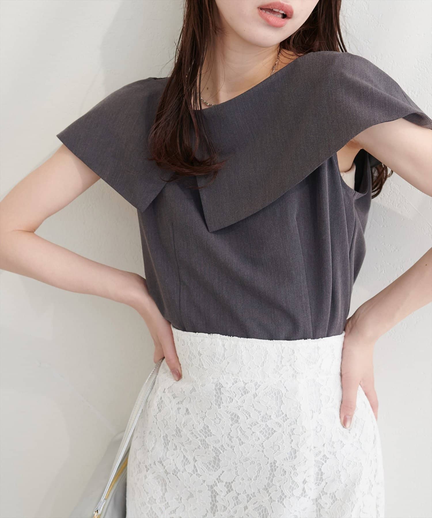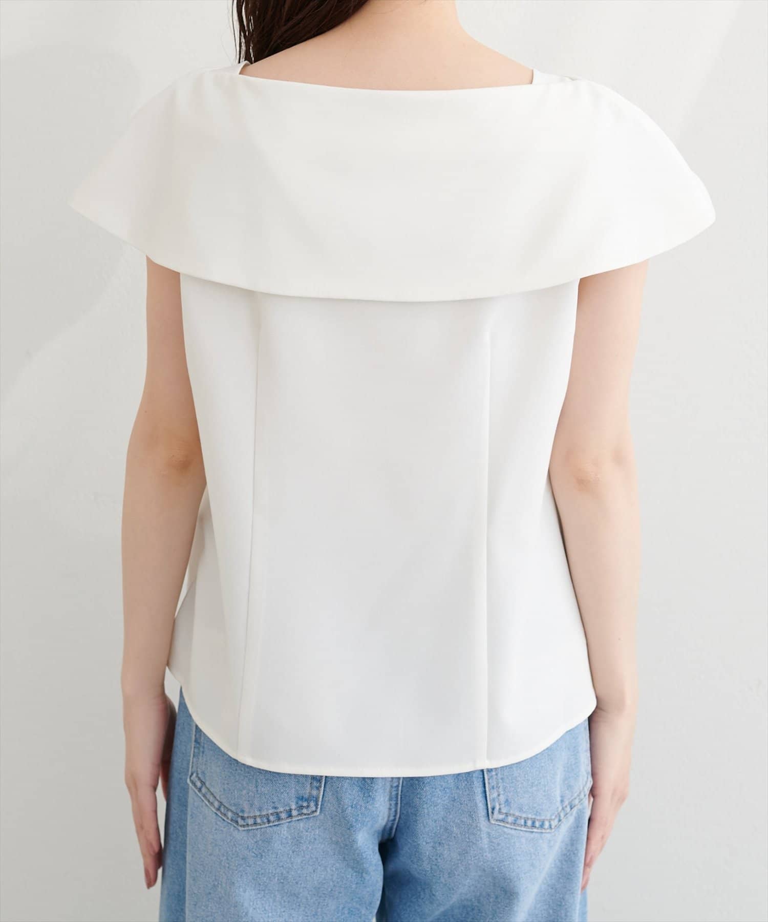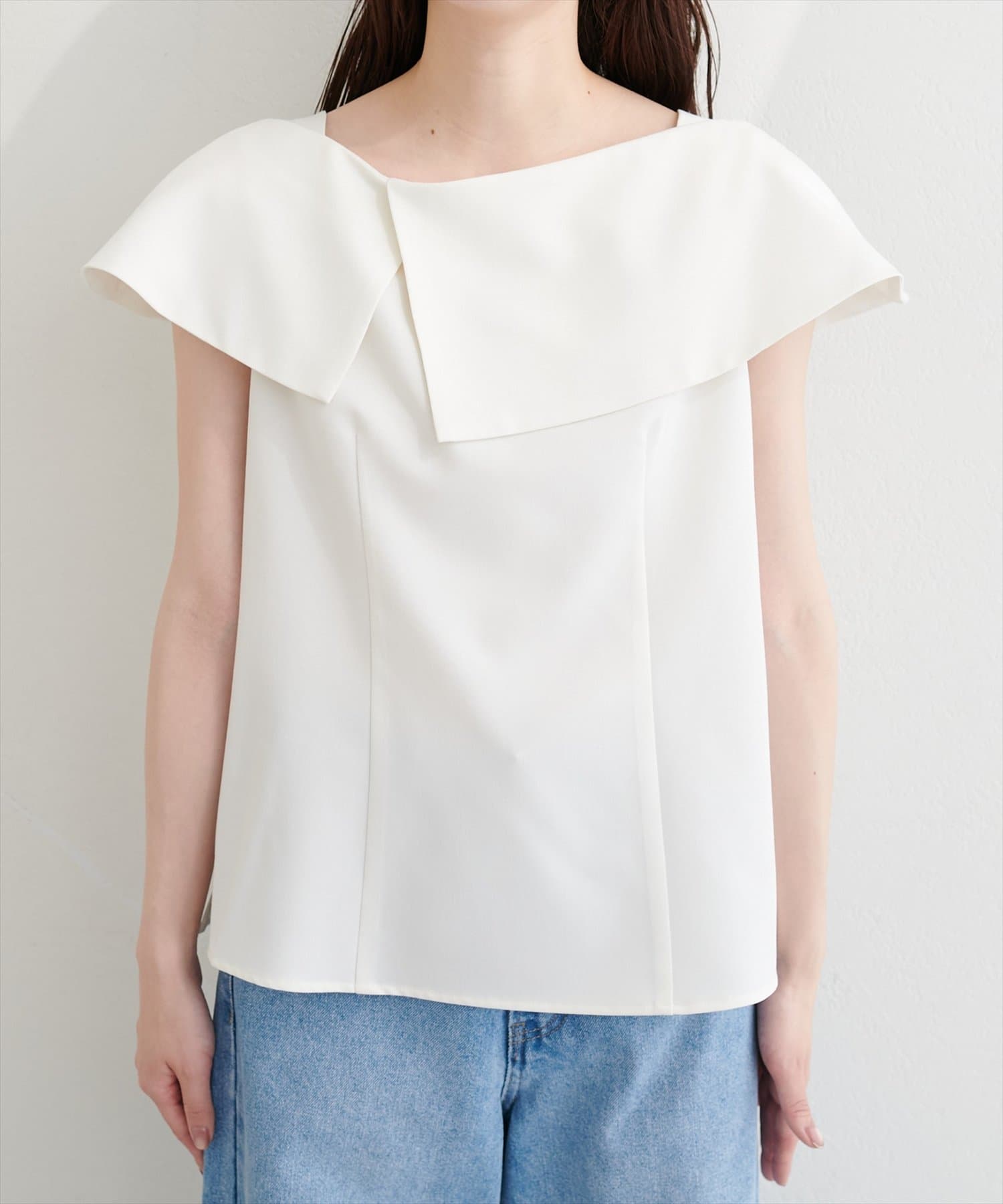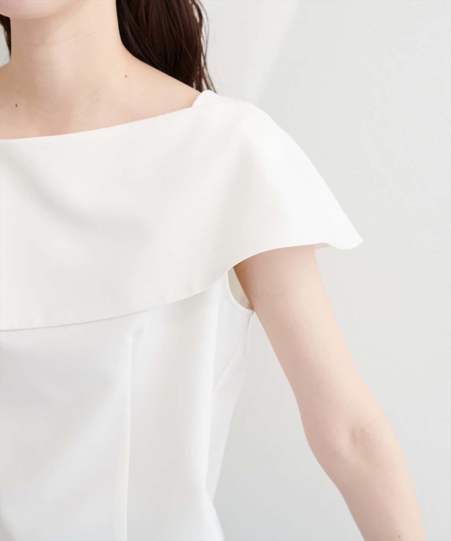 大きなアシメ衿が肩を覆ってくれて肩周りが気にならない優秀アイテムです。