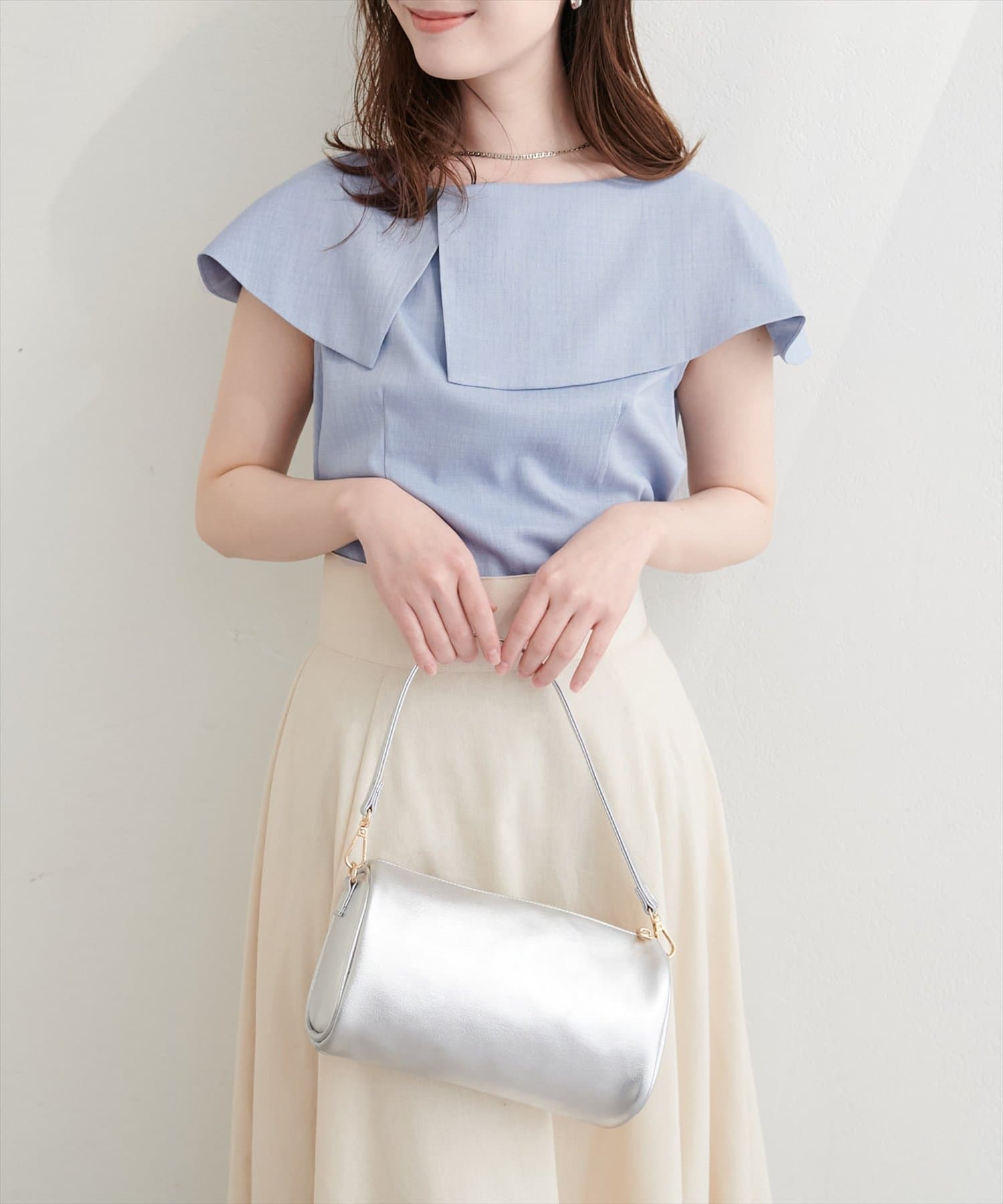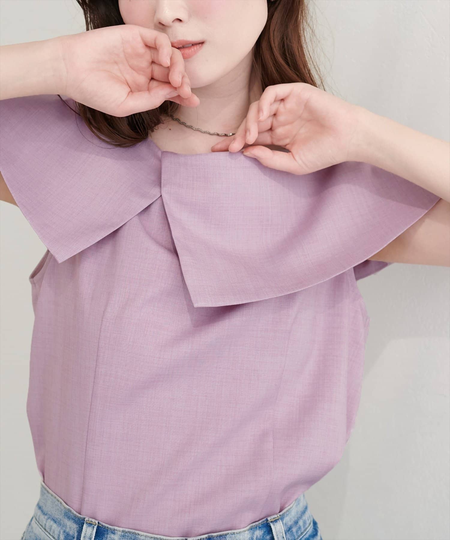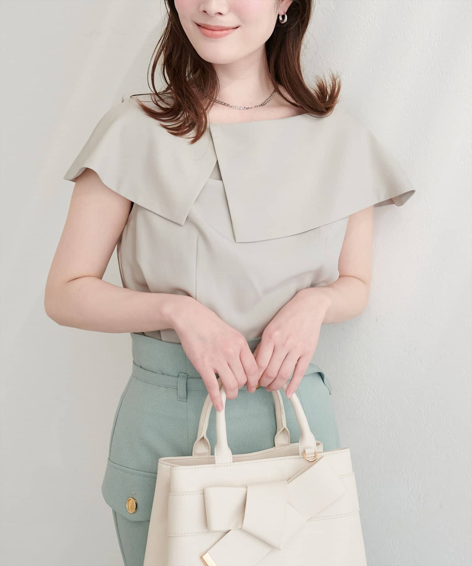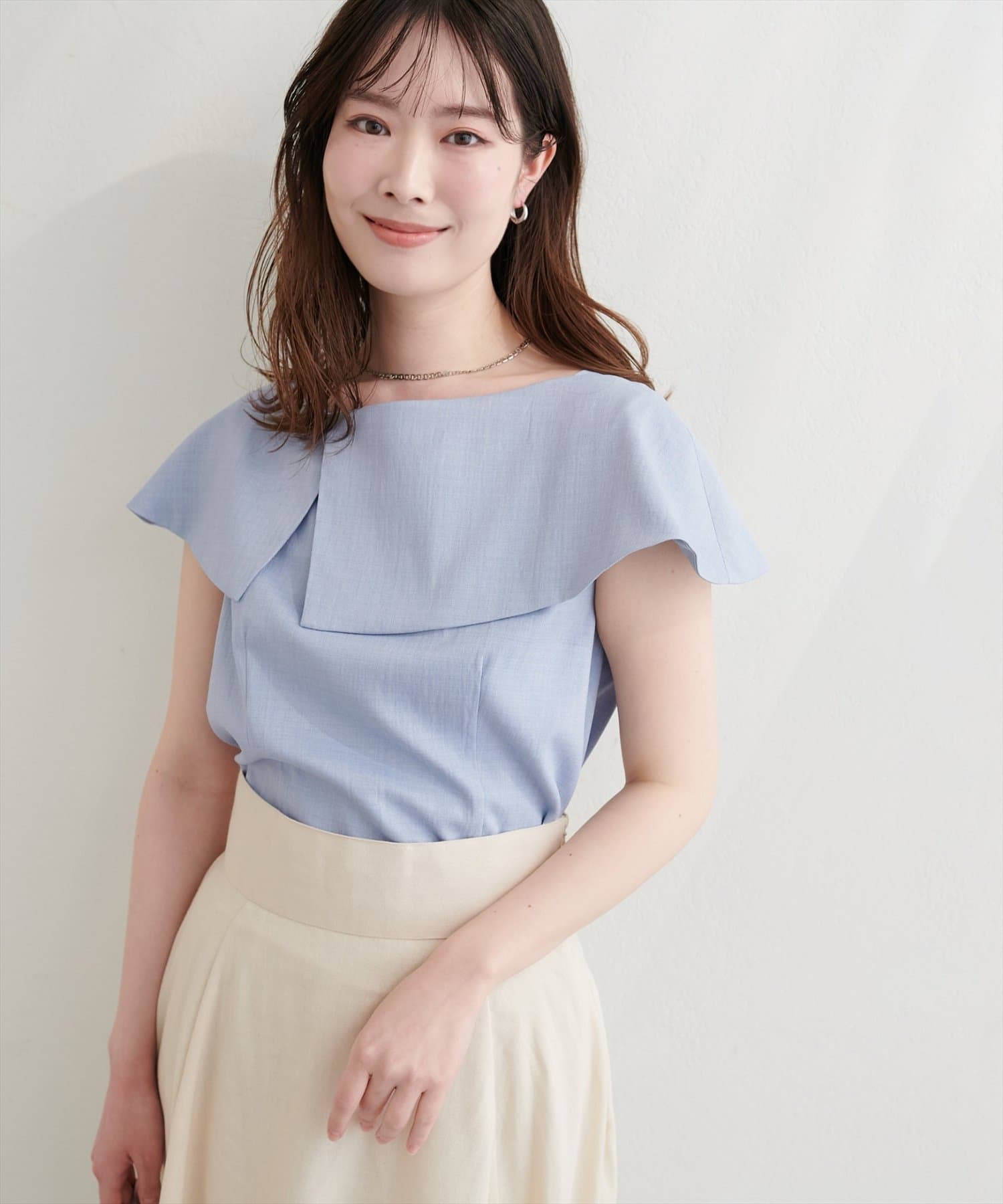 大きなアシメ衿が肩を覆ってくれて肩周りが気にならない優秀アイテムです。
