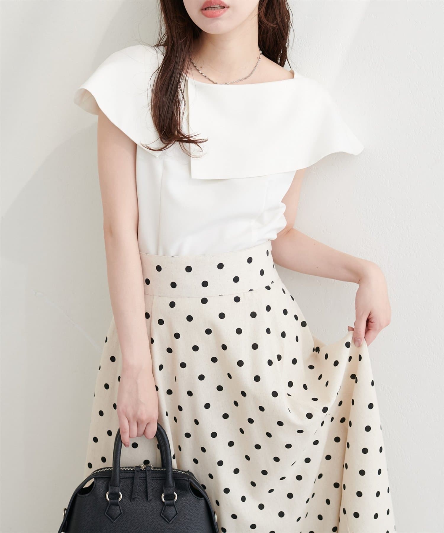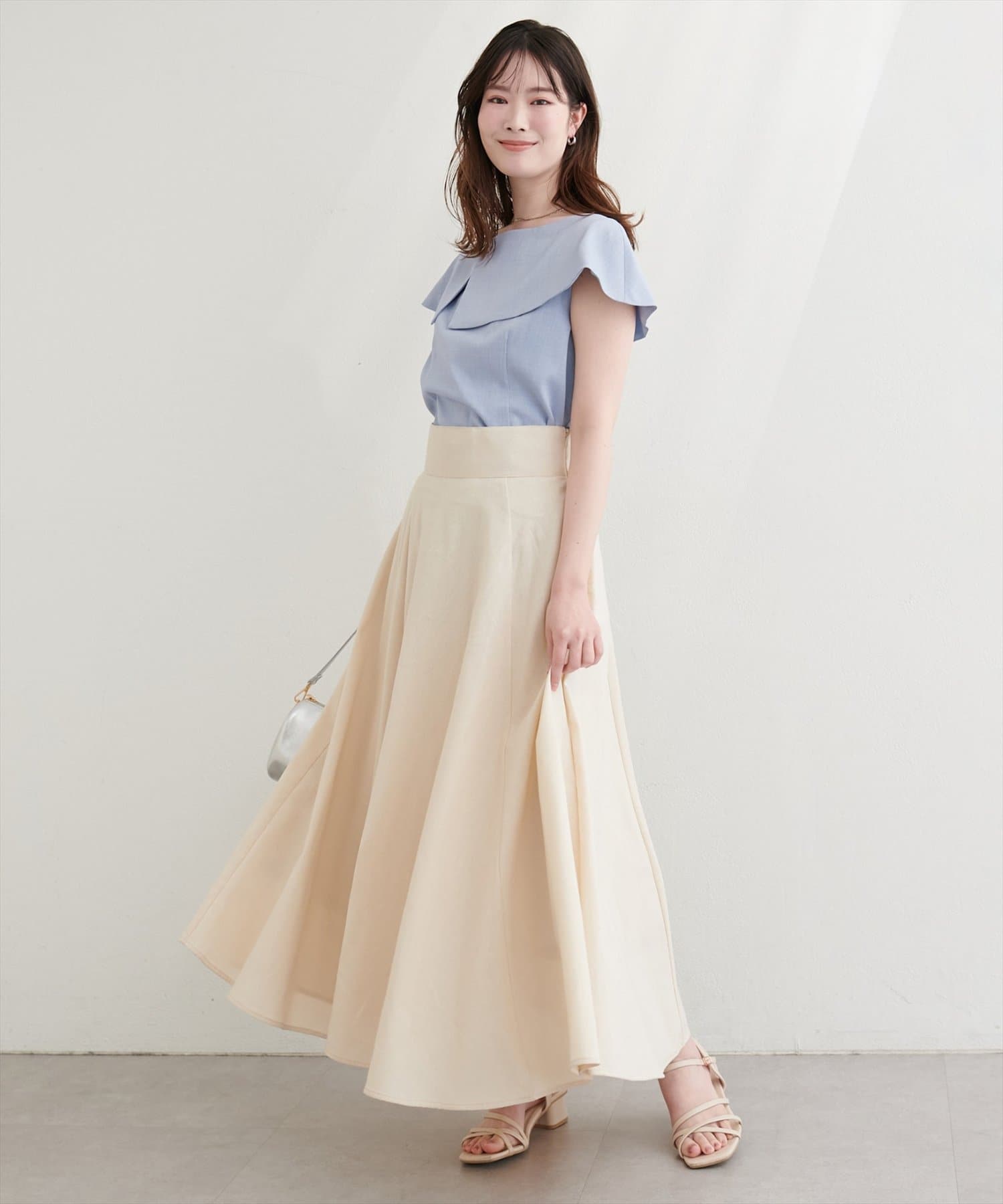 シンプルになりがちな夏のTシャツコーデをフェミニンにアップデートしてくれる1着です。