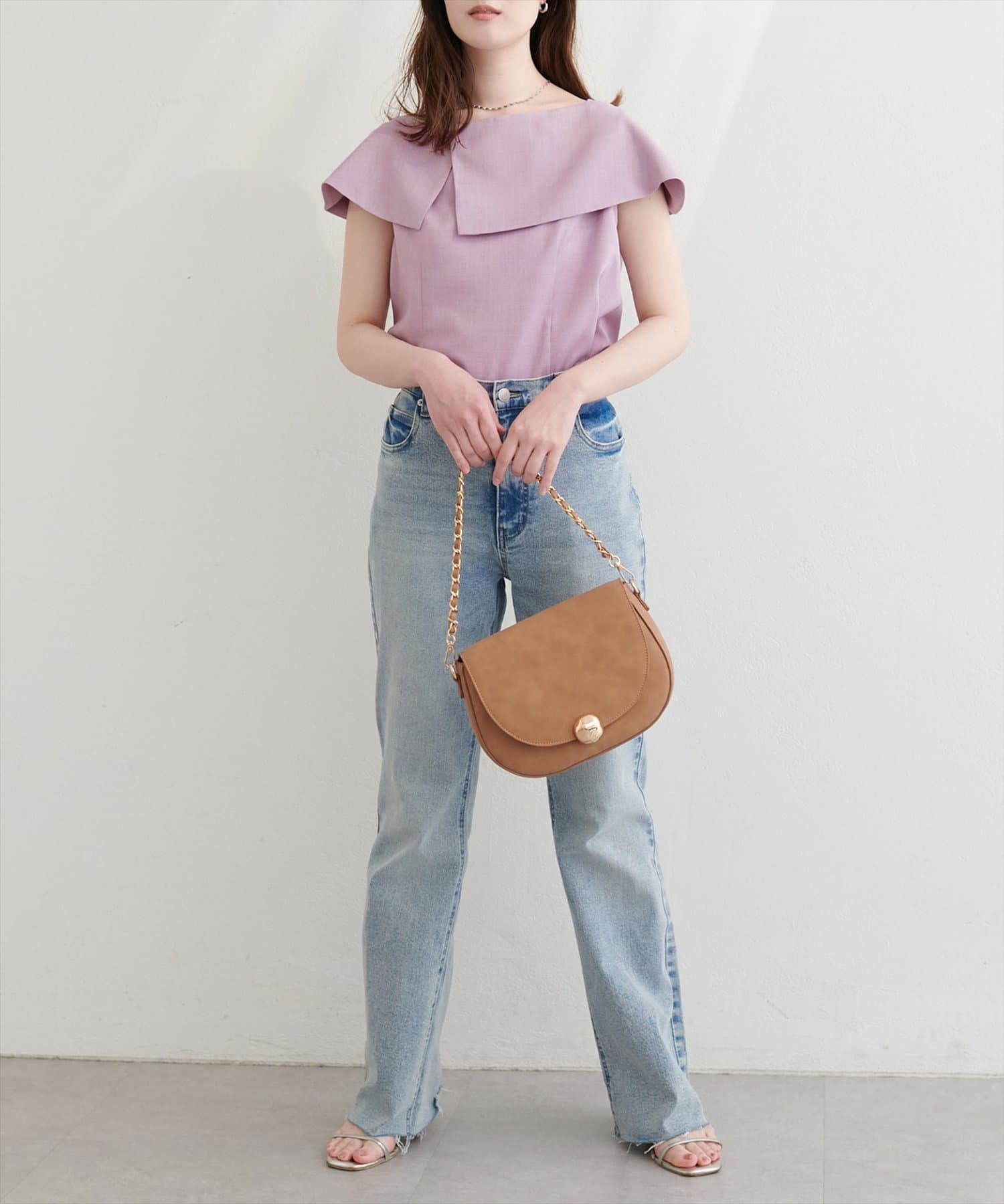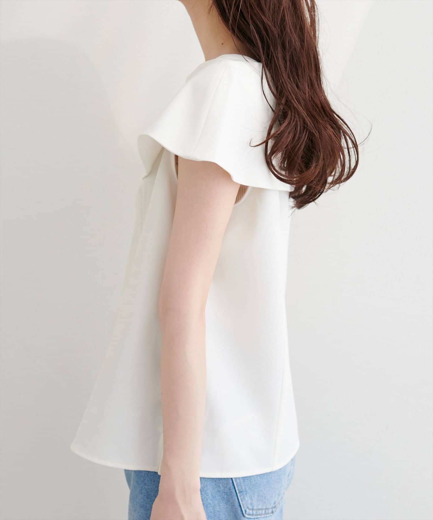 オフショルが苦手な人でも着やすいオフショル風ブラウス。