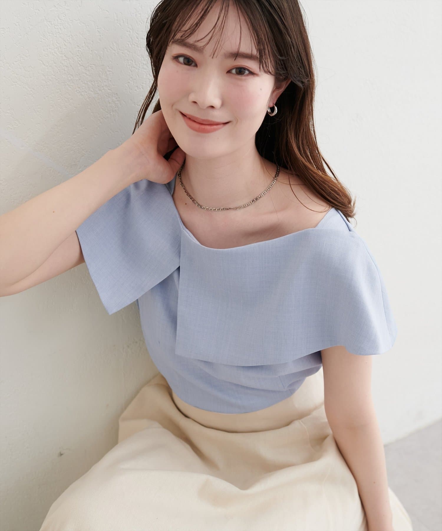 • natural couture(ナチュラルクチュール) アシメカラーオフショルブラウス