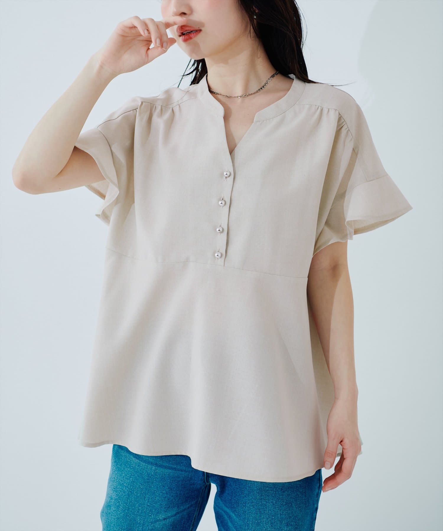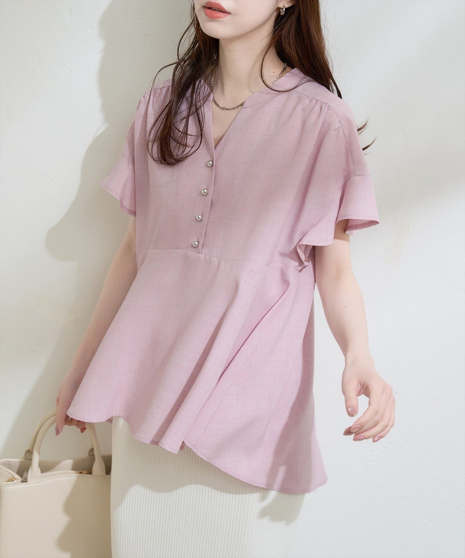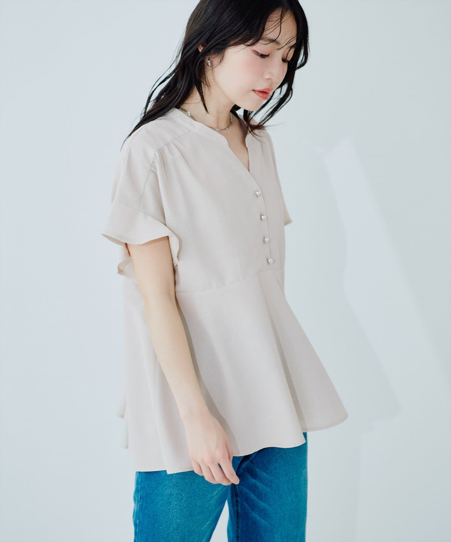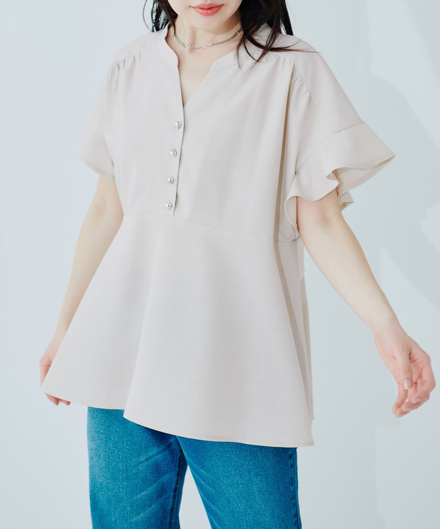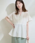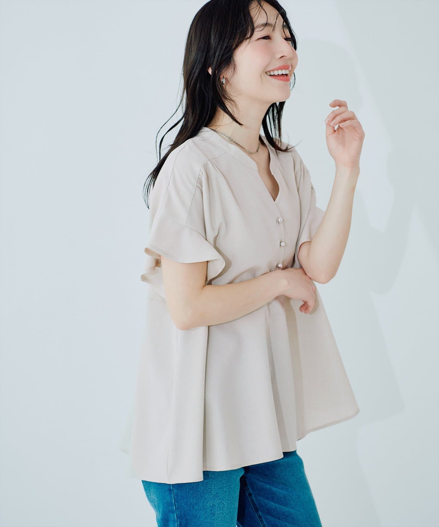 • natural couture(ナチュラルクチュール) 接触冷感UV袖フリルペプラムブラウス