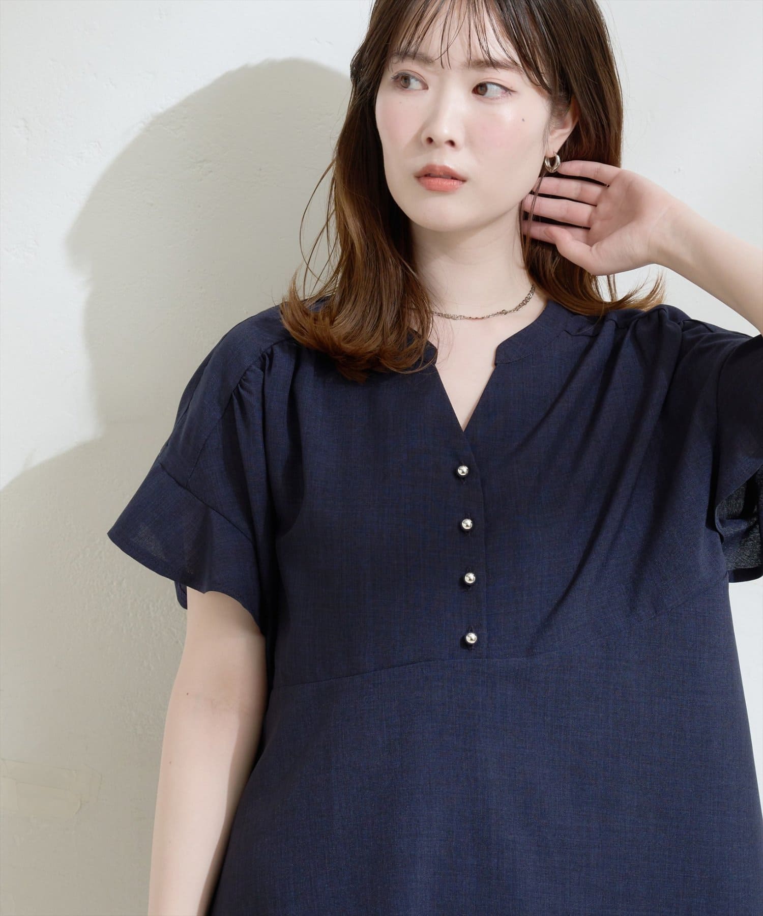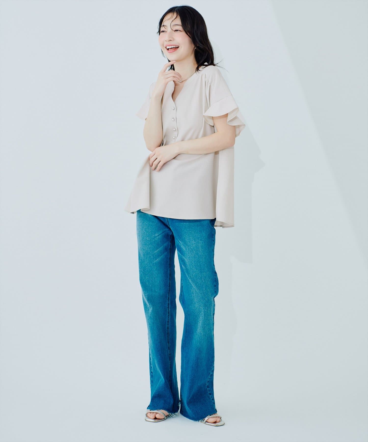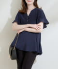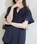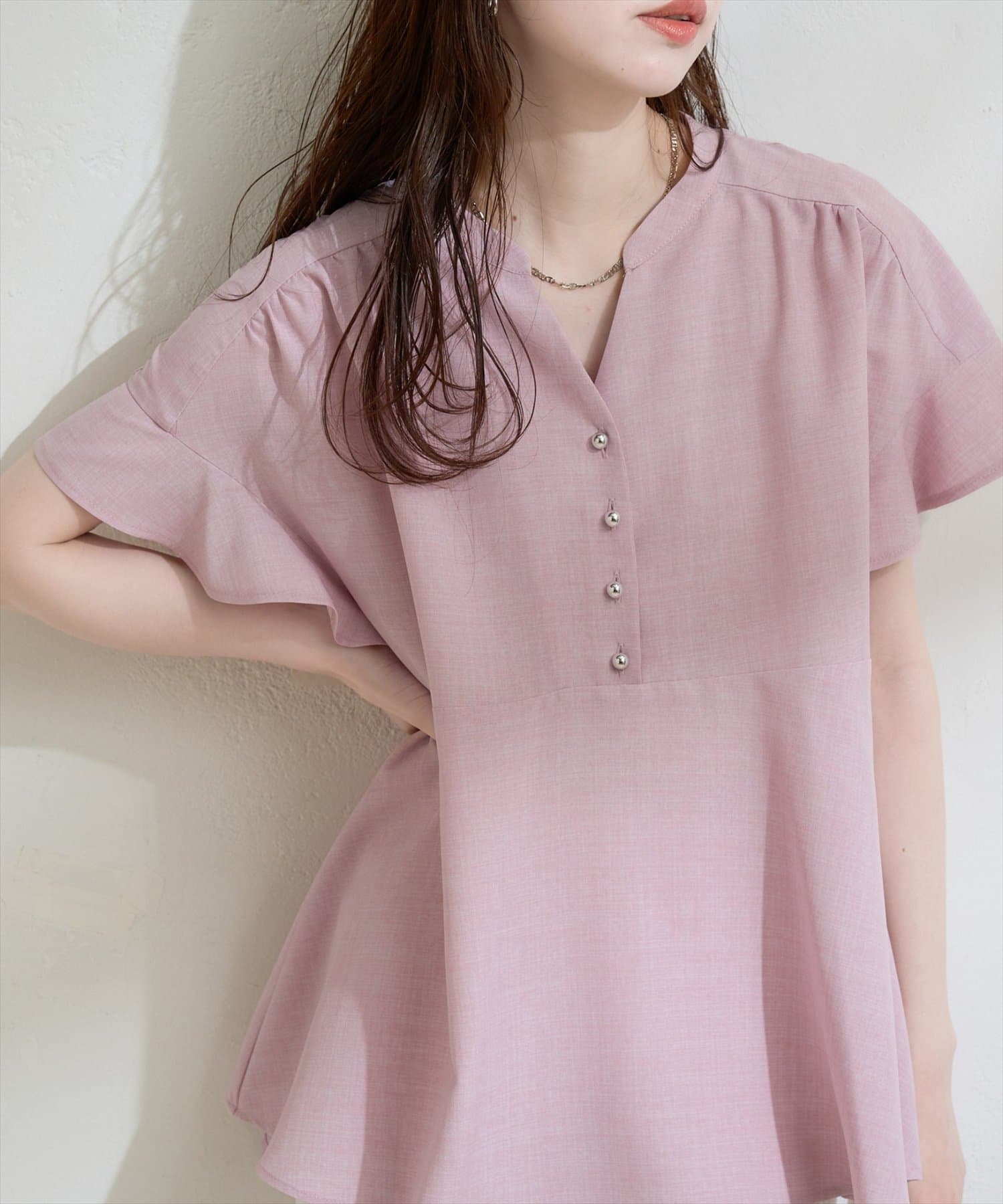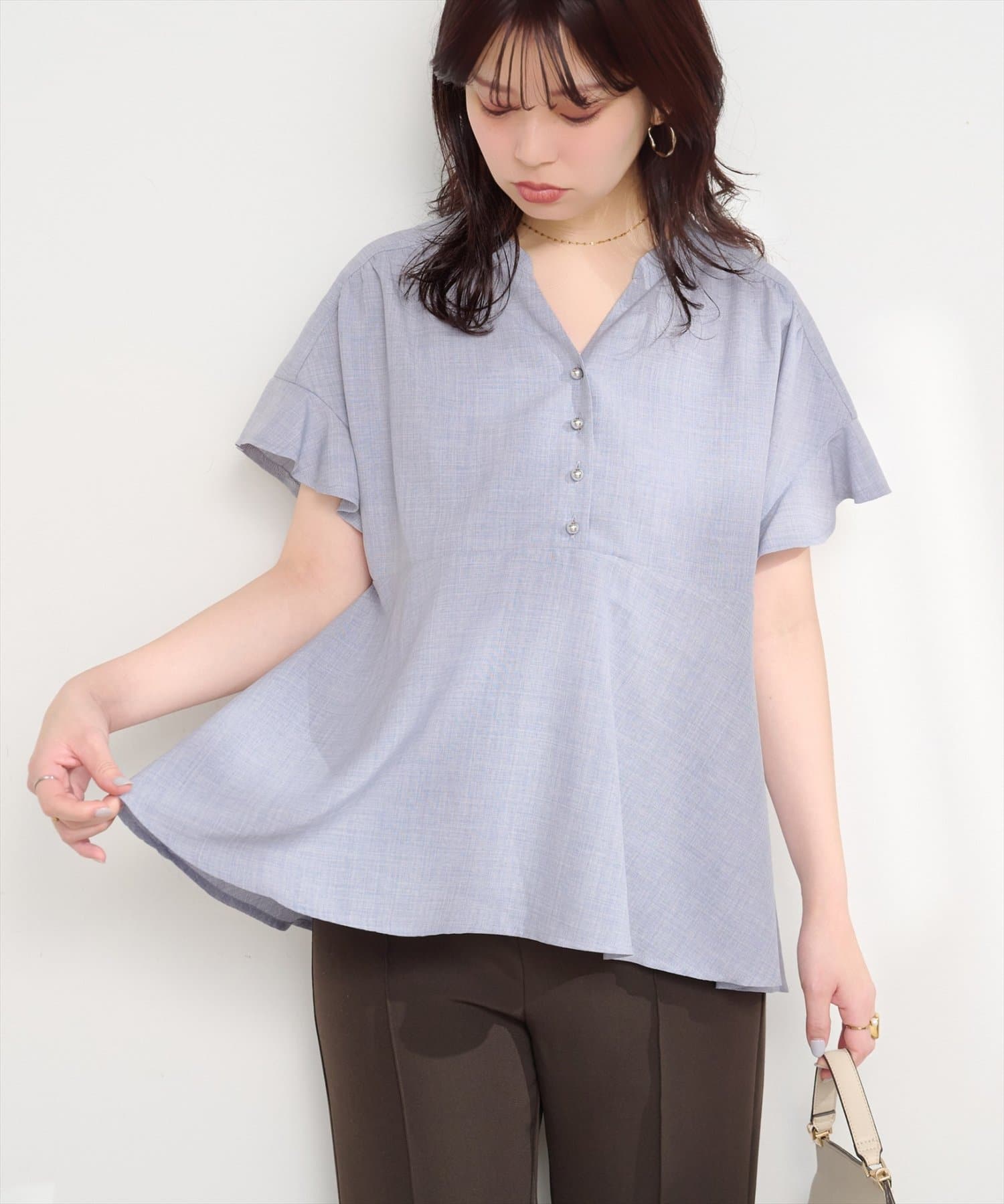 • natural couture(ナチュラルクチュール) 接触冷感UV袖フリルペプラムブラウス