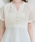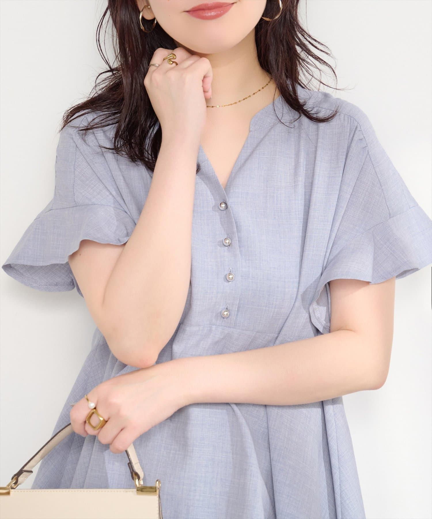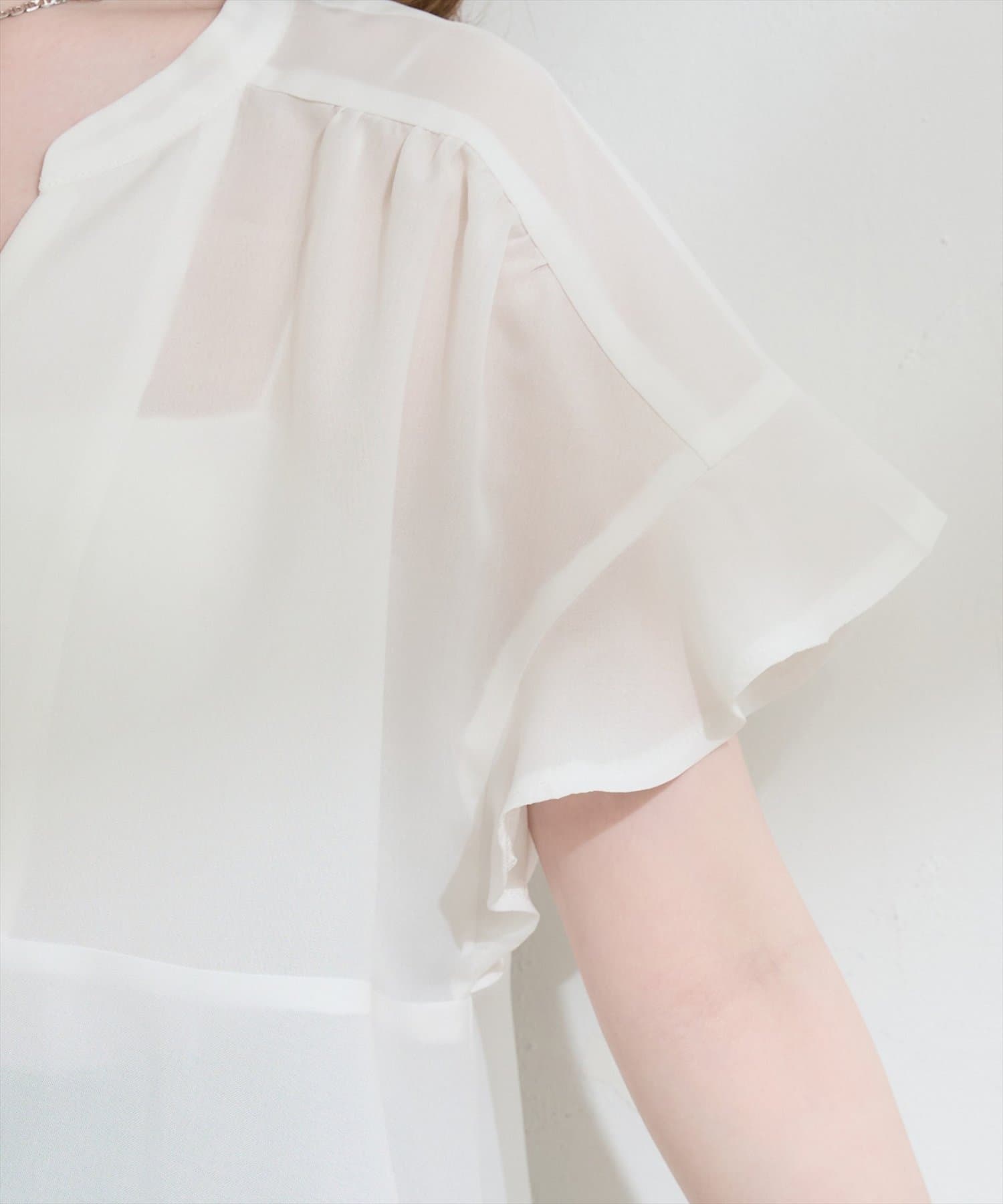 袖にあしらわれた繊細なフリルは、上品な甘さをプラスし、フェミニンな印象を与えます。