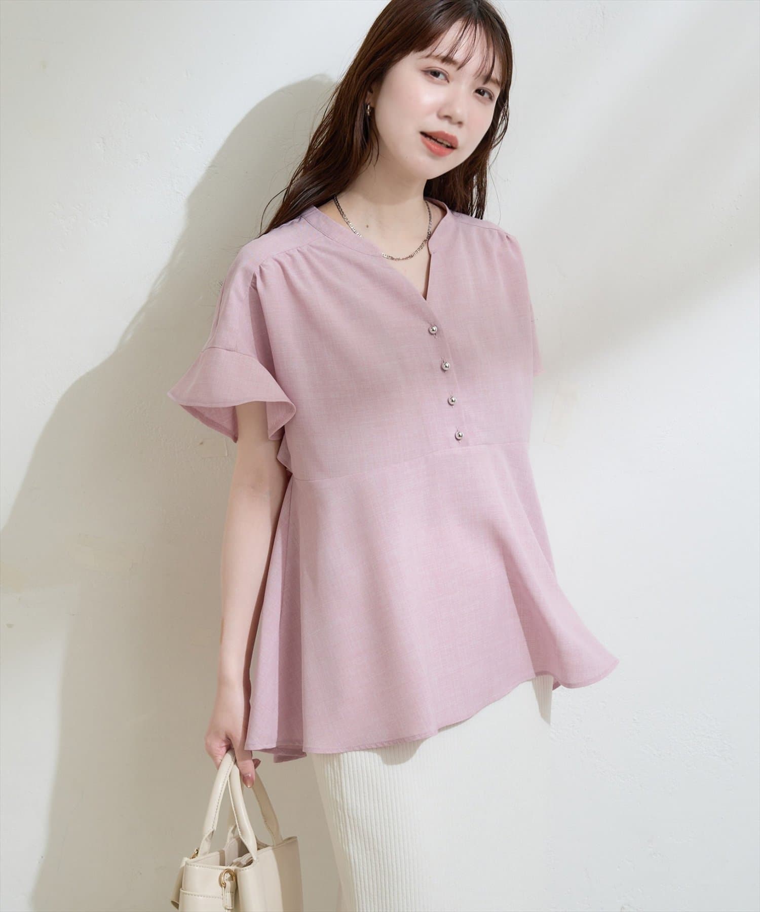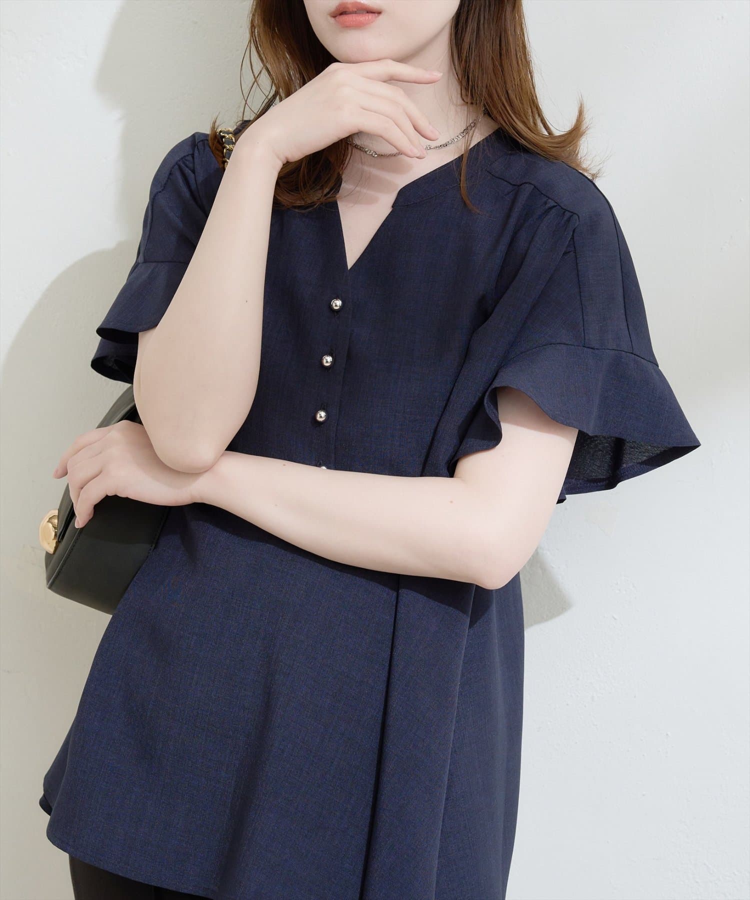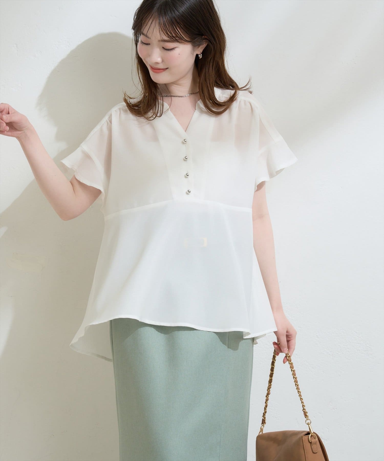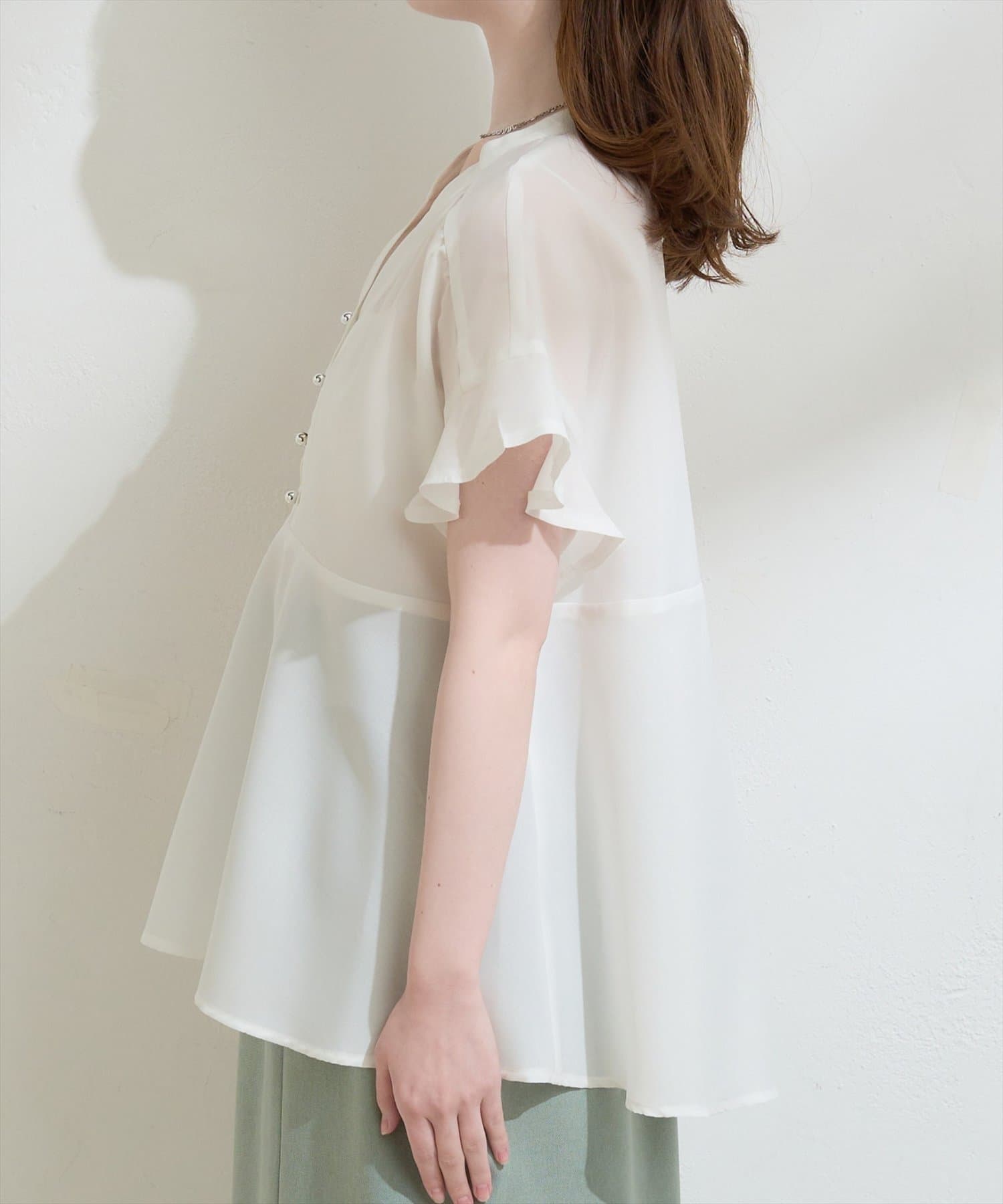 TOP > natural couture > レディース > トップス > シャツ/ブラウス(ボタン) > 接触冷感UV袖フリルペプラムブラウス
