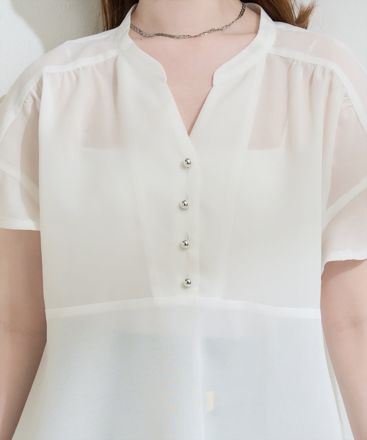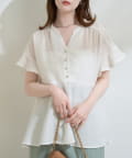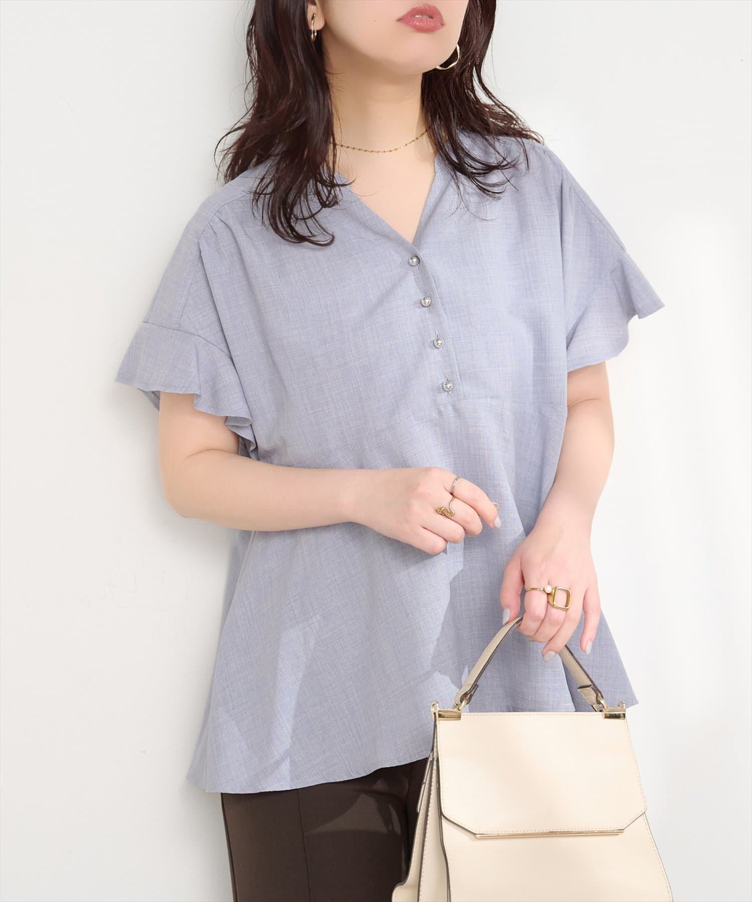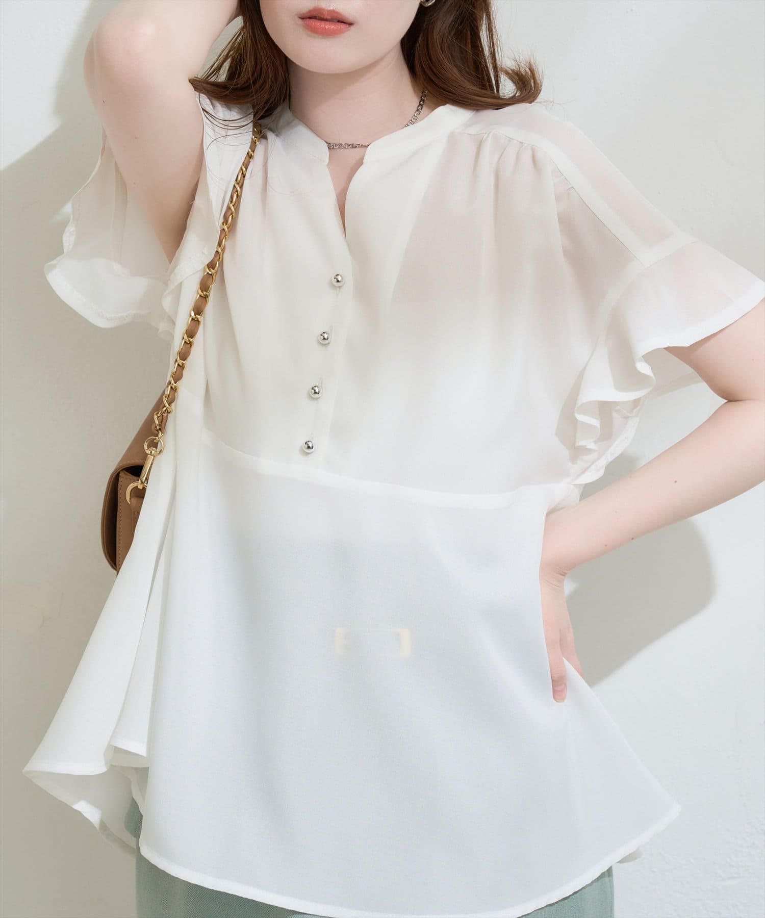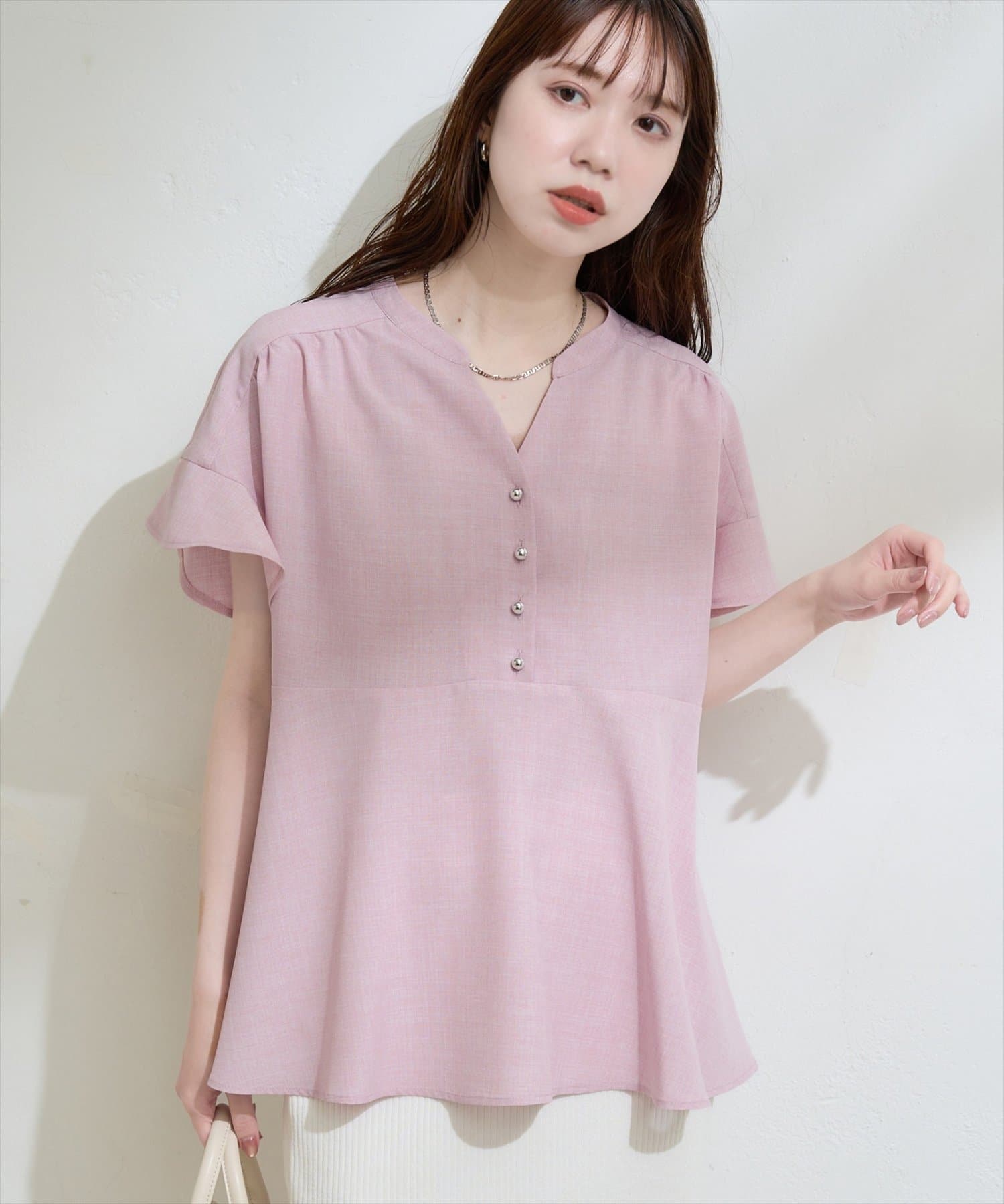 TOP > natural couture > レディース > トップス > シャツ/ブラウス(ボタン) > 接触冷感UV袖フリルペプラムブラウス