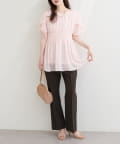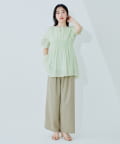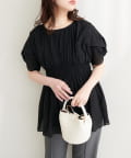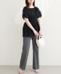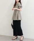 ふんわりとボリュームのあるチュニックなので、ボトムはナロースカートなど落ち感のあるアイテムがおすすめ。