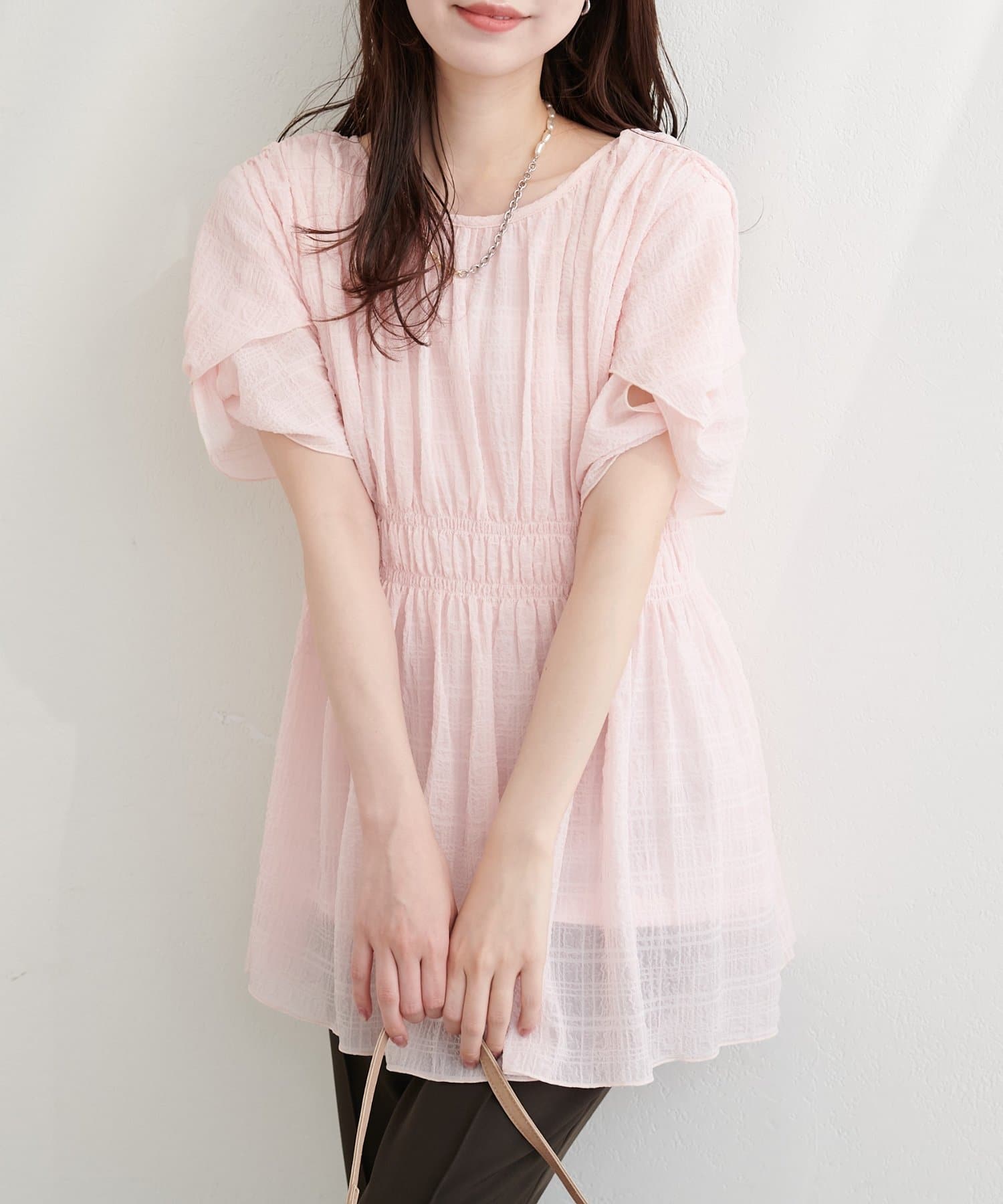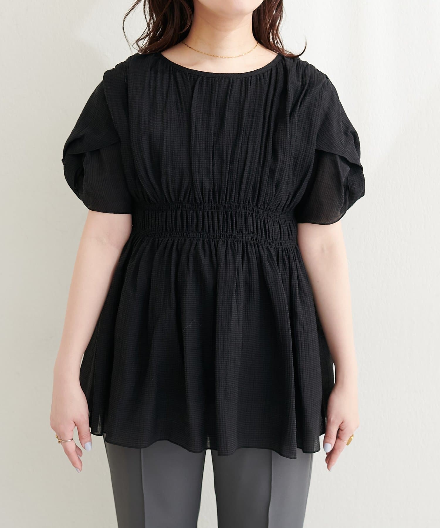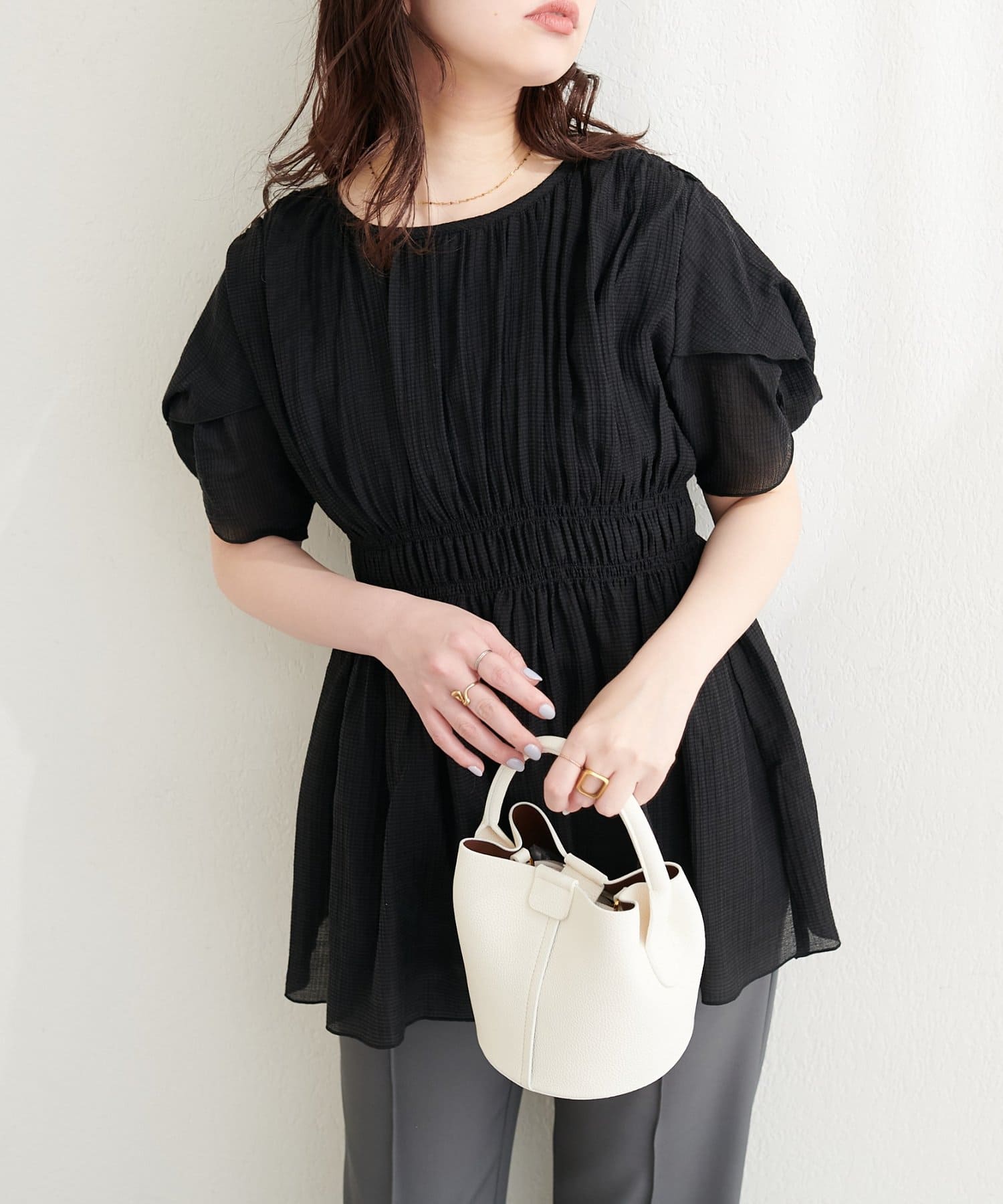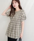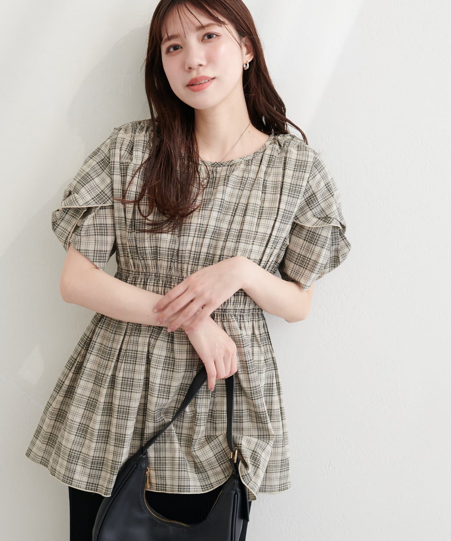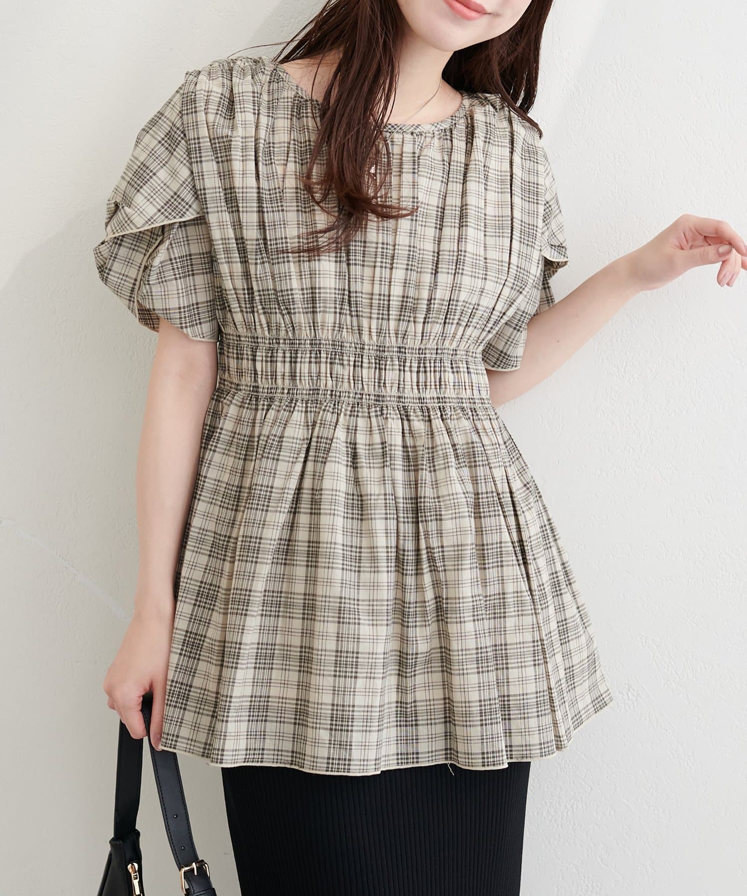 透け感:袖部分あり(オフホワイトは身頃部分も透けあり。チェックは透け感なし。)