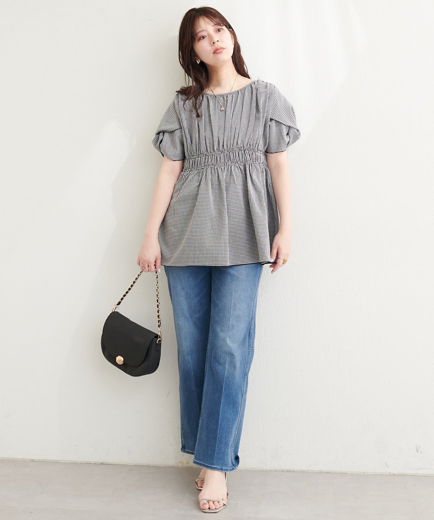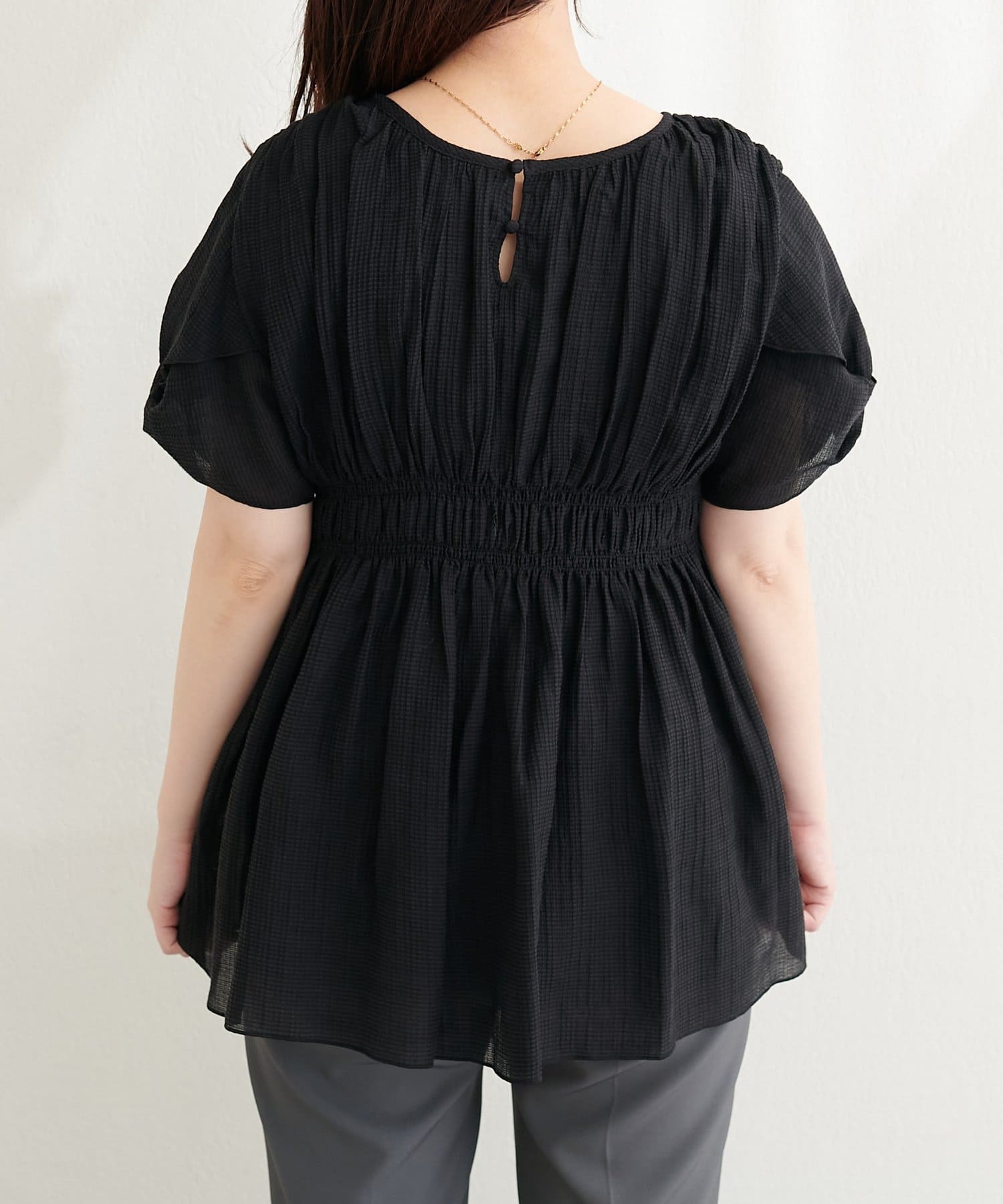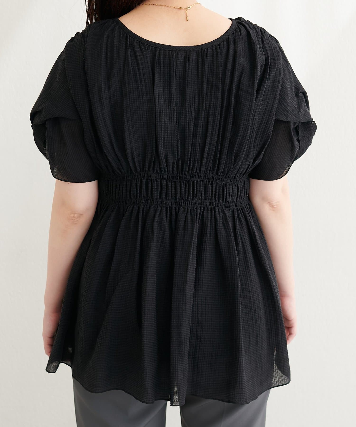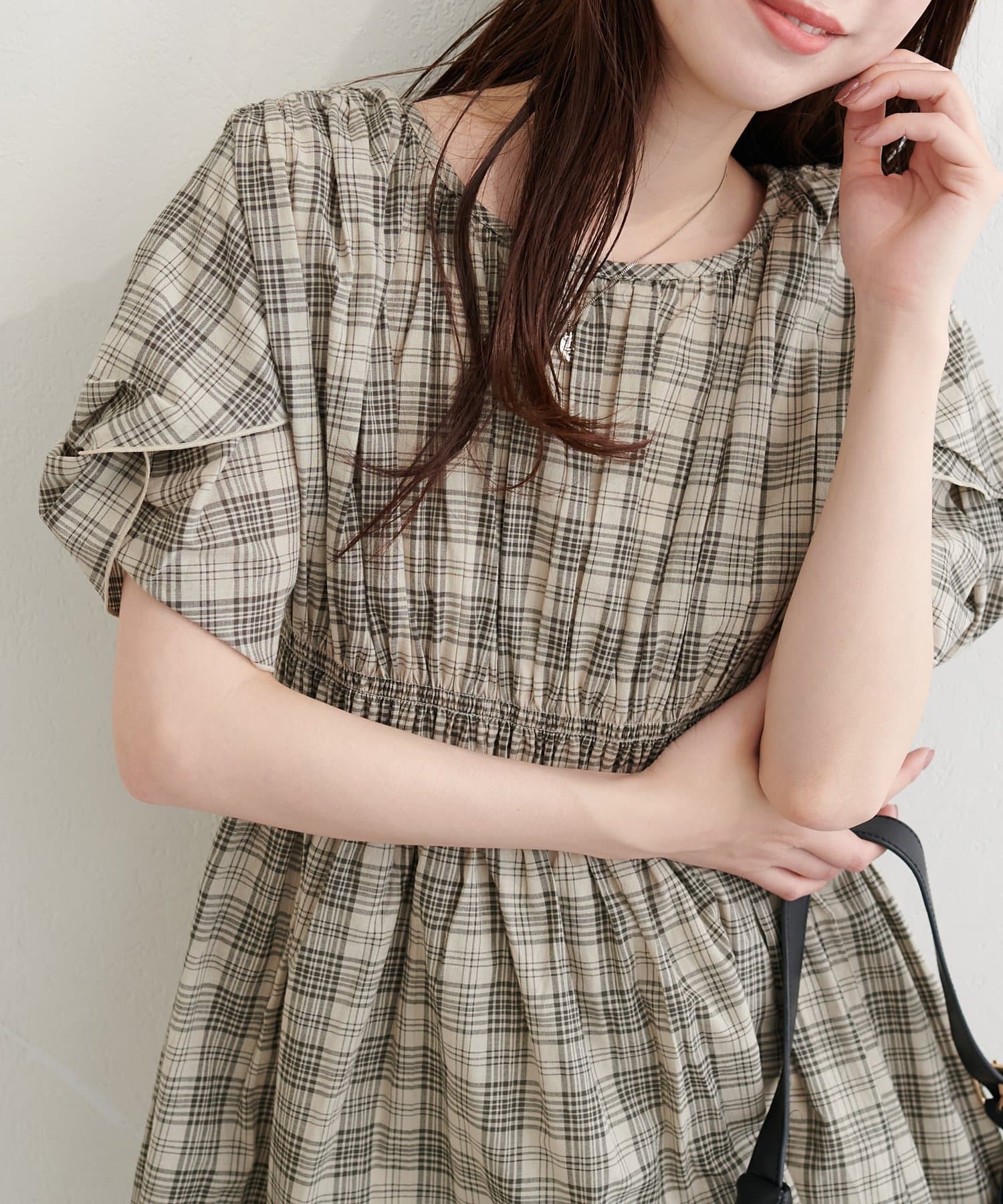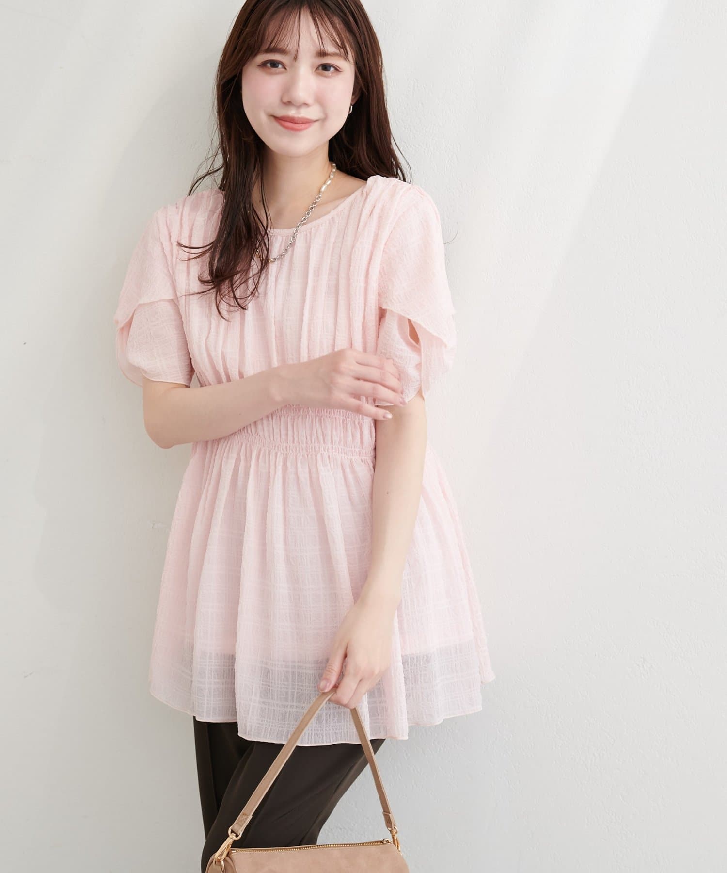 透け感:袖部分あり(オフホワイトは身頃部分も透けあり。チェックは透け感なし。)