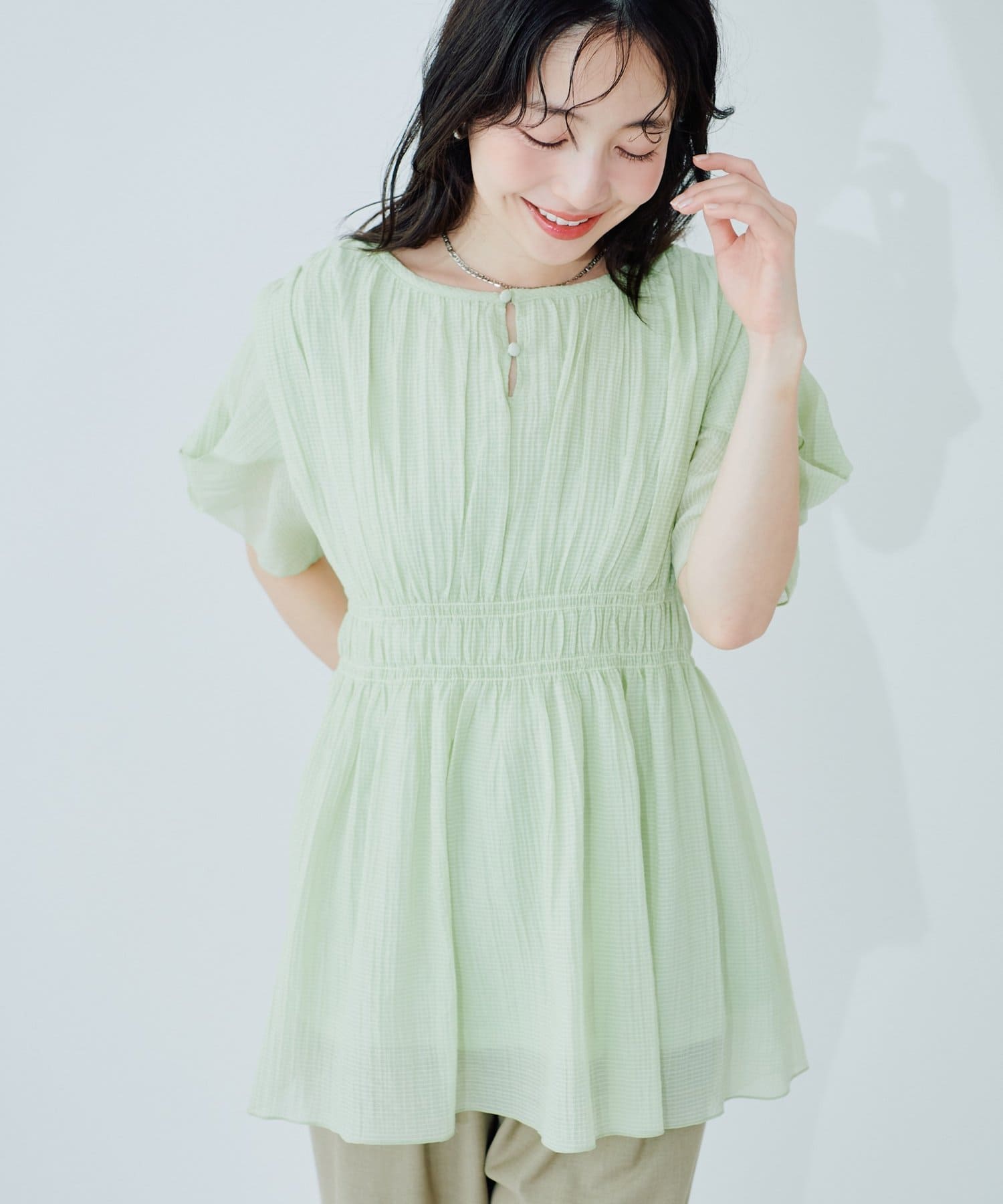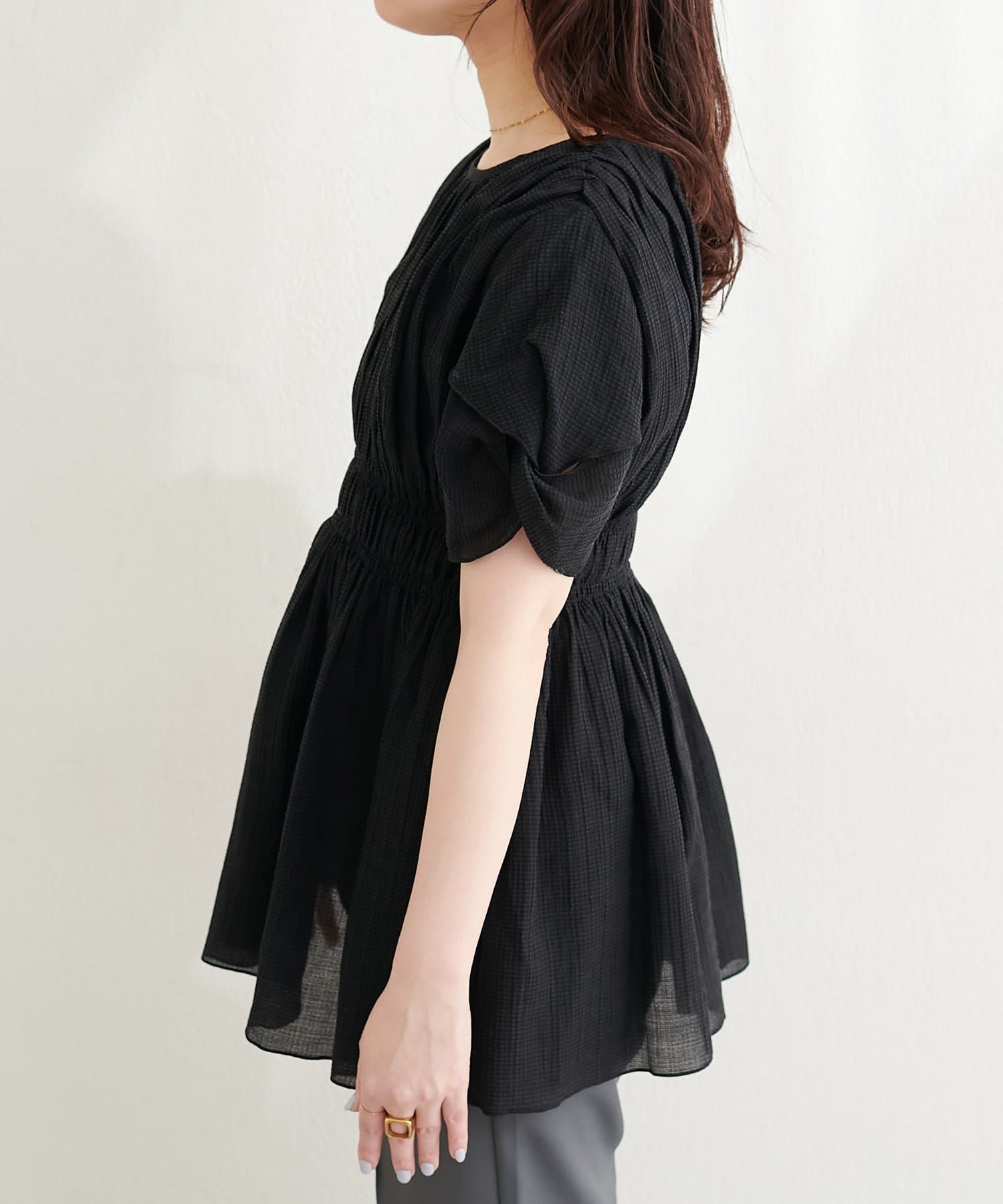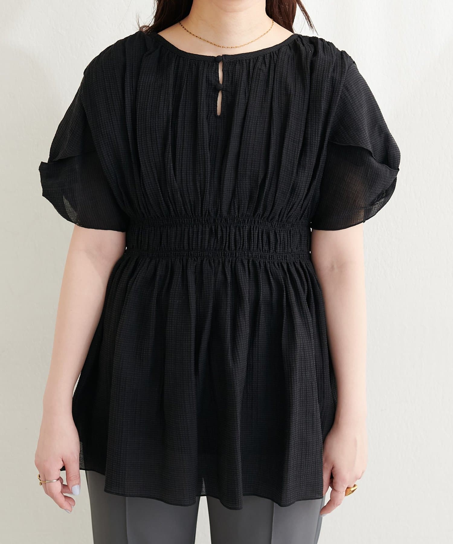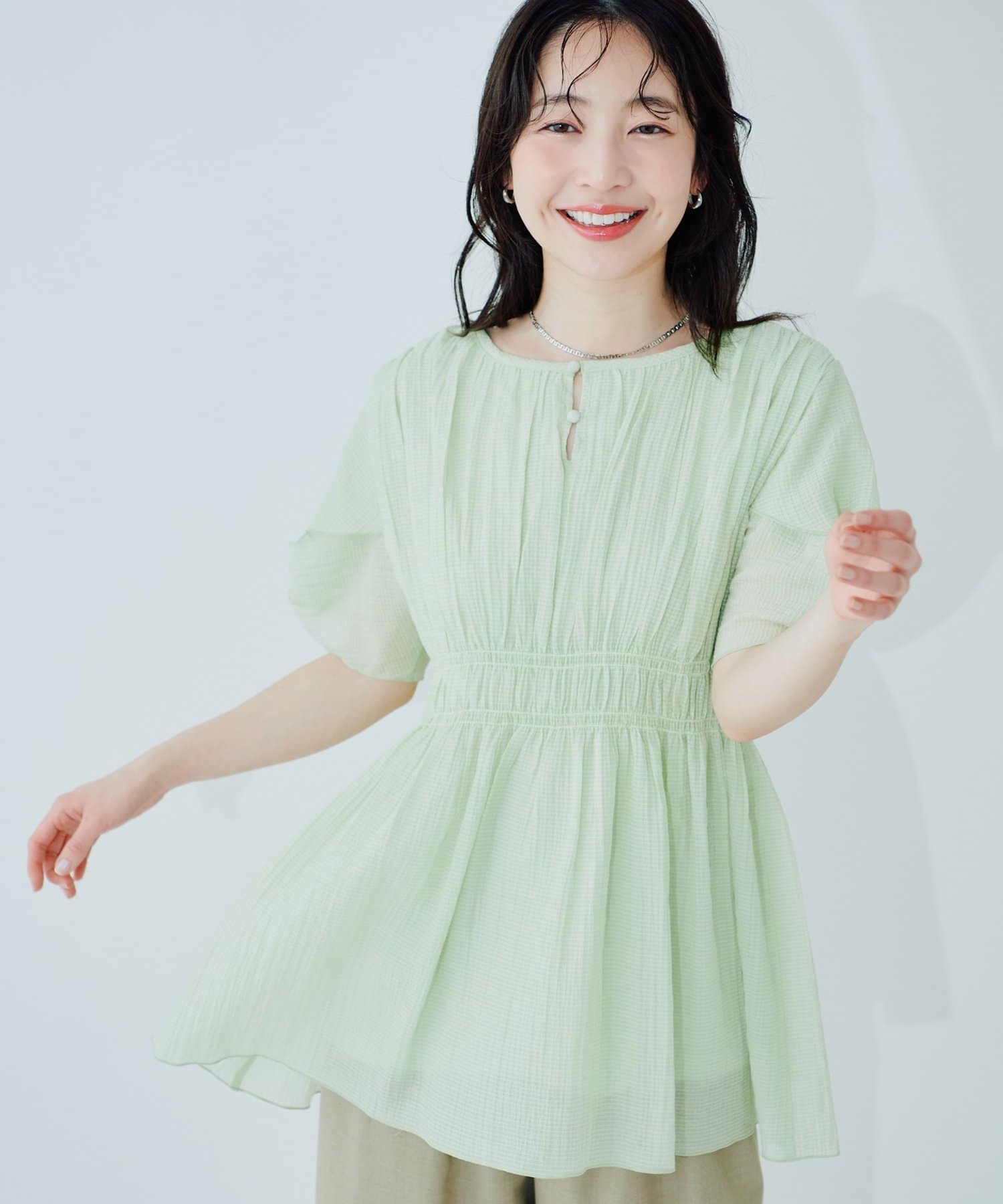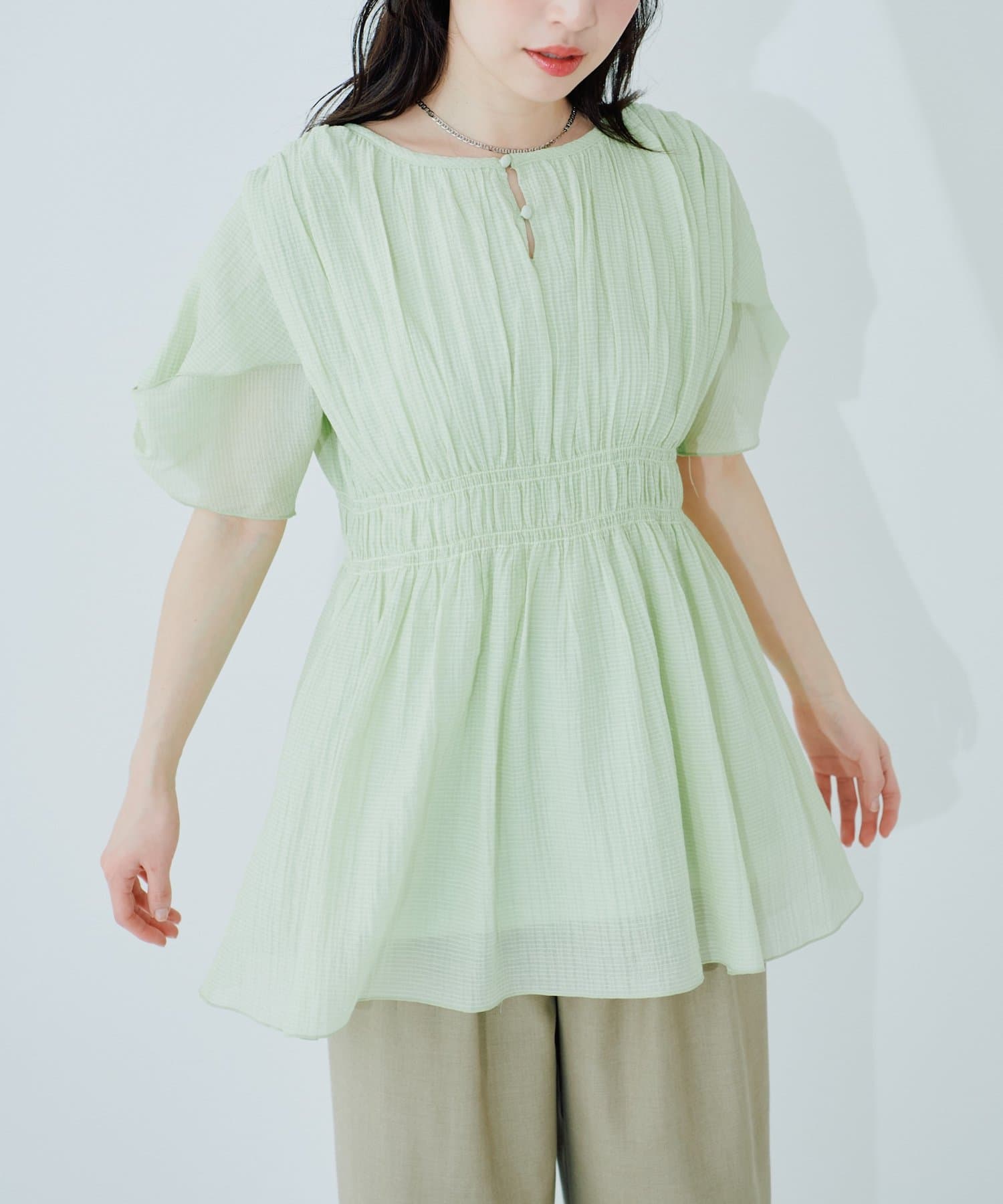 透け感:袖部分あり(オフホワイトは身頃部分も透けあり。チェックは透け感なし。)