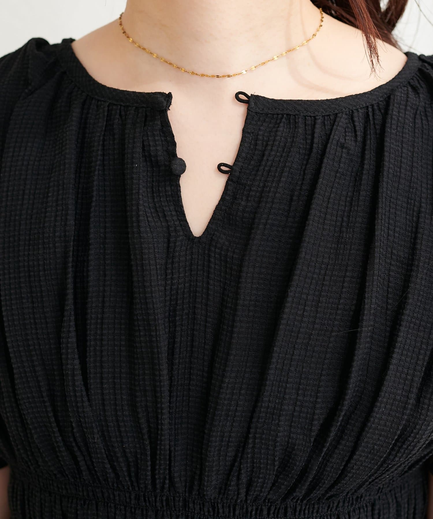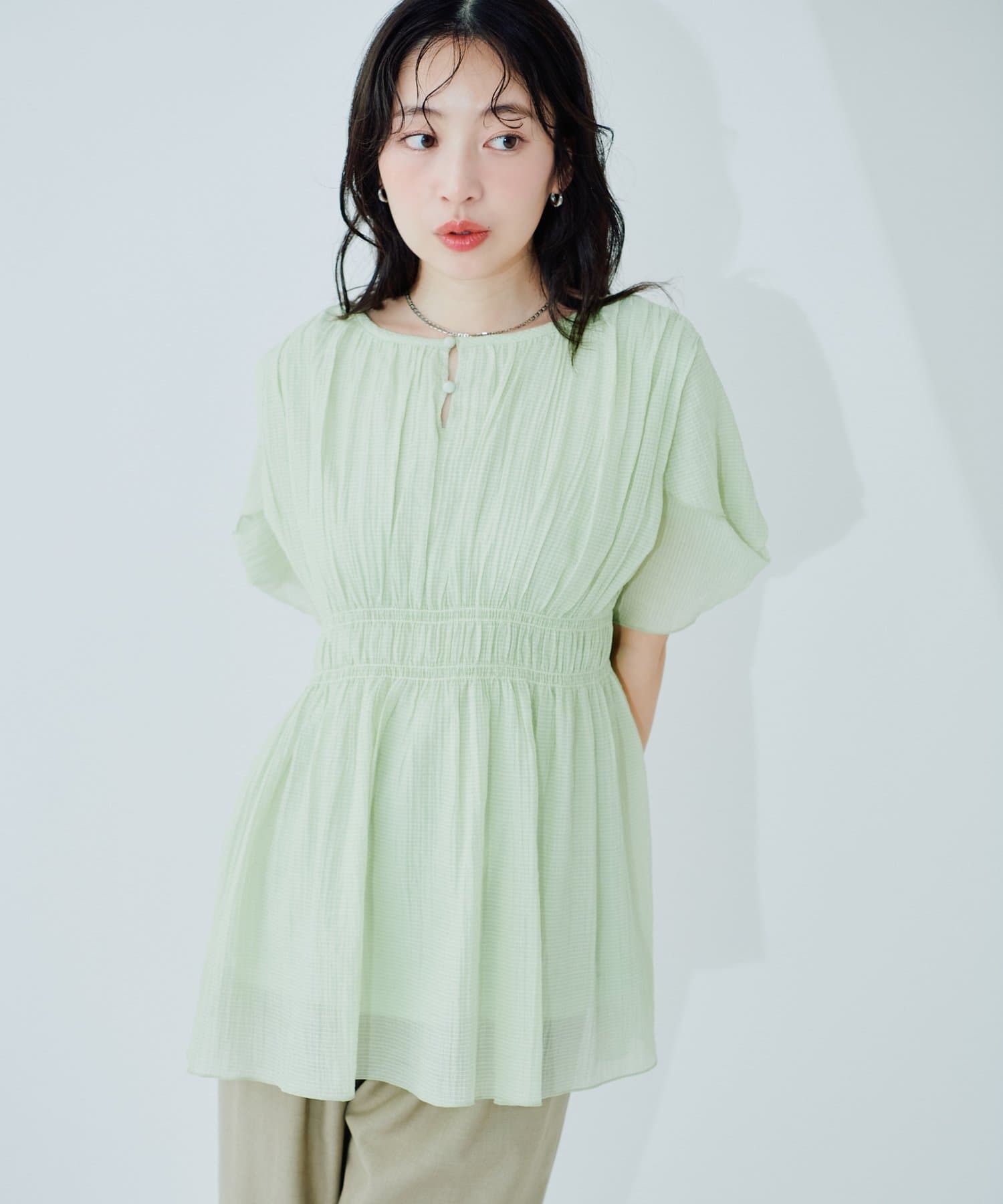 表面感のある生地を使いつつ、甘すぎず大人が着やすいアイテムに仕上げました。