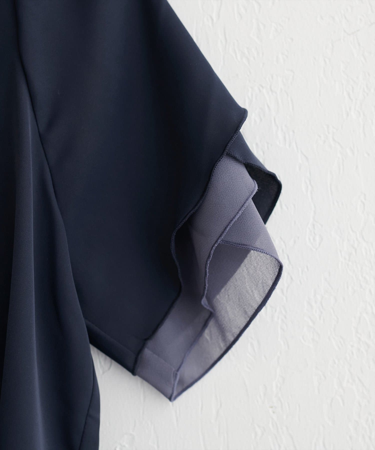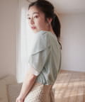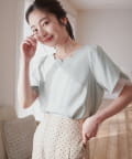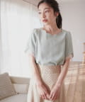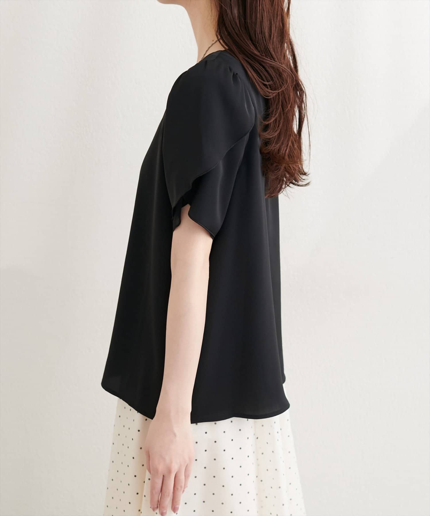 袖にチューリップのようなスリットを施した遊び心のある半袖ブラウス。