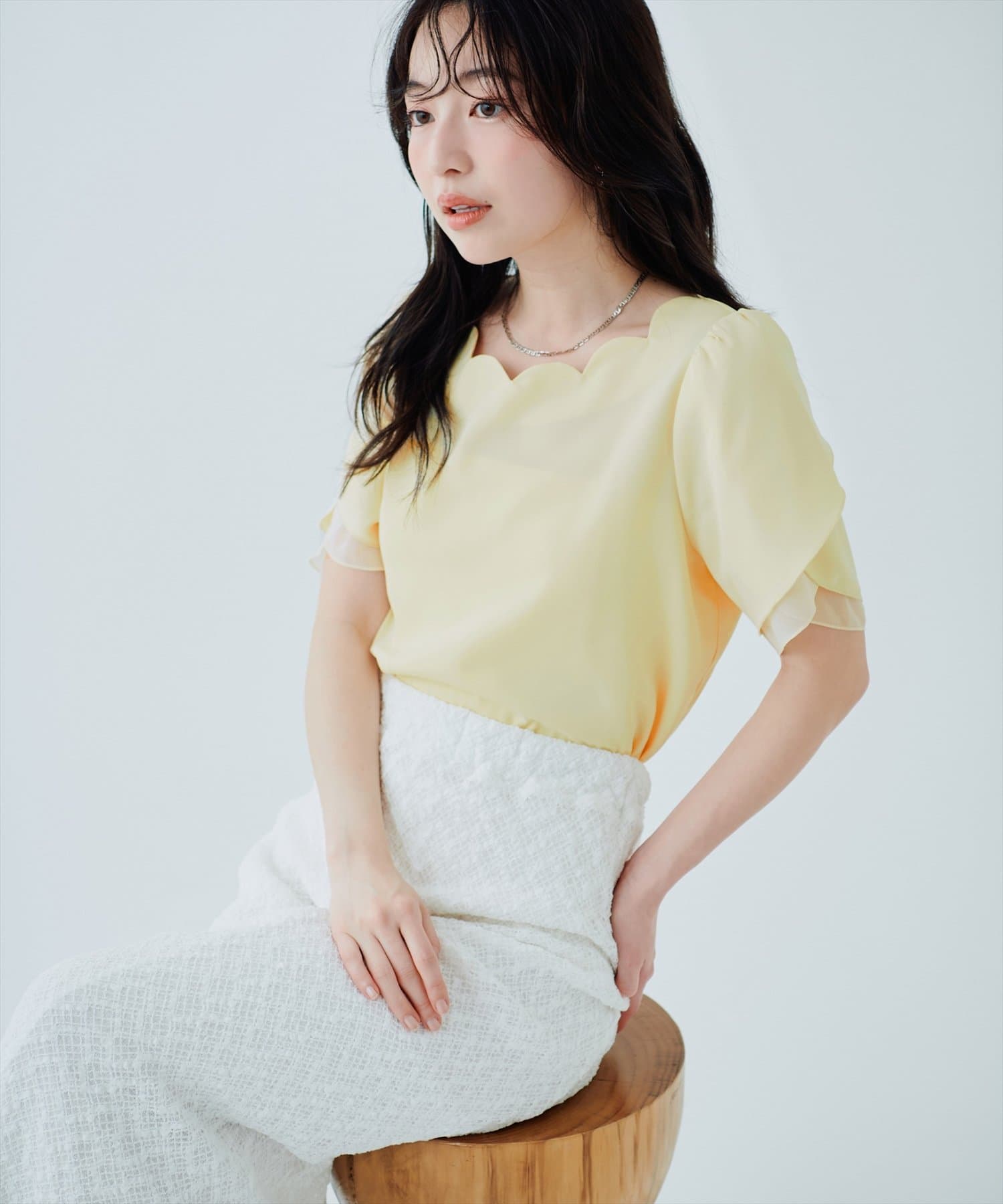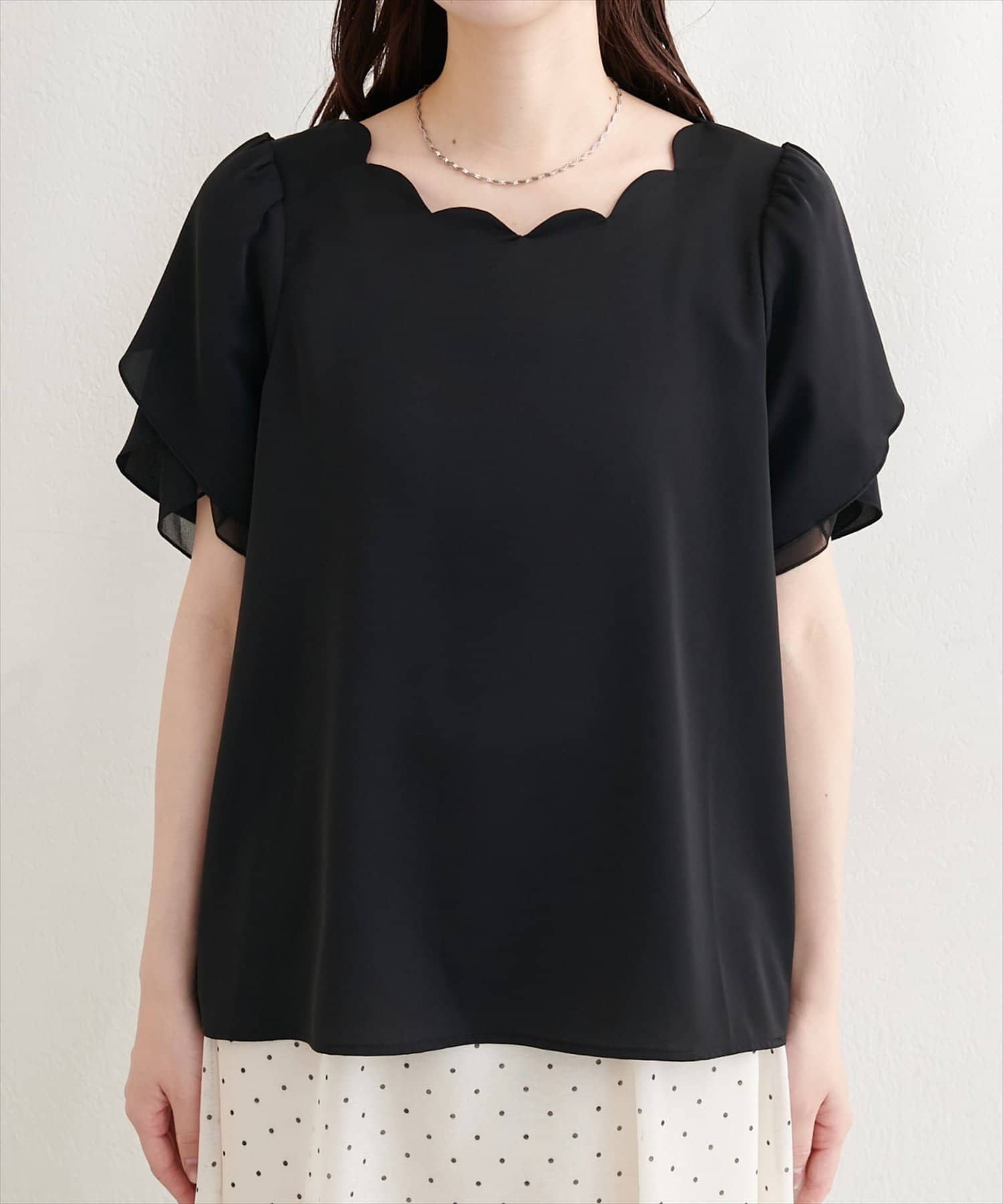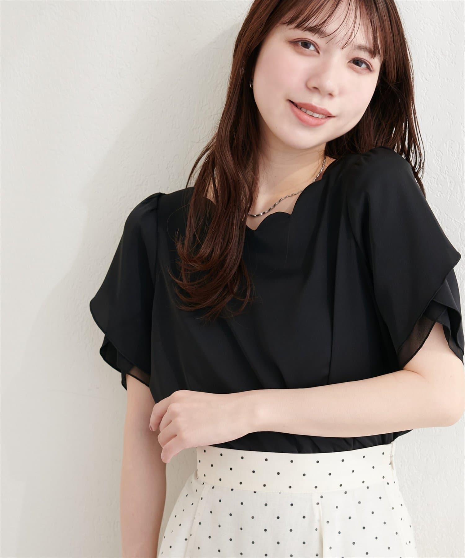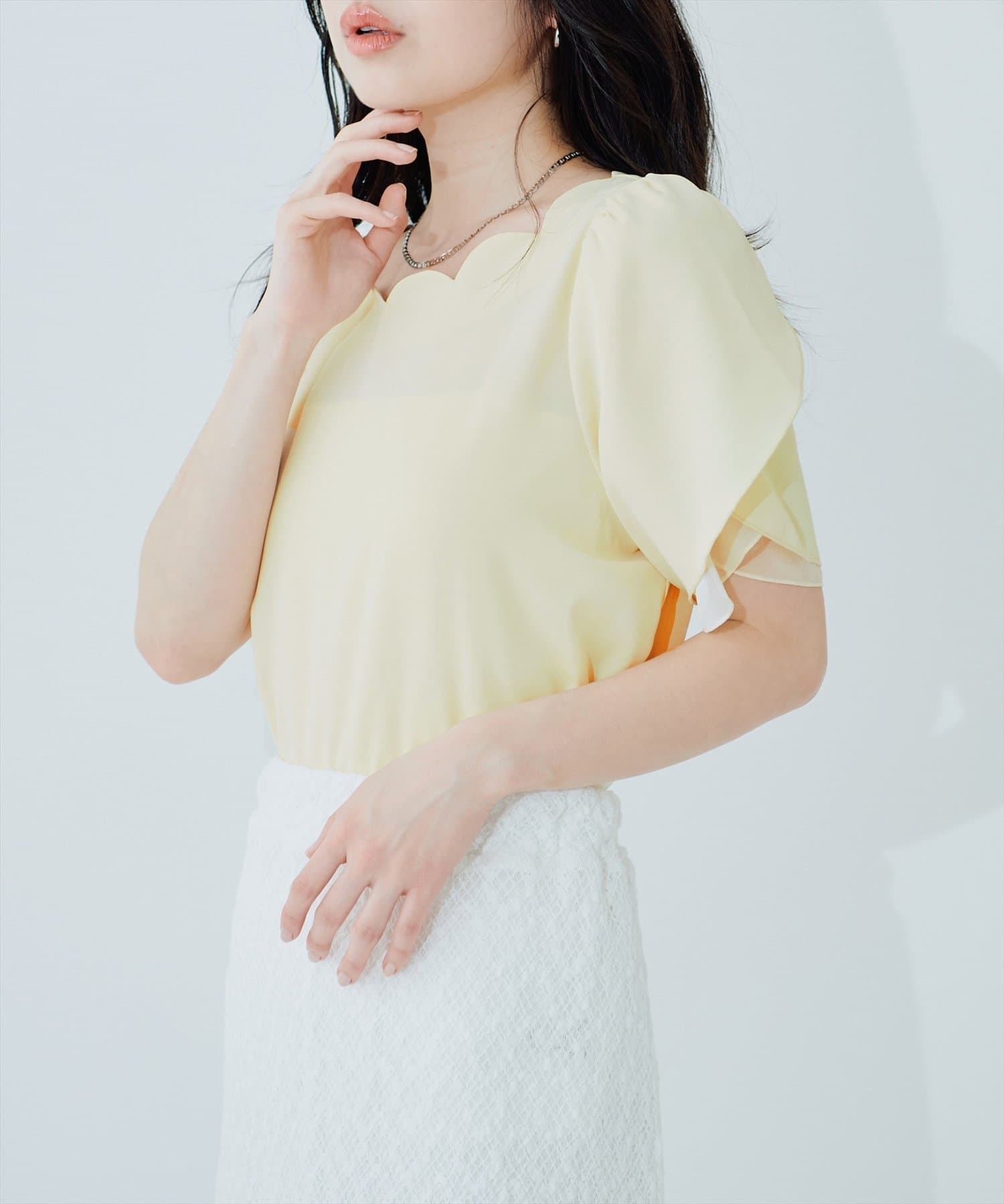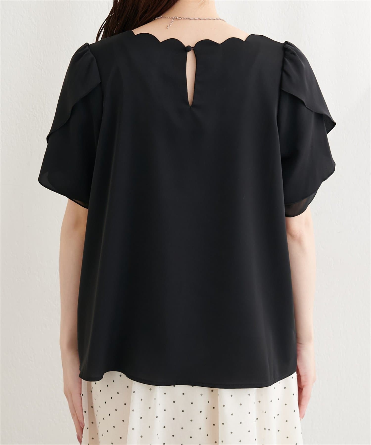 • natural couture(ナチュラルクチュール) チューリップスリーブスカラップネックブラウス