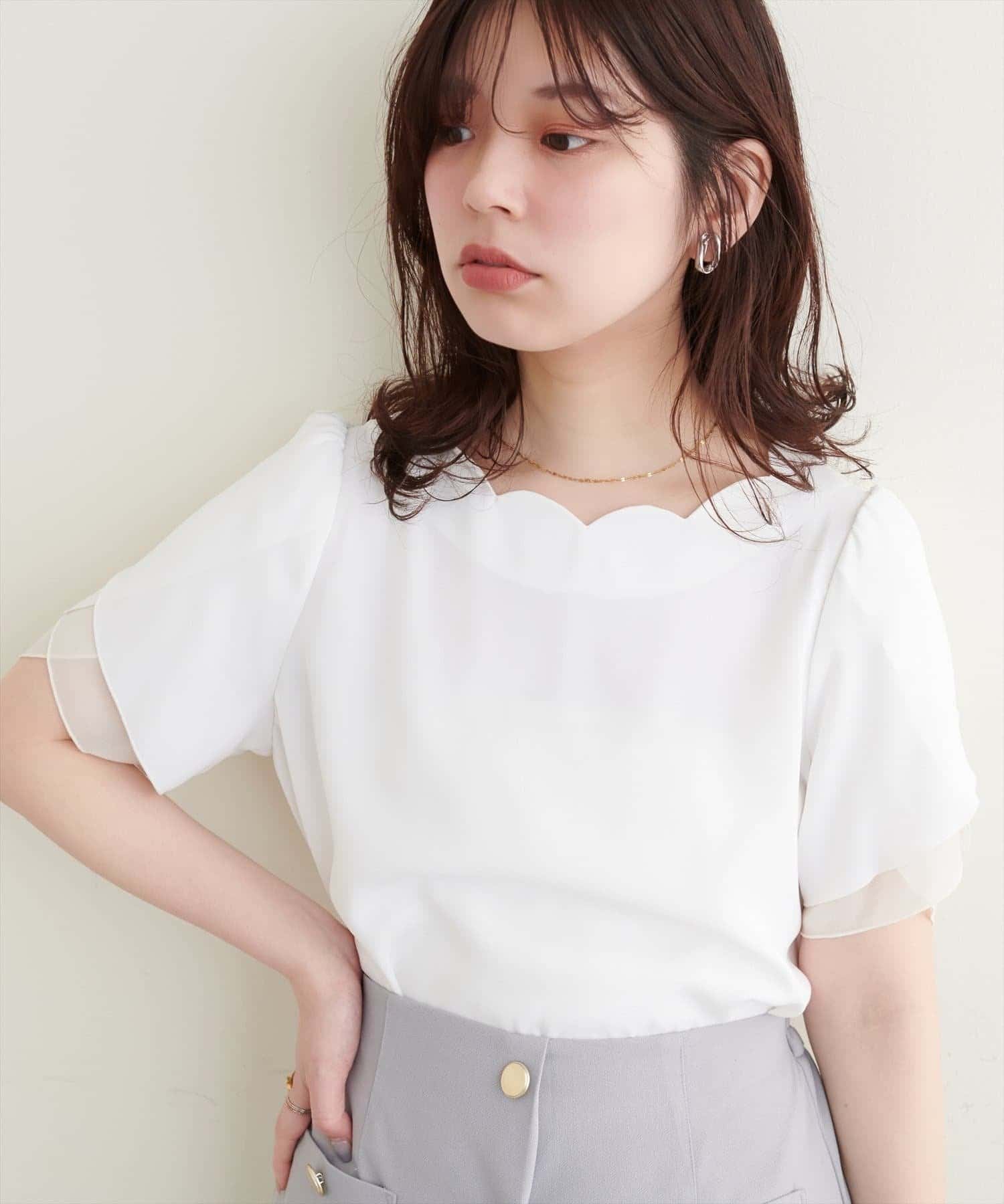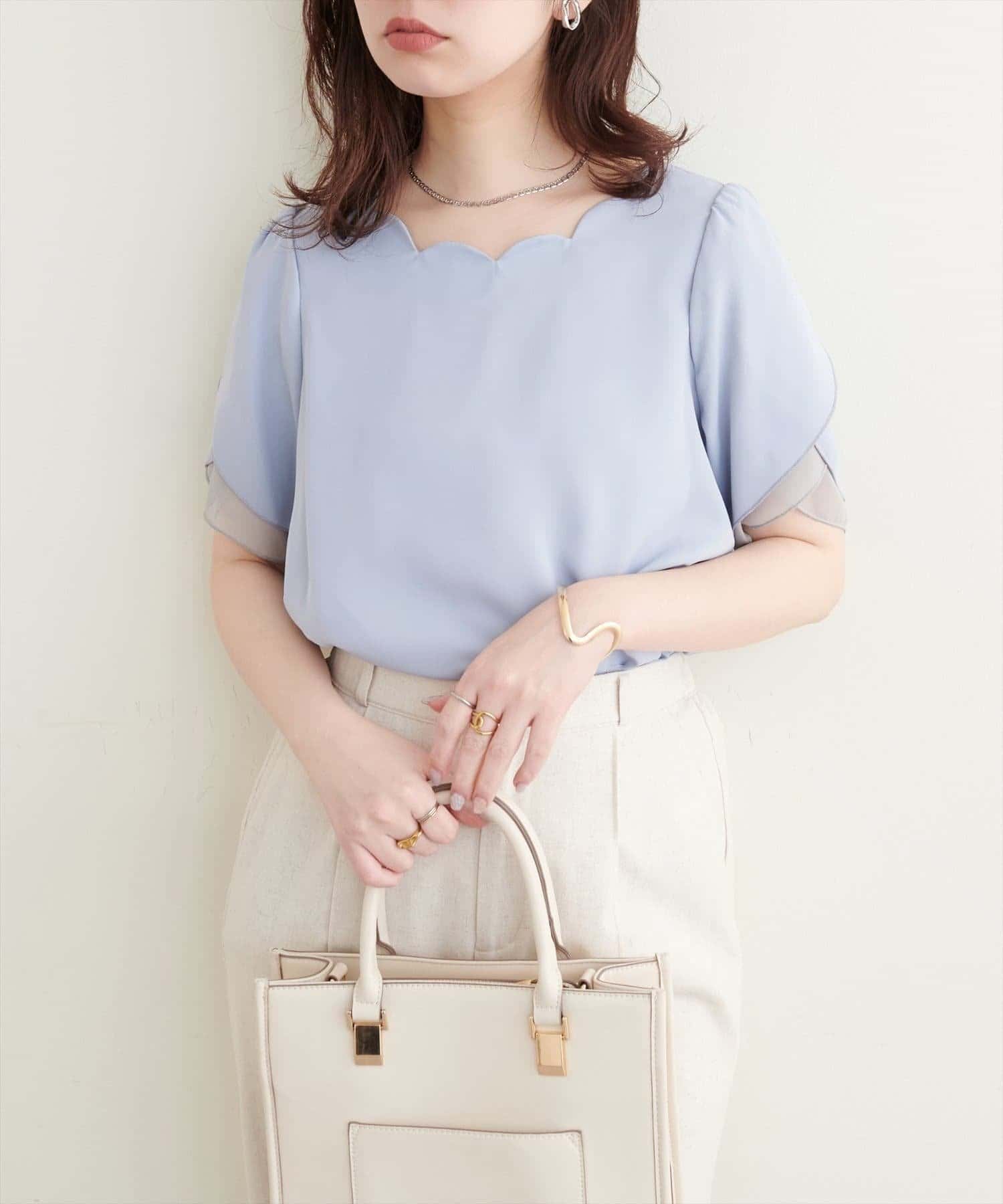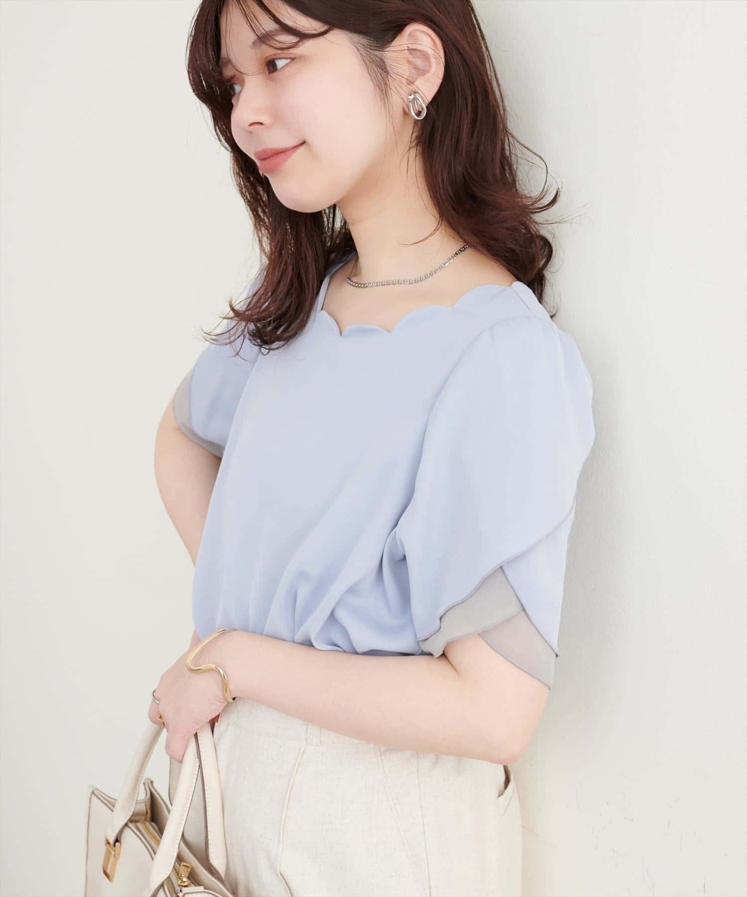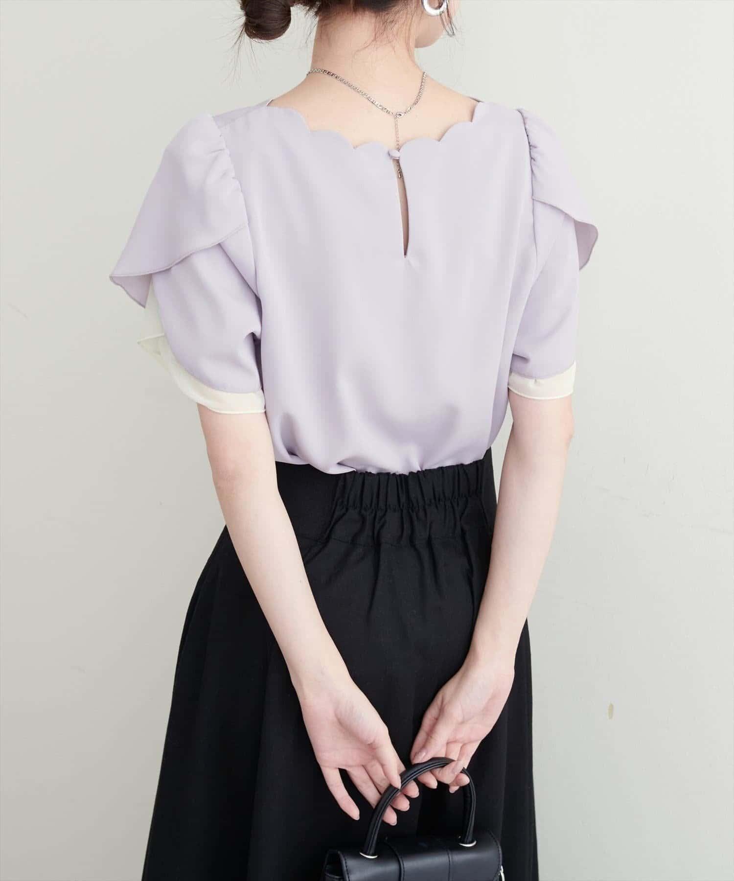 • natural couture(ナチュラルクチュール) チューリップスリーブスカラップネックブラウス