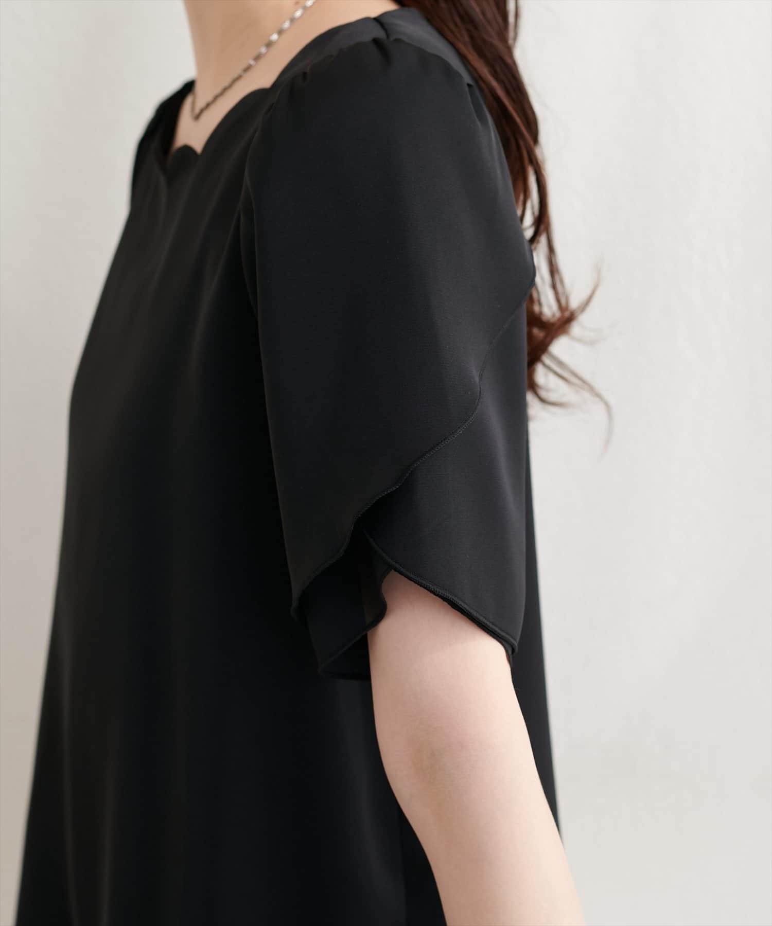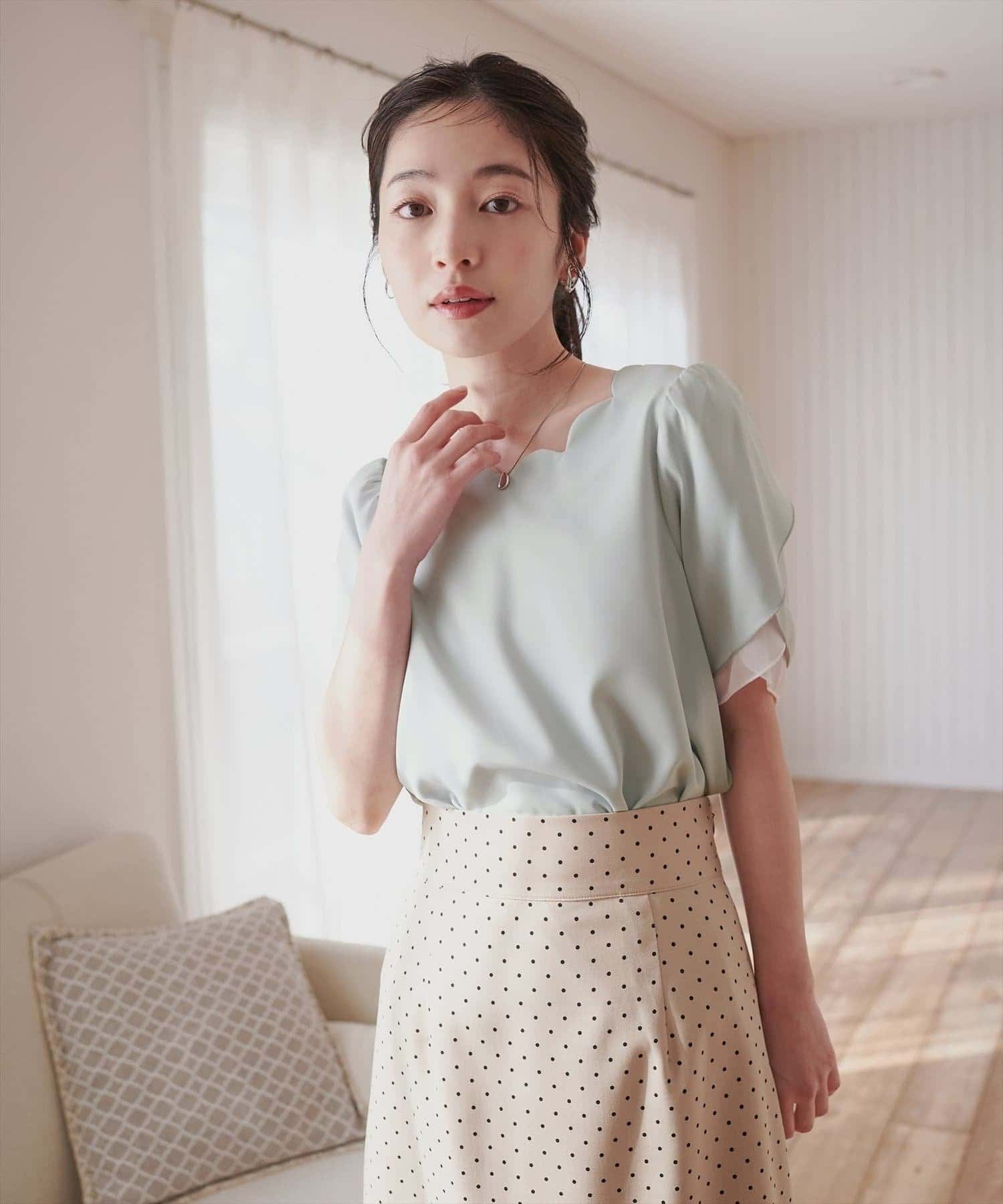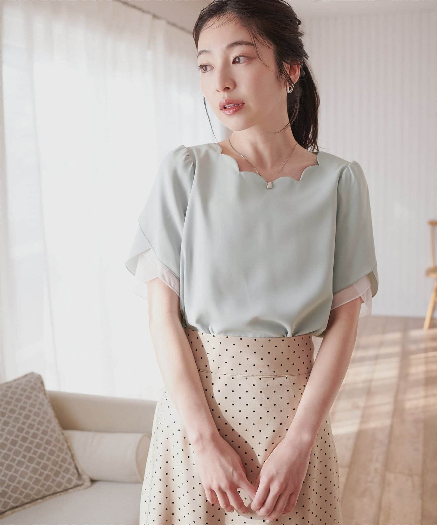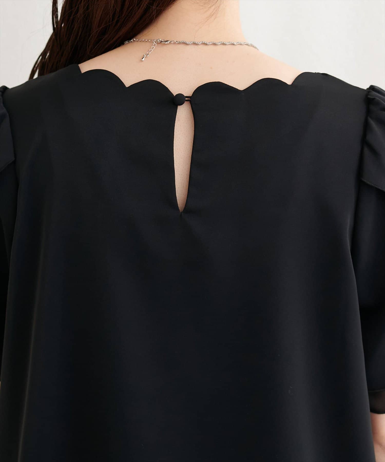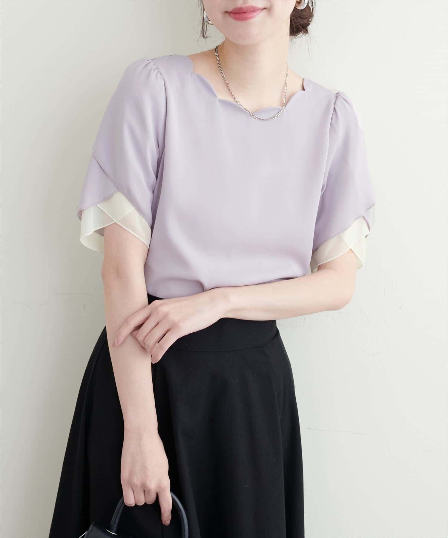 • natural couture(ナチュラルクチュール) チューリップスリーブスカラップネックブラウス