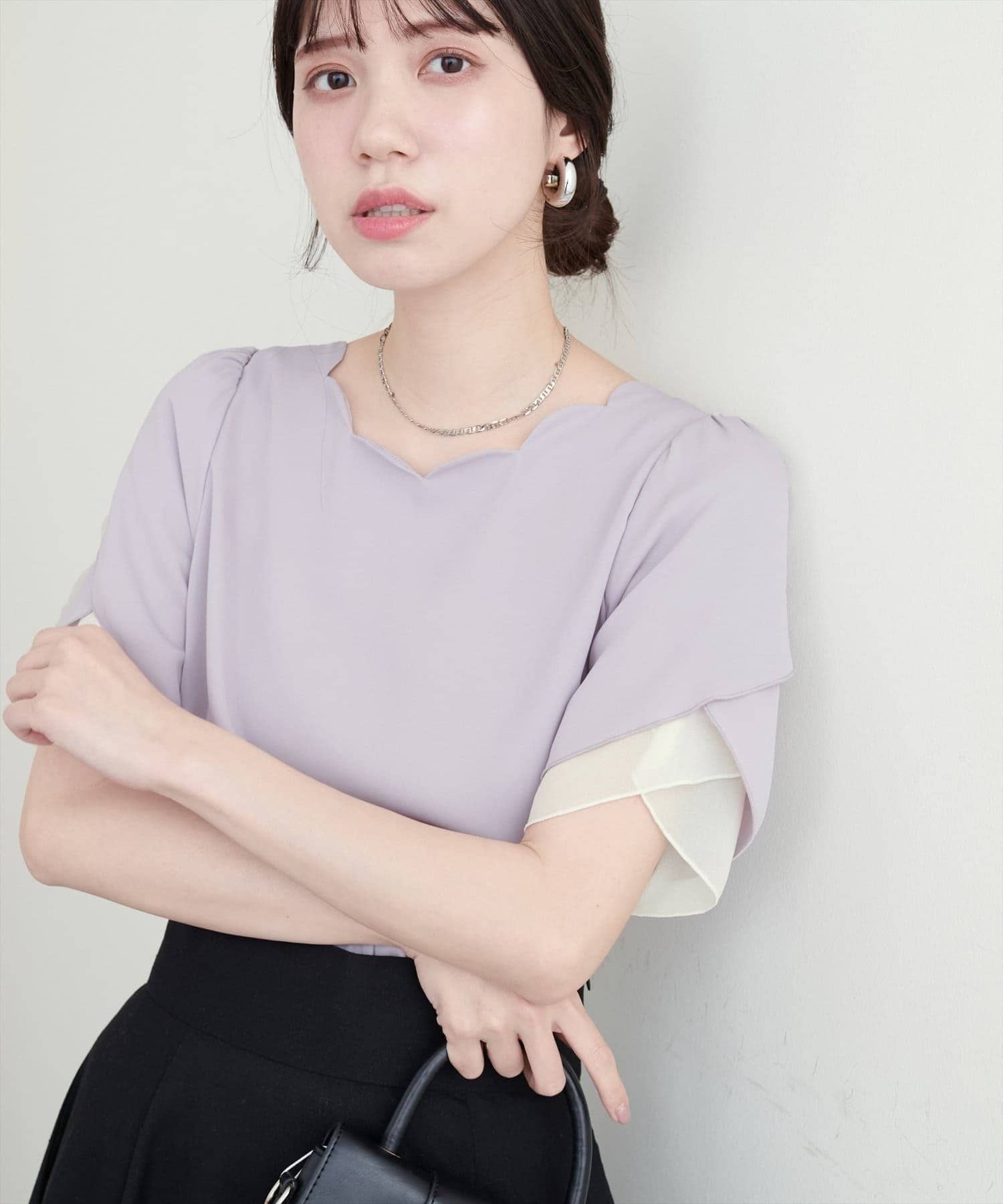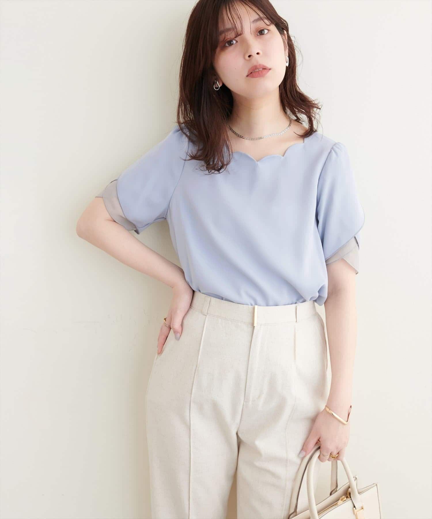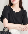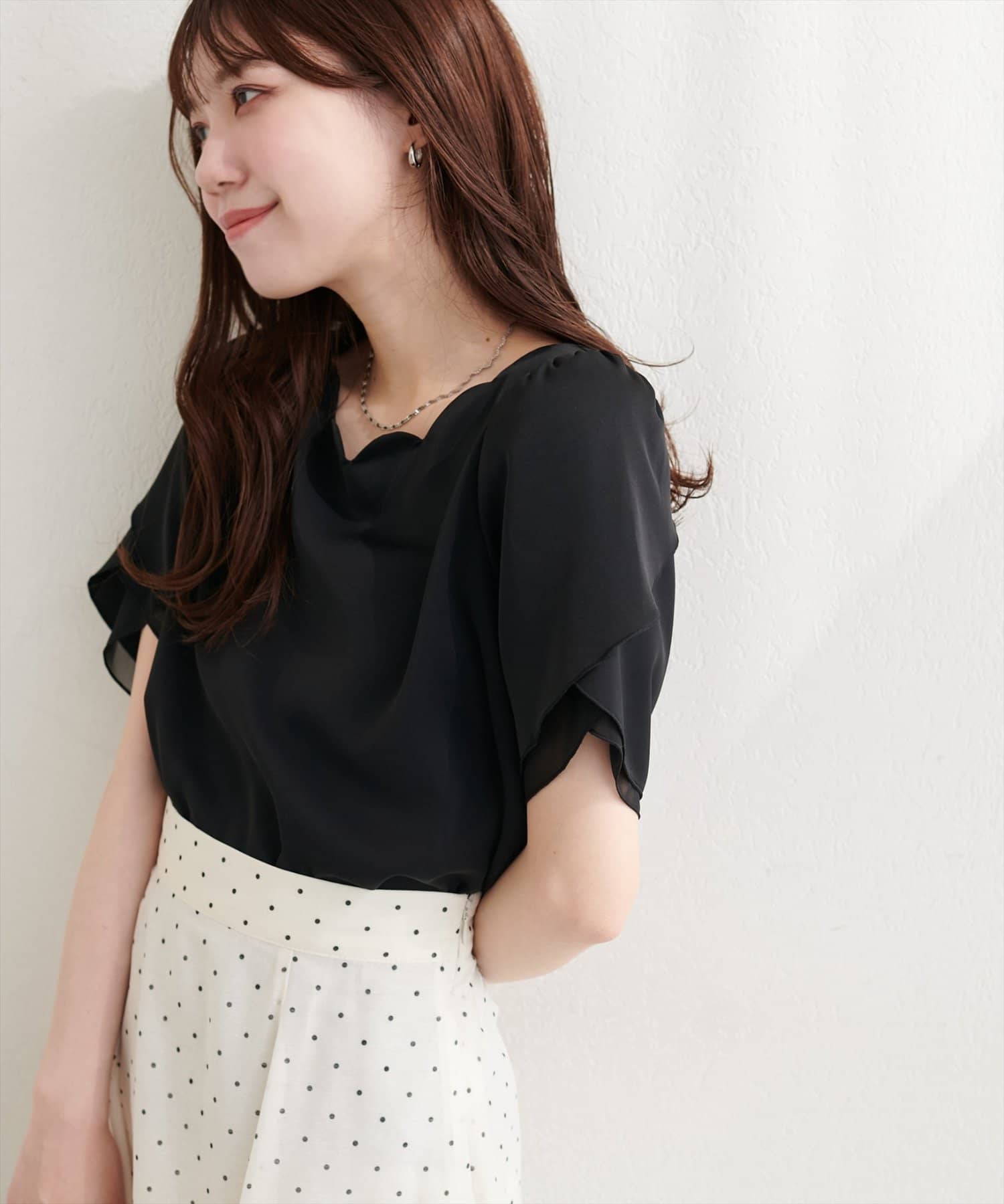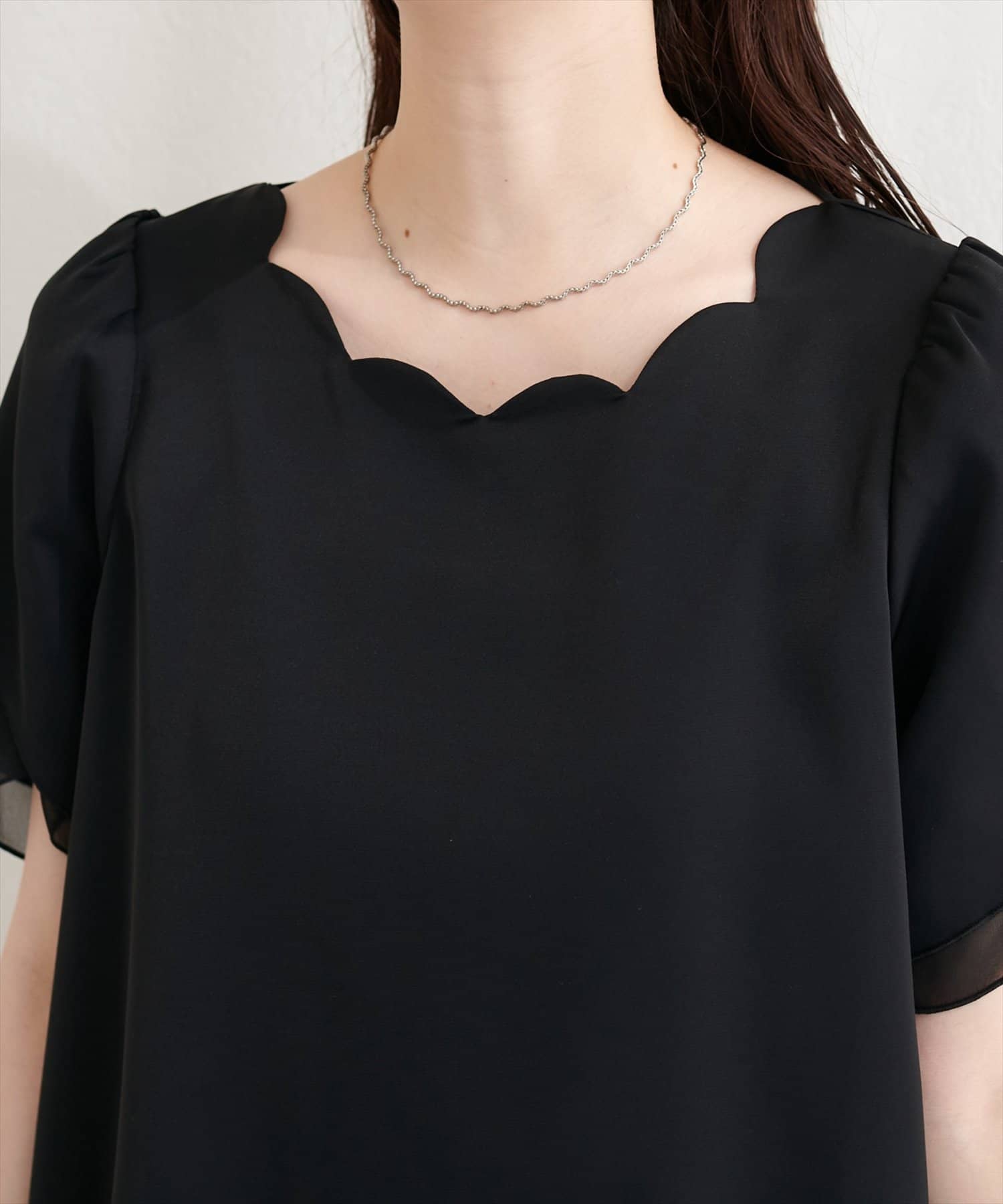 • natural couture(ナチュラルクチュール) チューリップスリーブスカラップネックブラウス