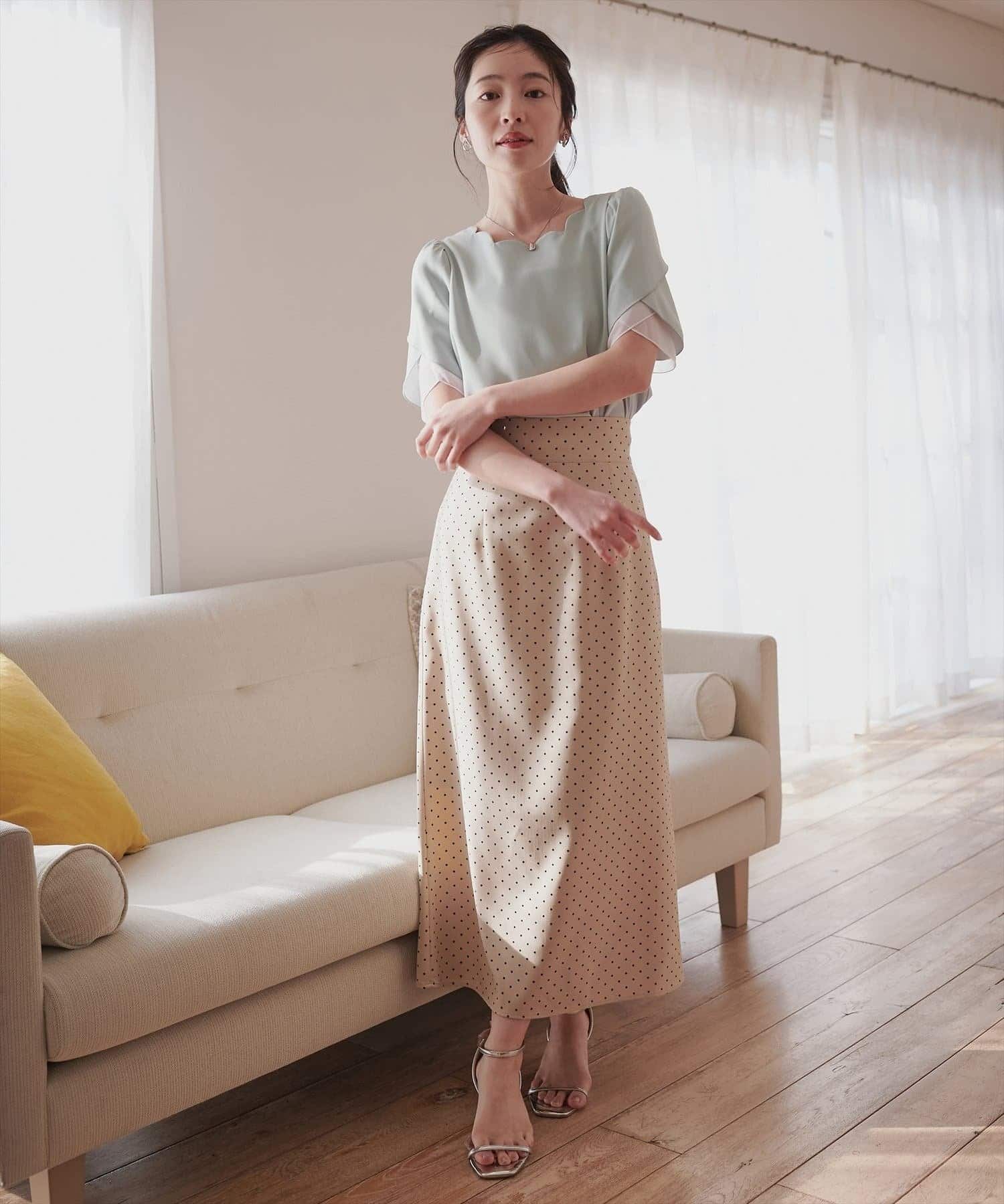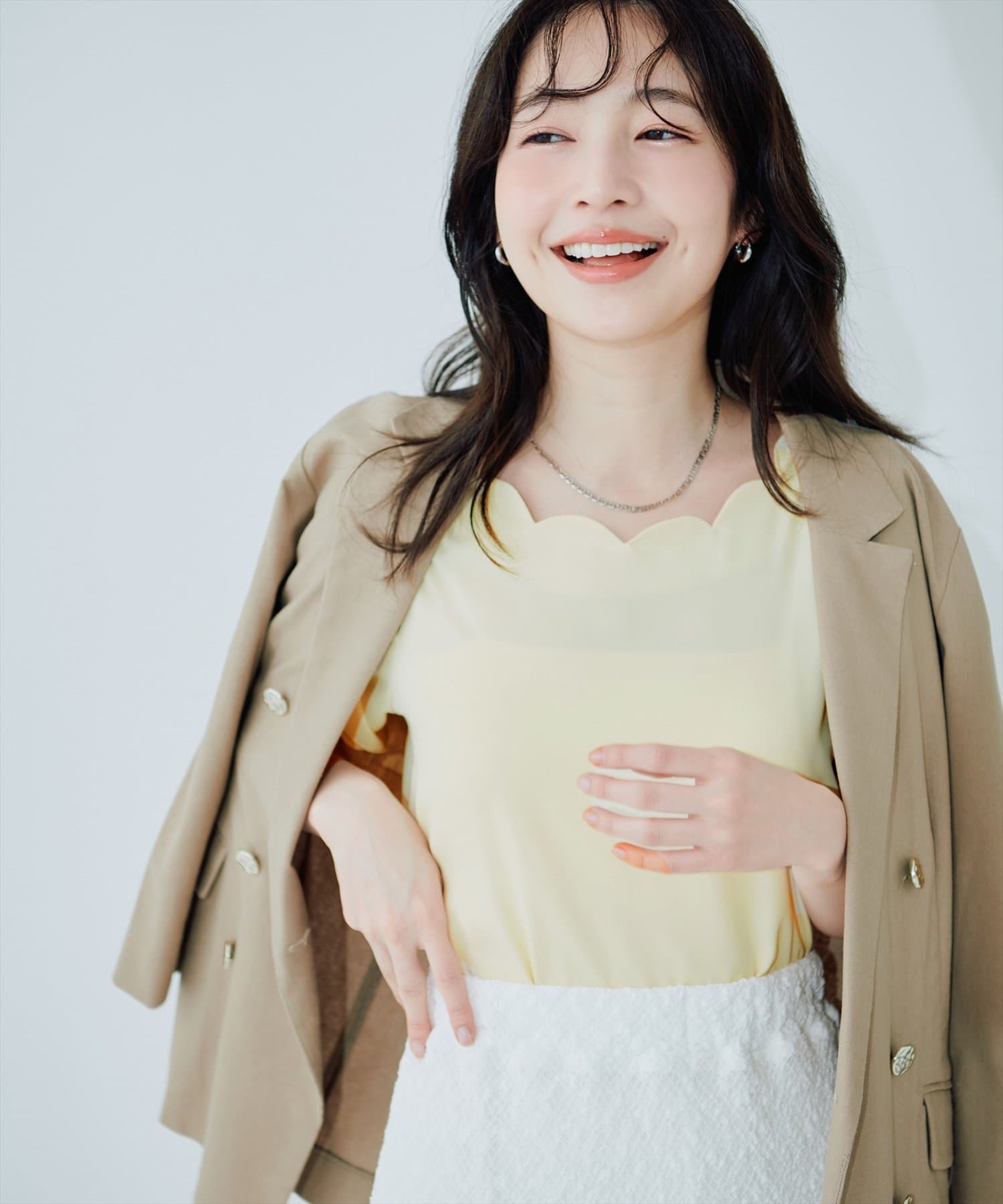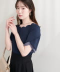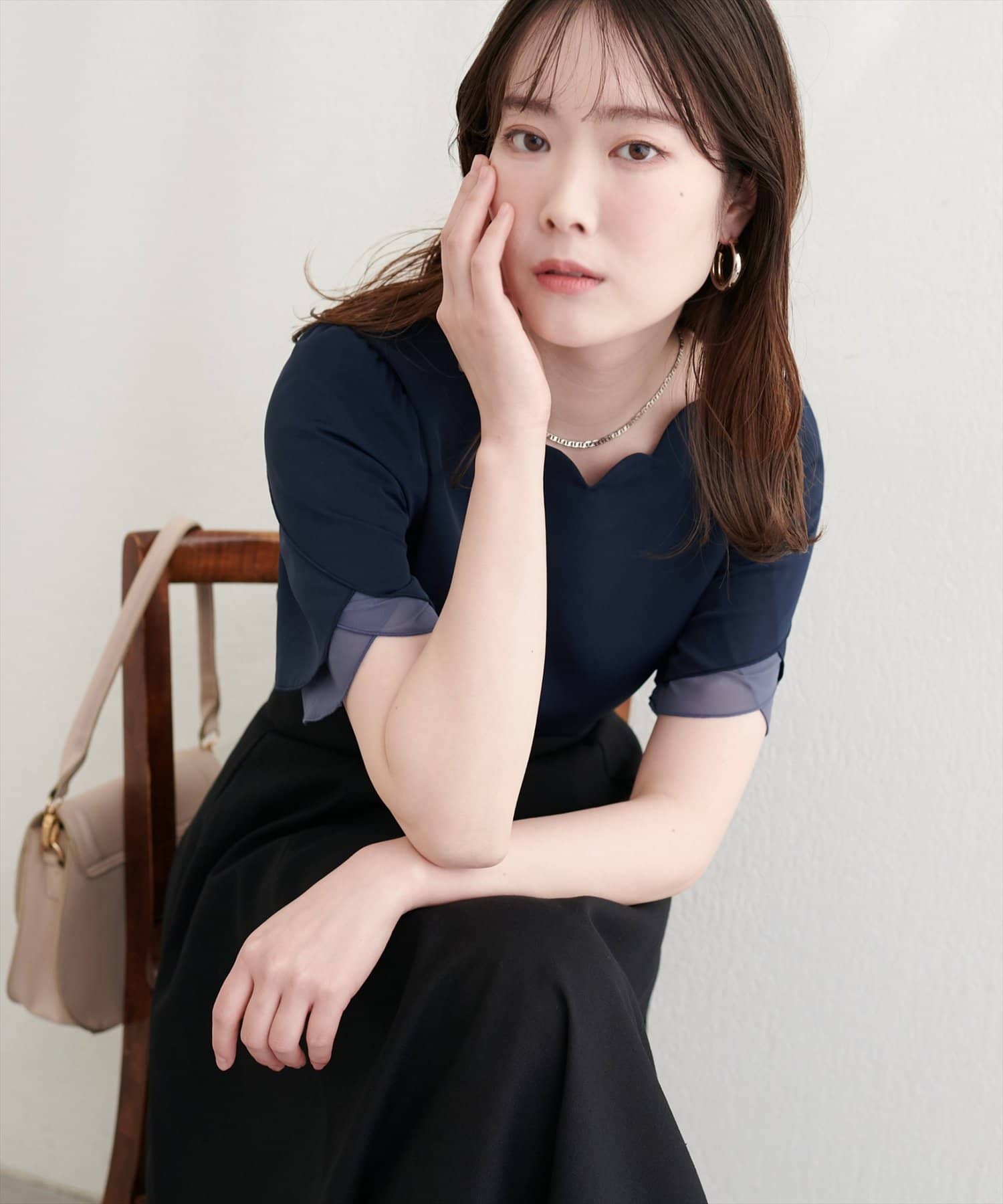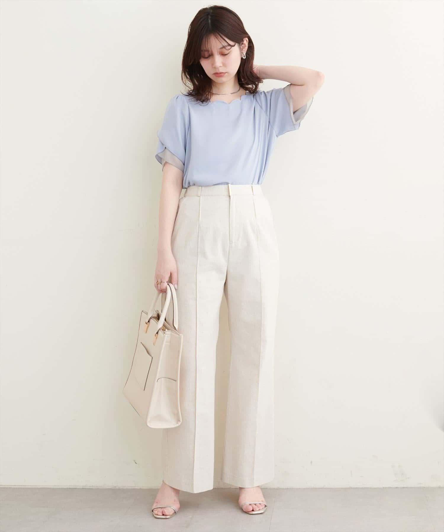 • natural couture(ナチュラルクチュール) チューリップスリーブスカラップネックブラウス
