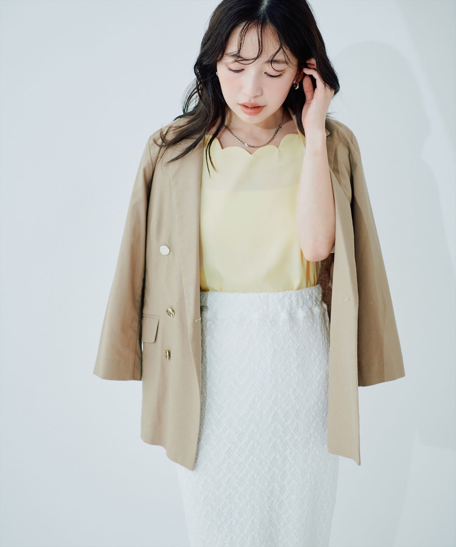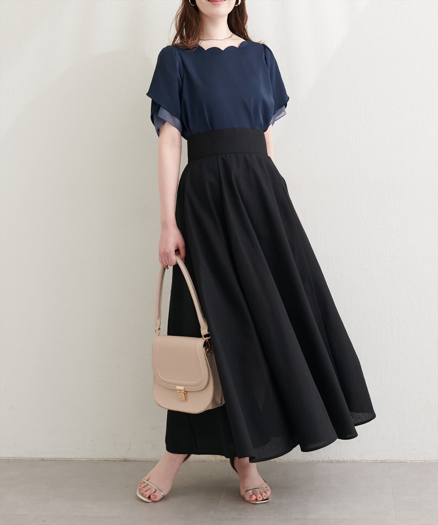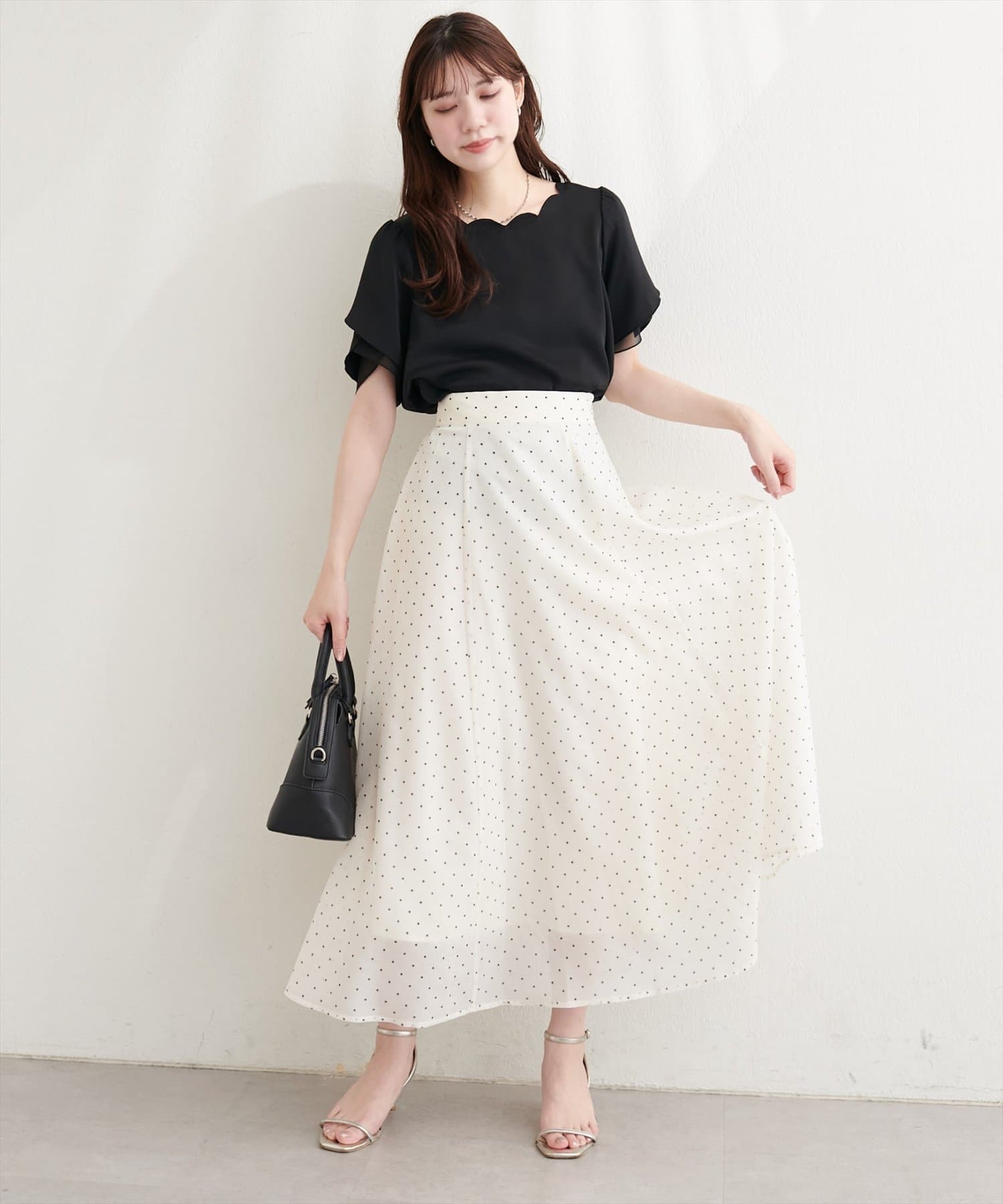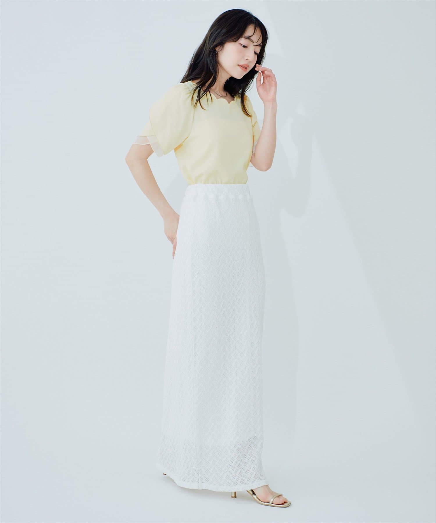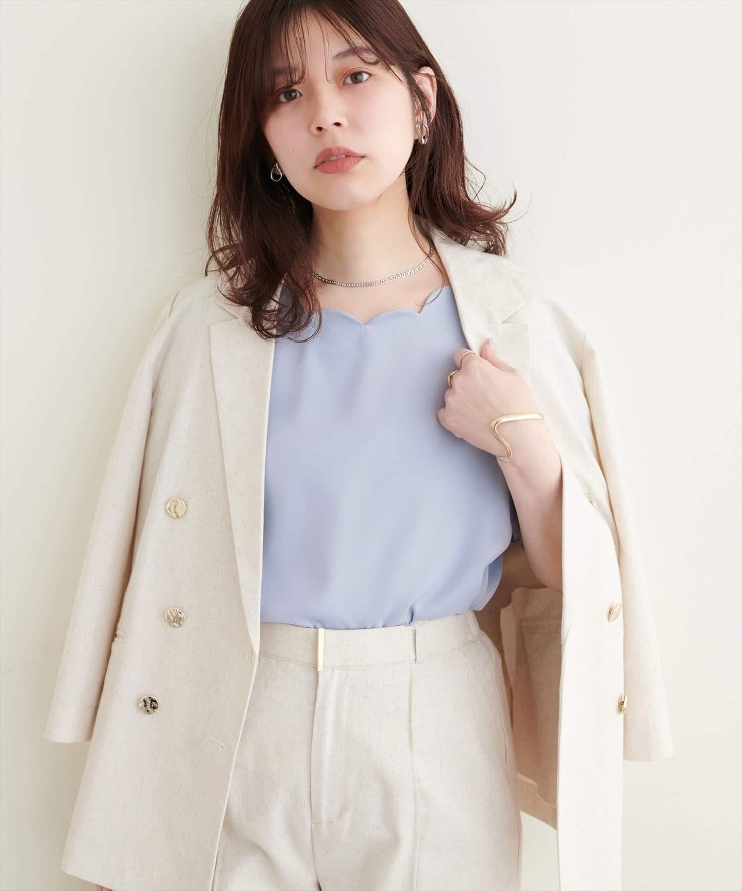 • natural couture(ナチュラルクチュール) チューリップスリーブスカラップネックブラウス