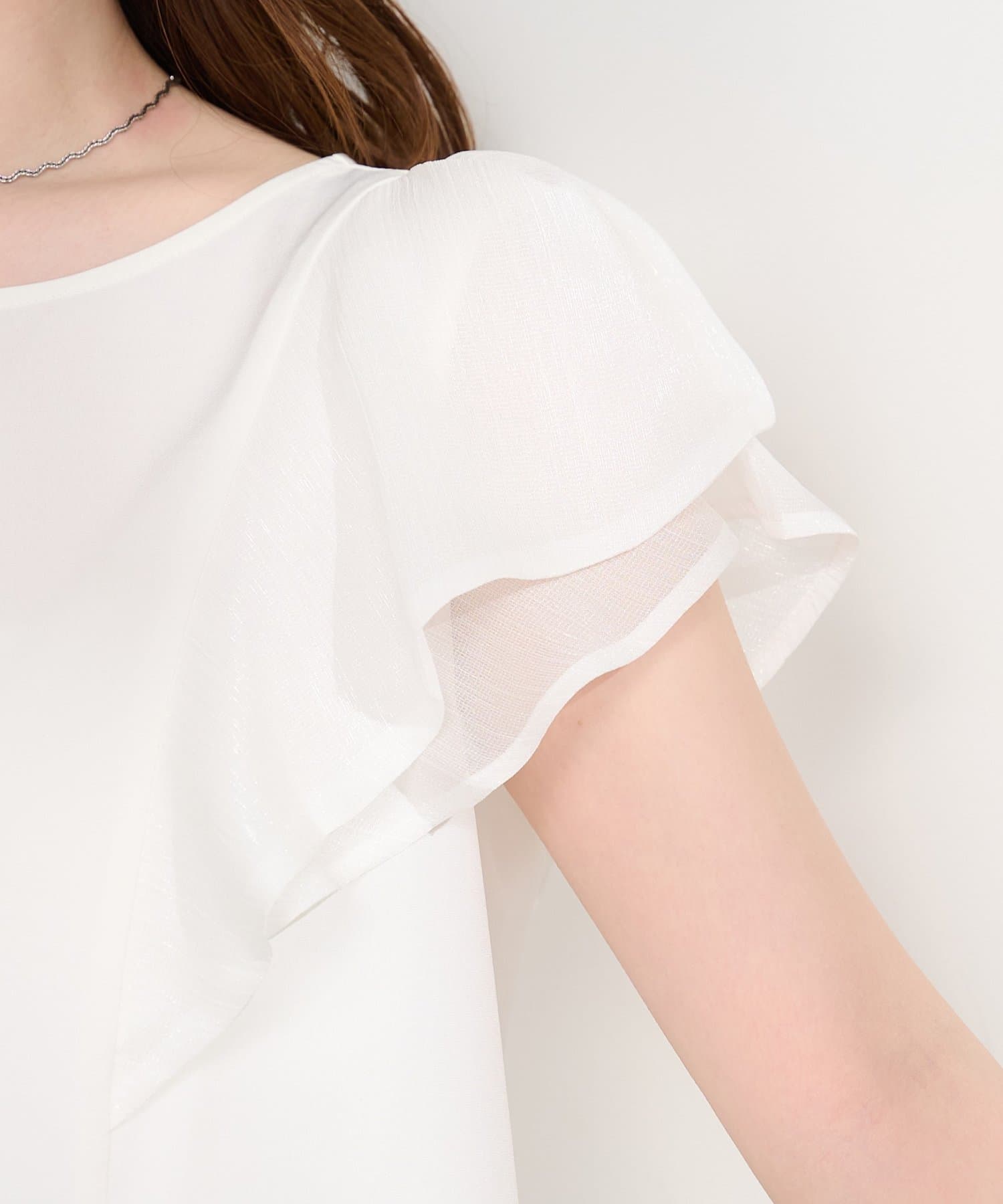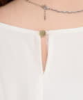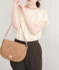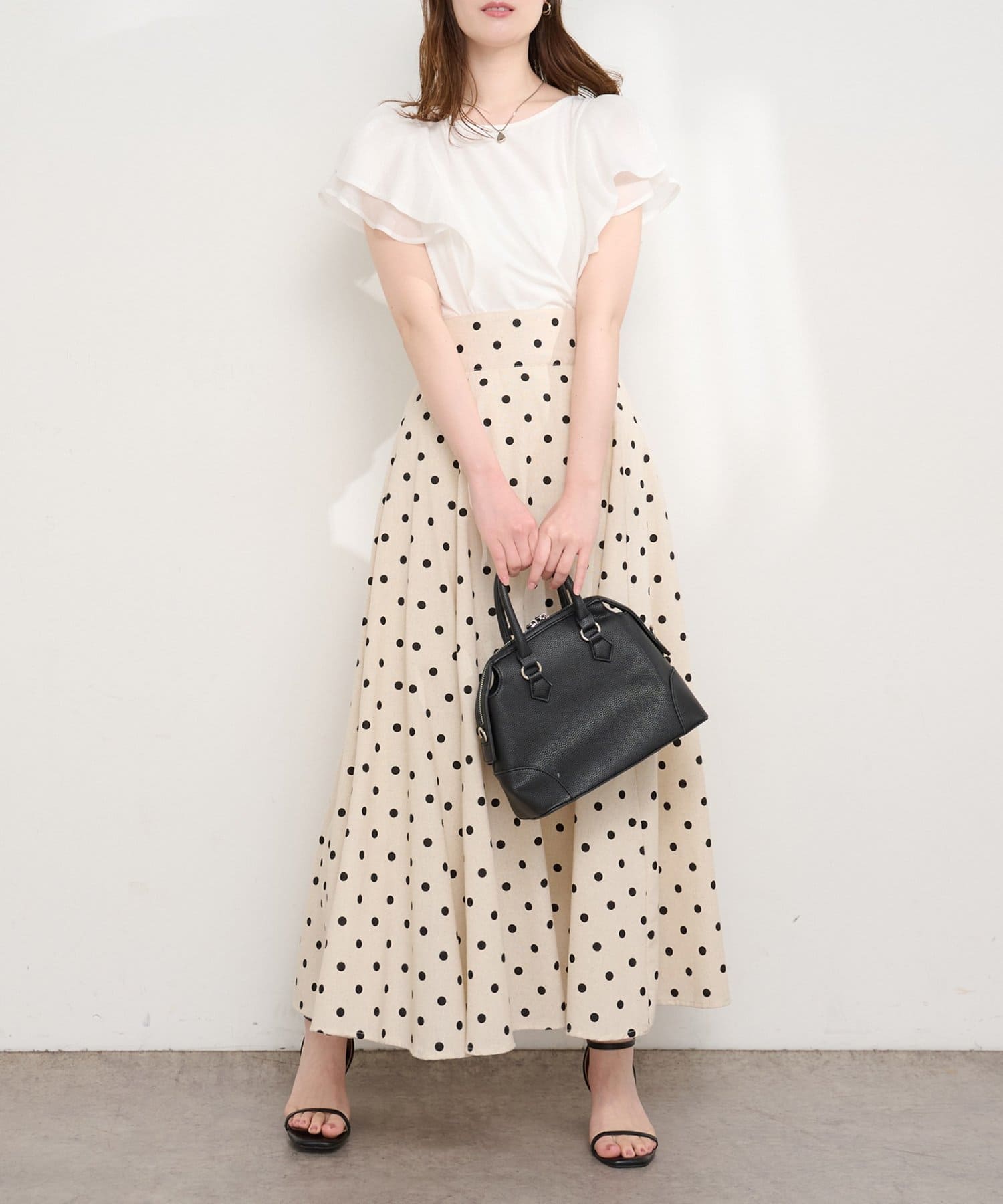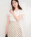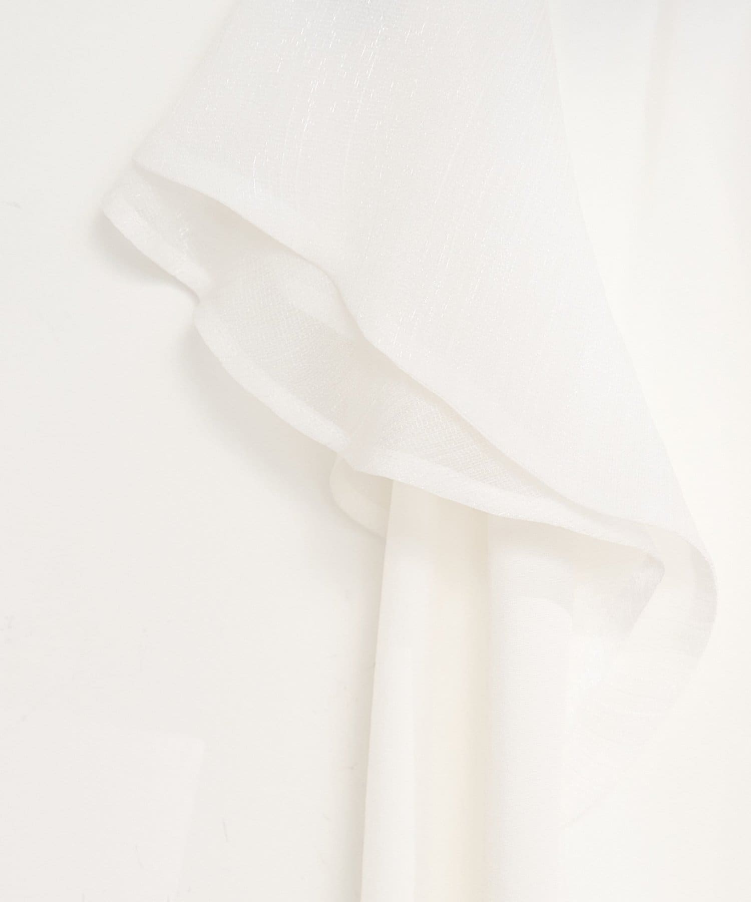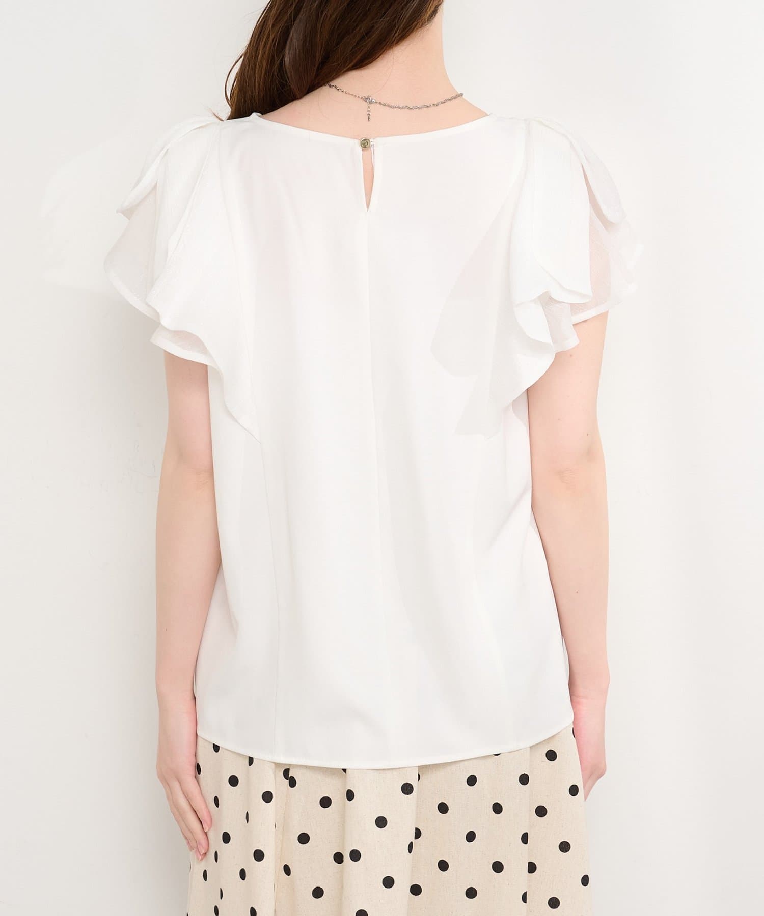 肩を飾るフリルは、動くたびにふわりと愛らしく、甘すぎない、大人のためのリボンデザイン。