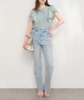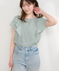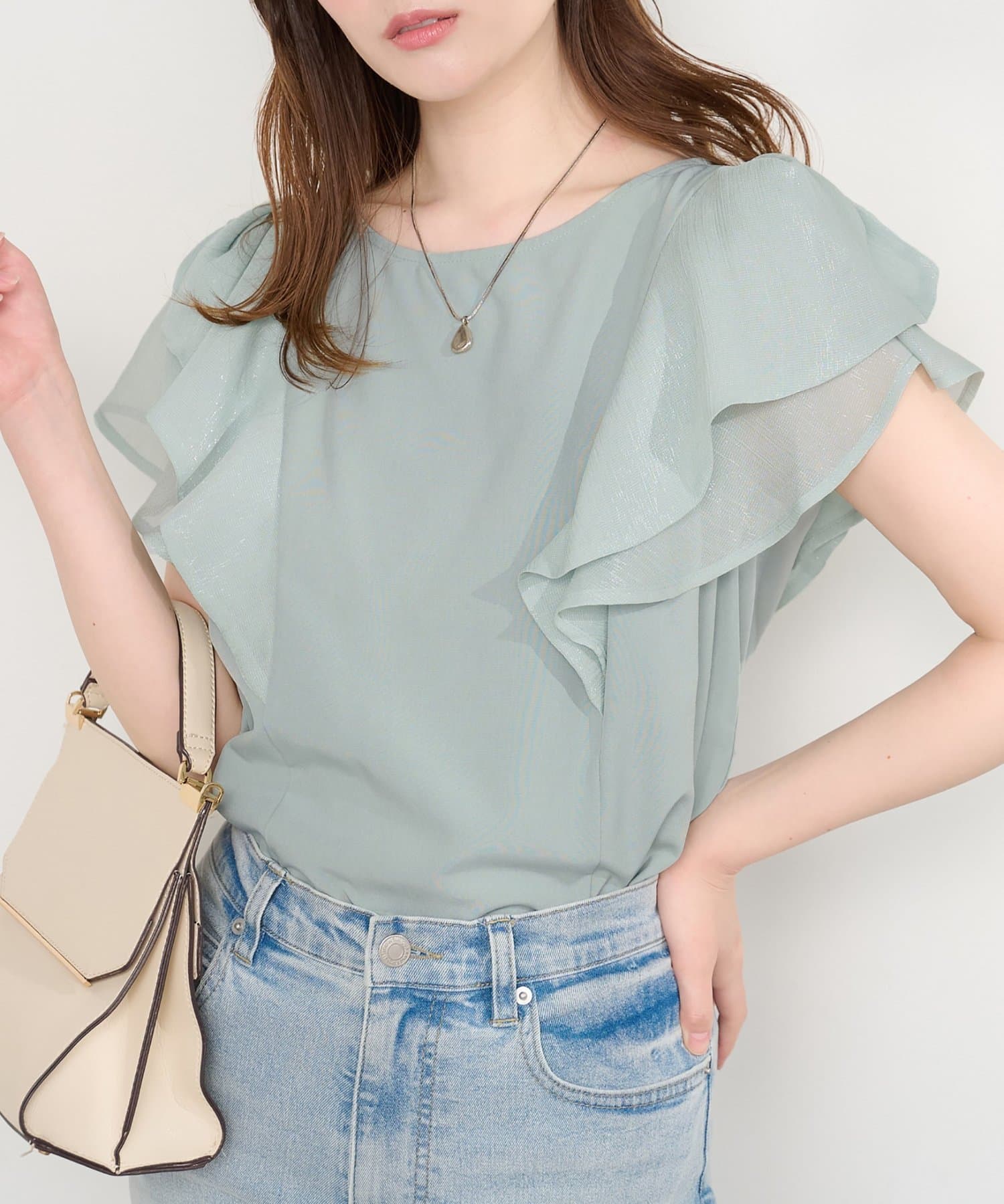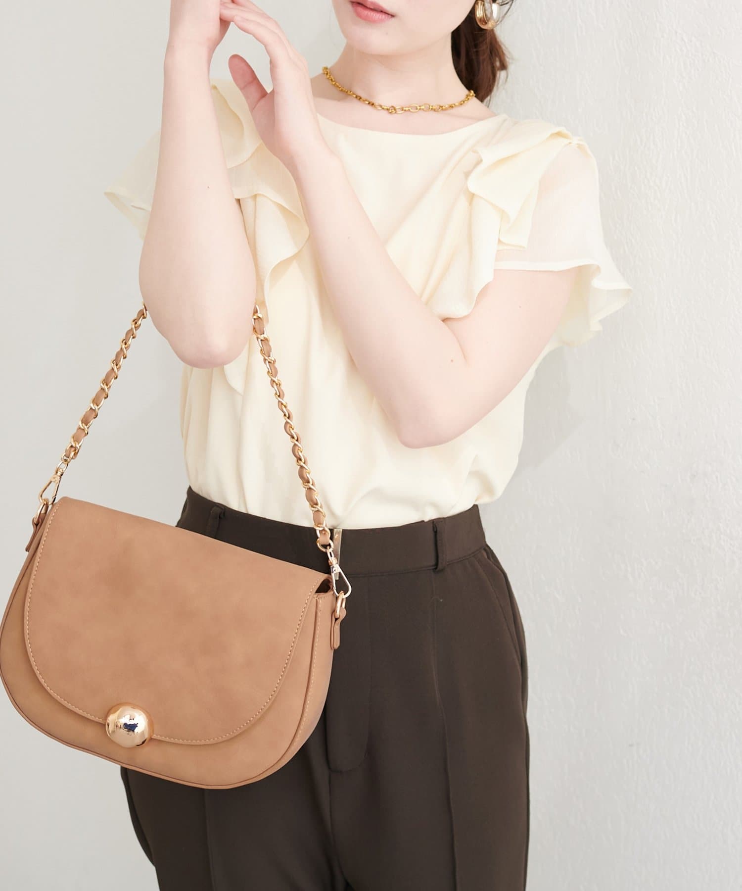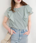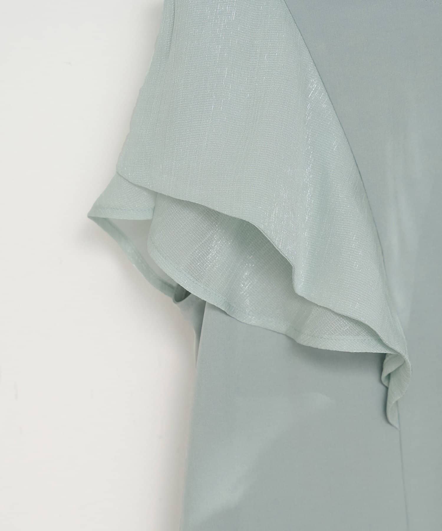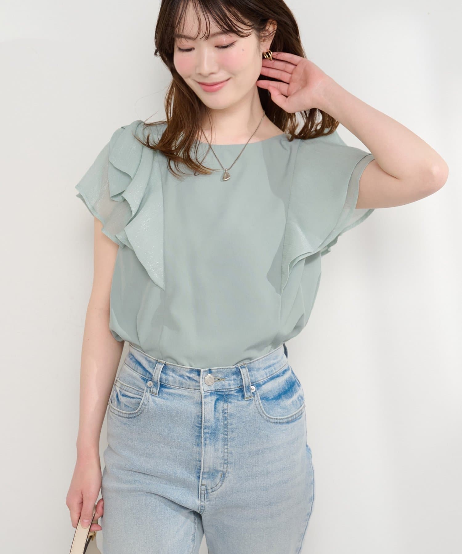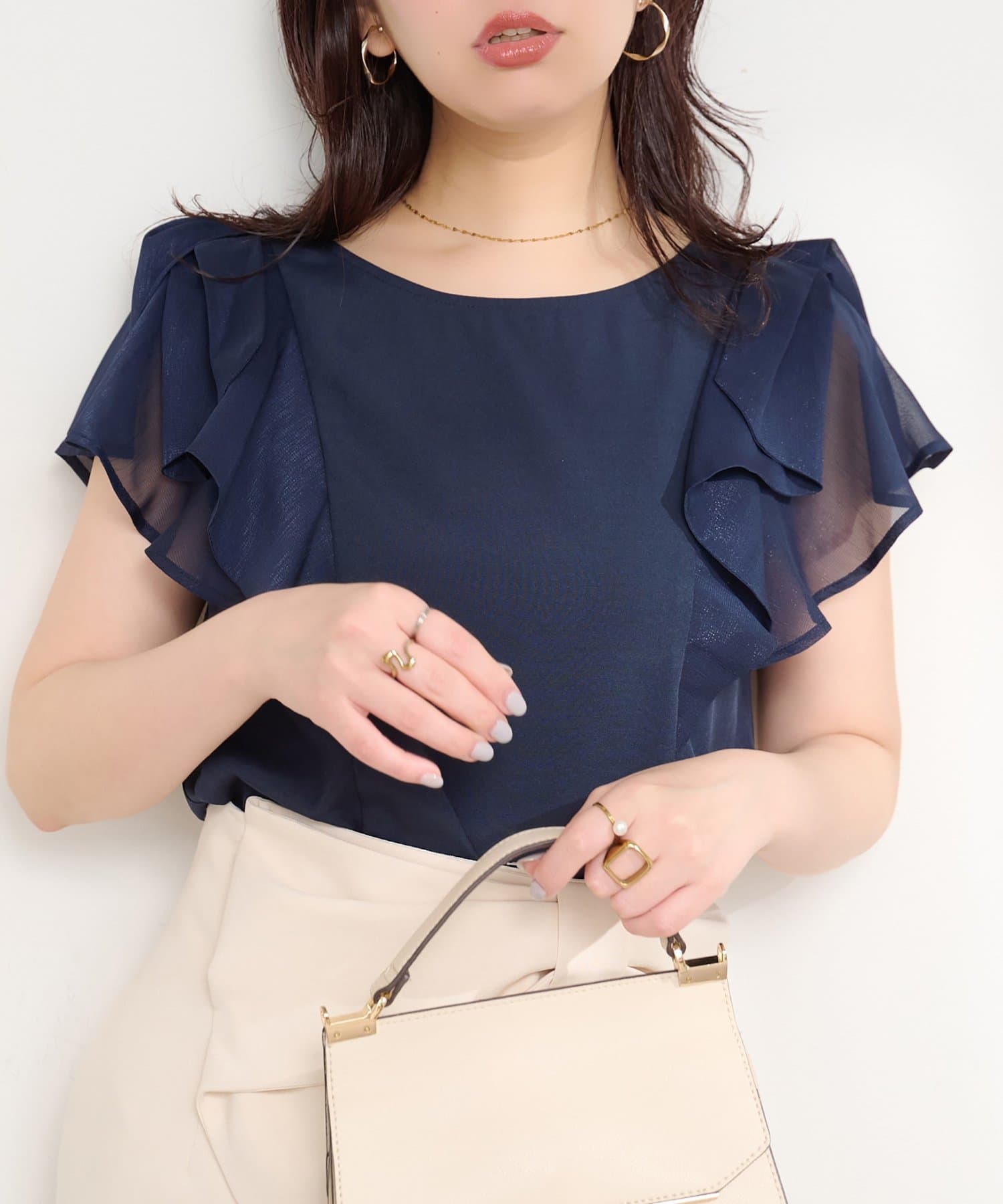 肩を飾るフリルは、動くたびにふわりと愛らしく、甘すぎない、大人のためのリボンデザイン。