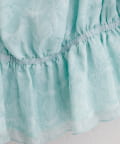 肩回りに施されたフリルは肩のラインを華奢に見せつつ、程よい肌見せで抜け感を演出します。