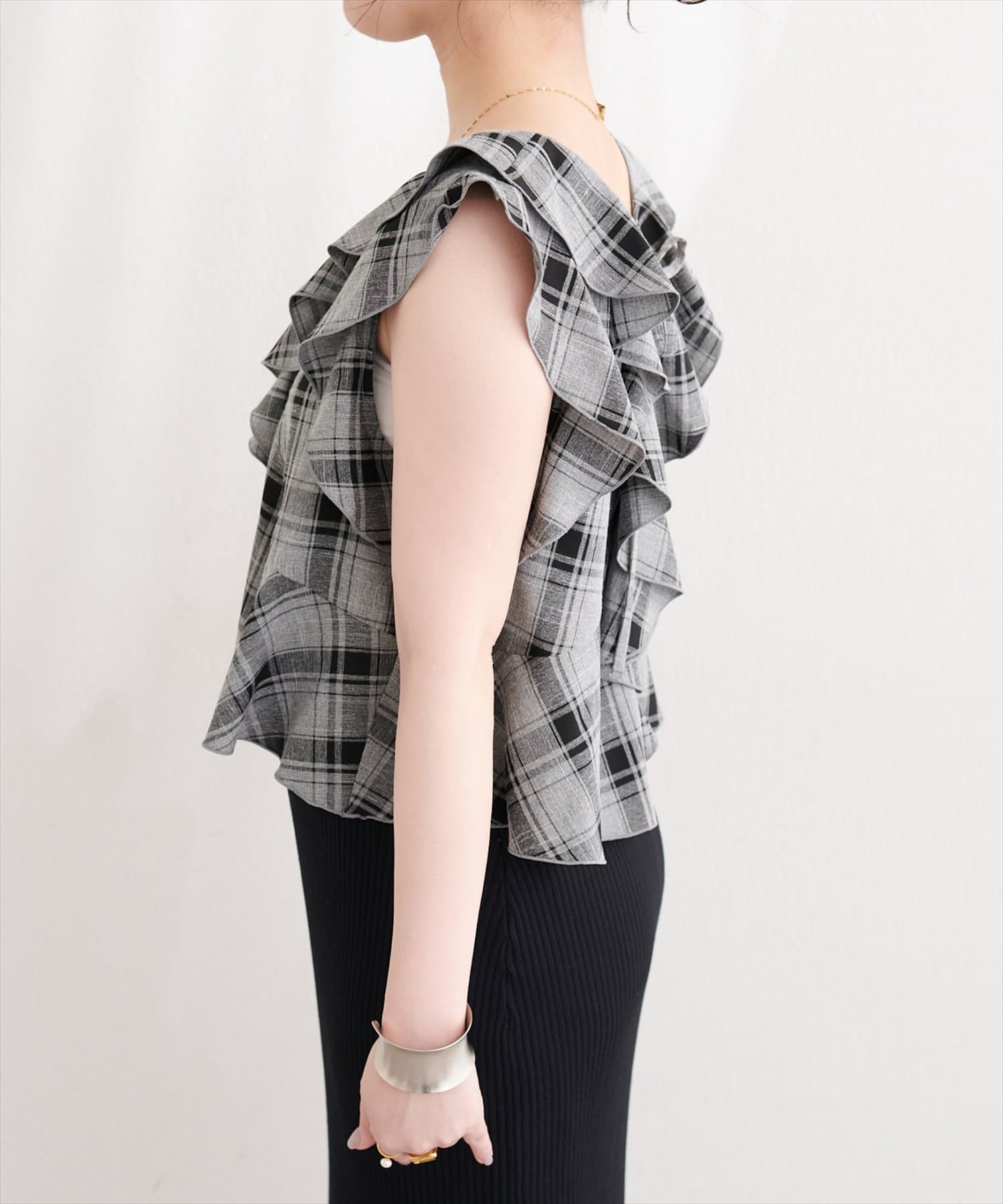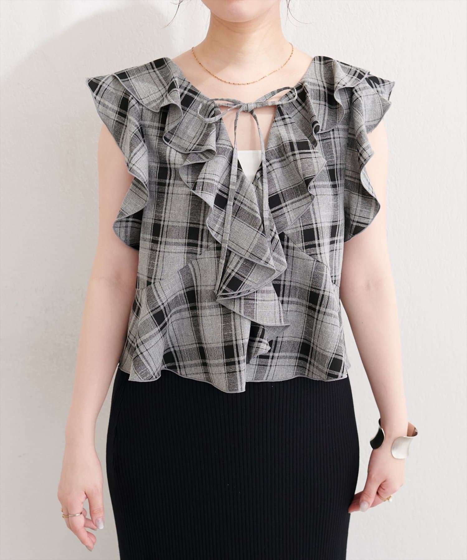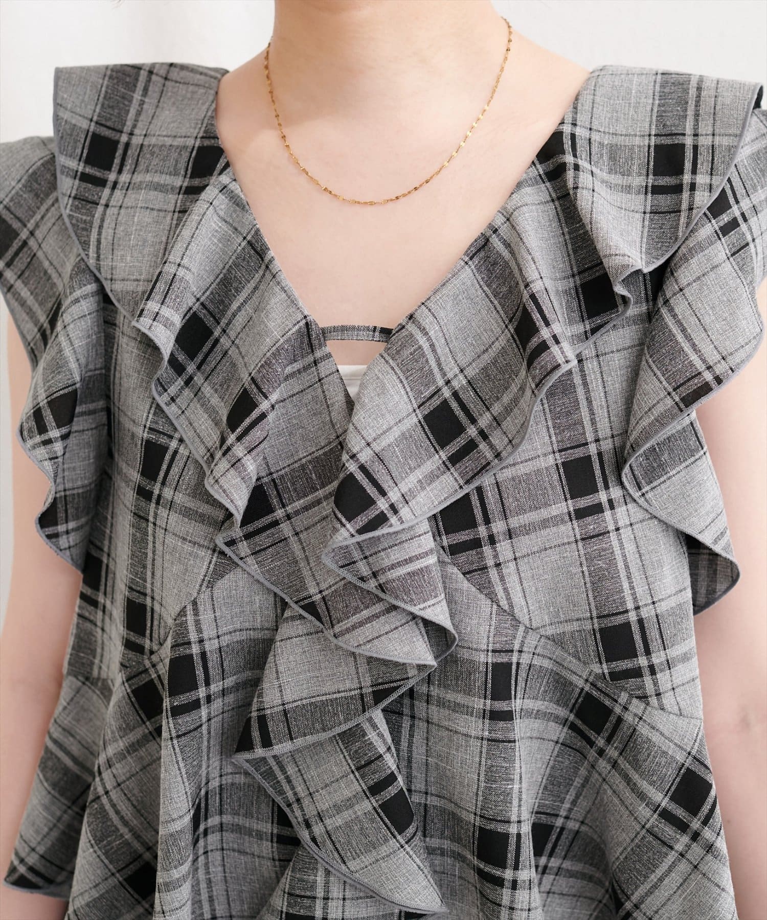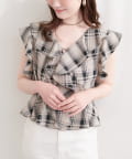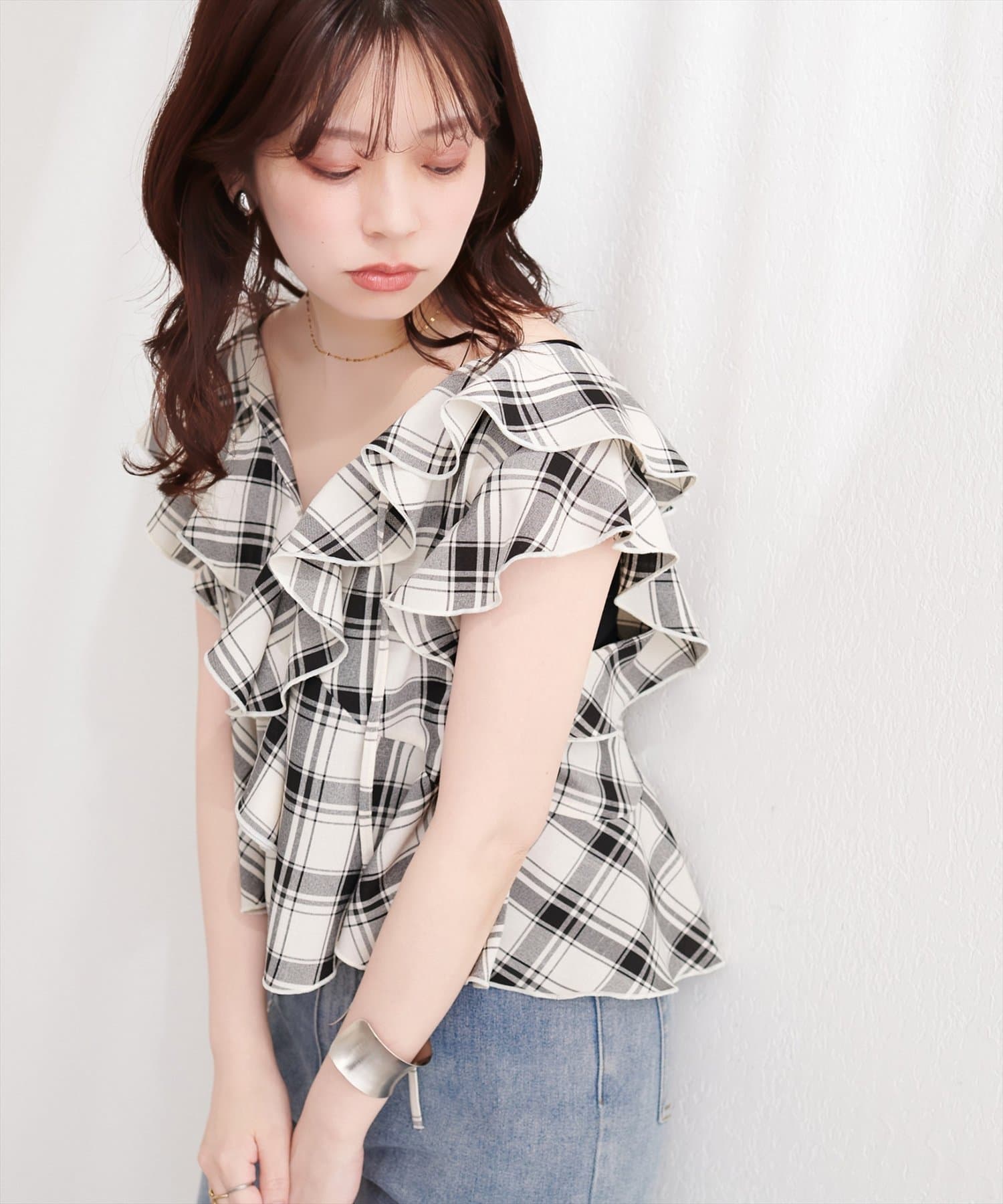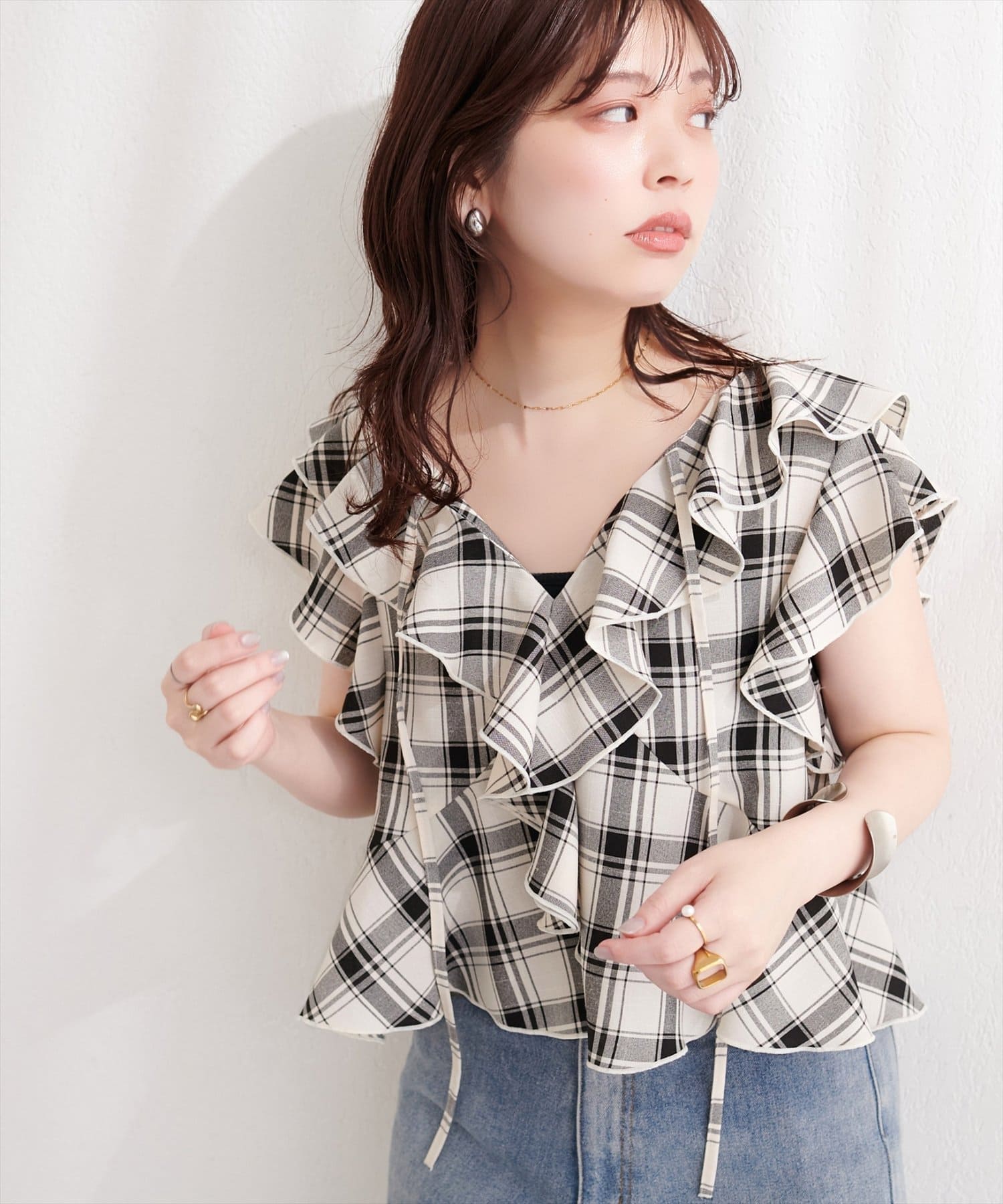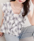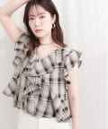 • natural couture(ナチュラルクチュール) 前後2WAYチェックラッフルブラウス