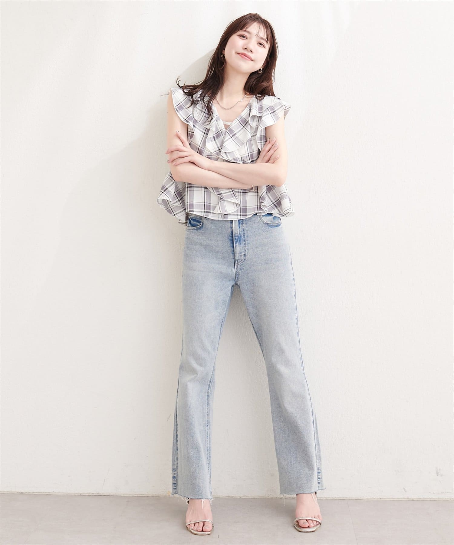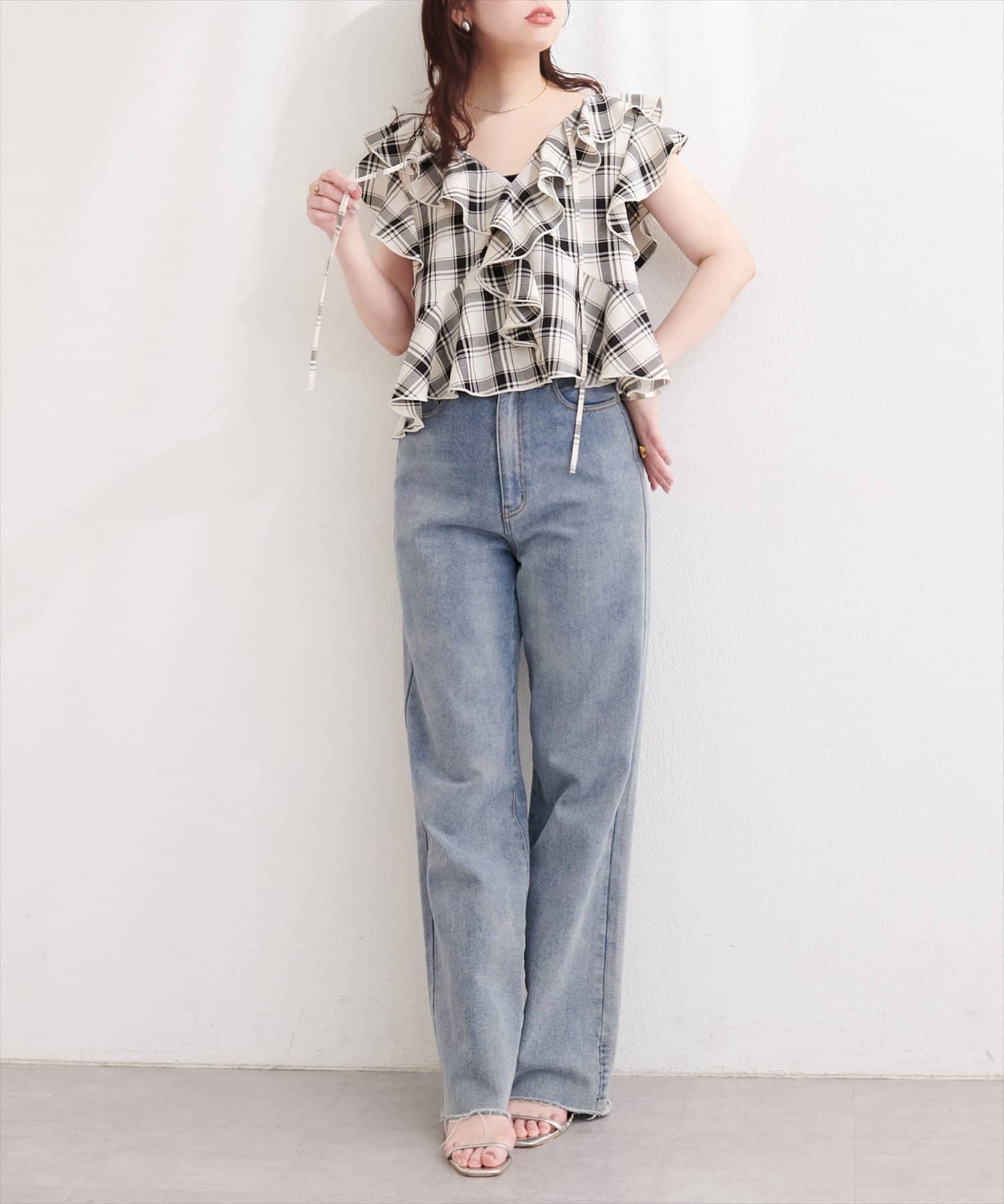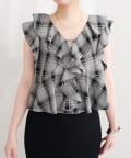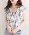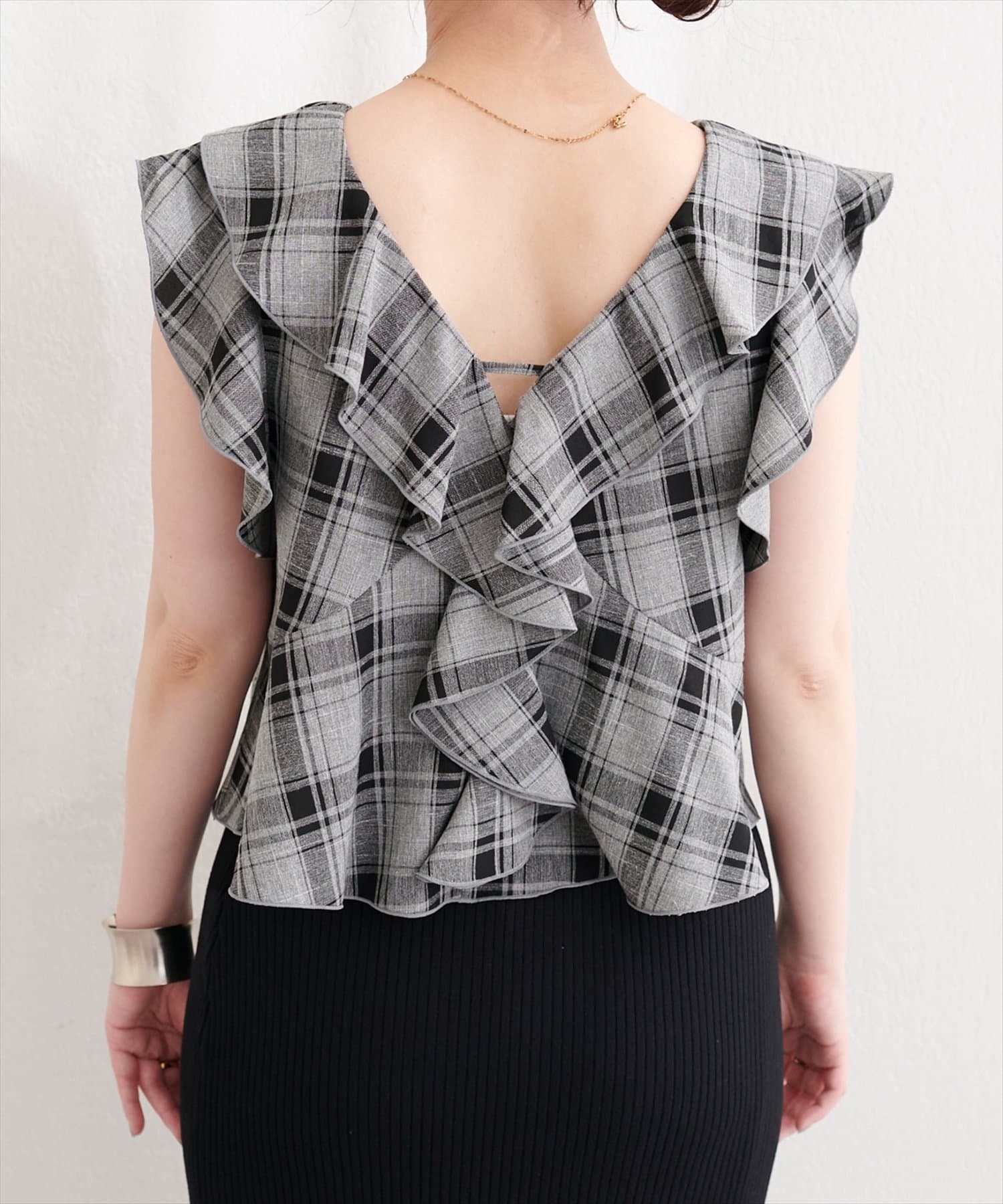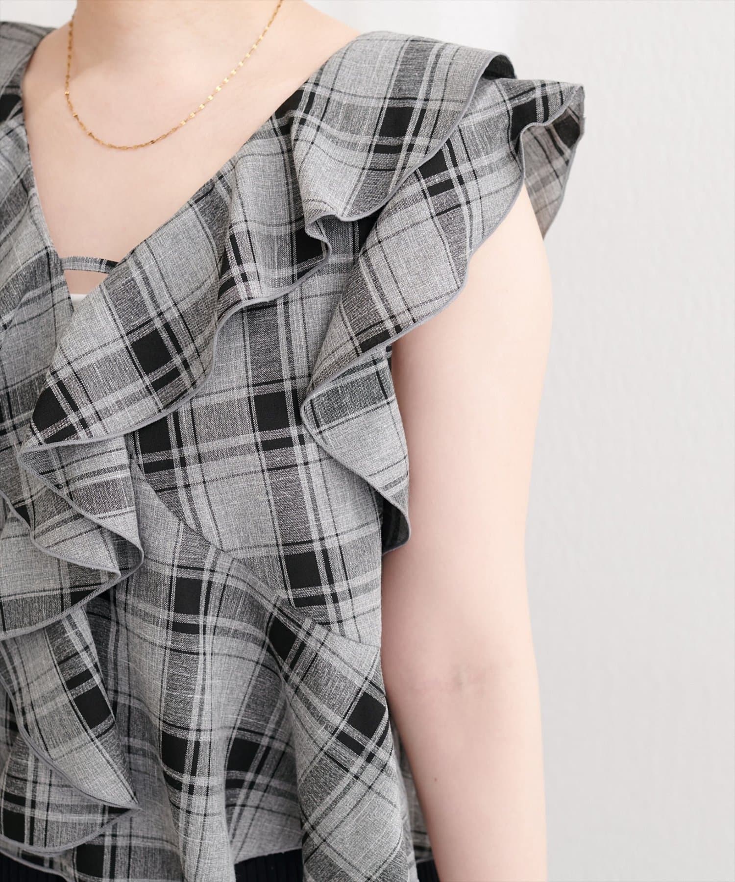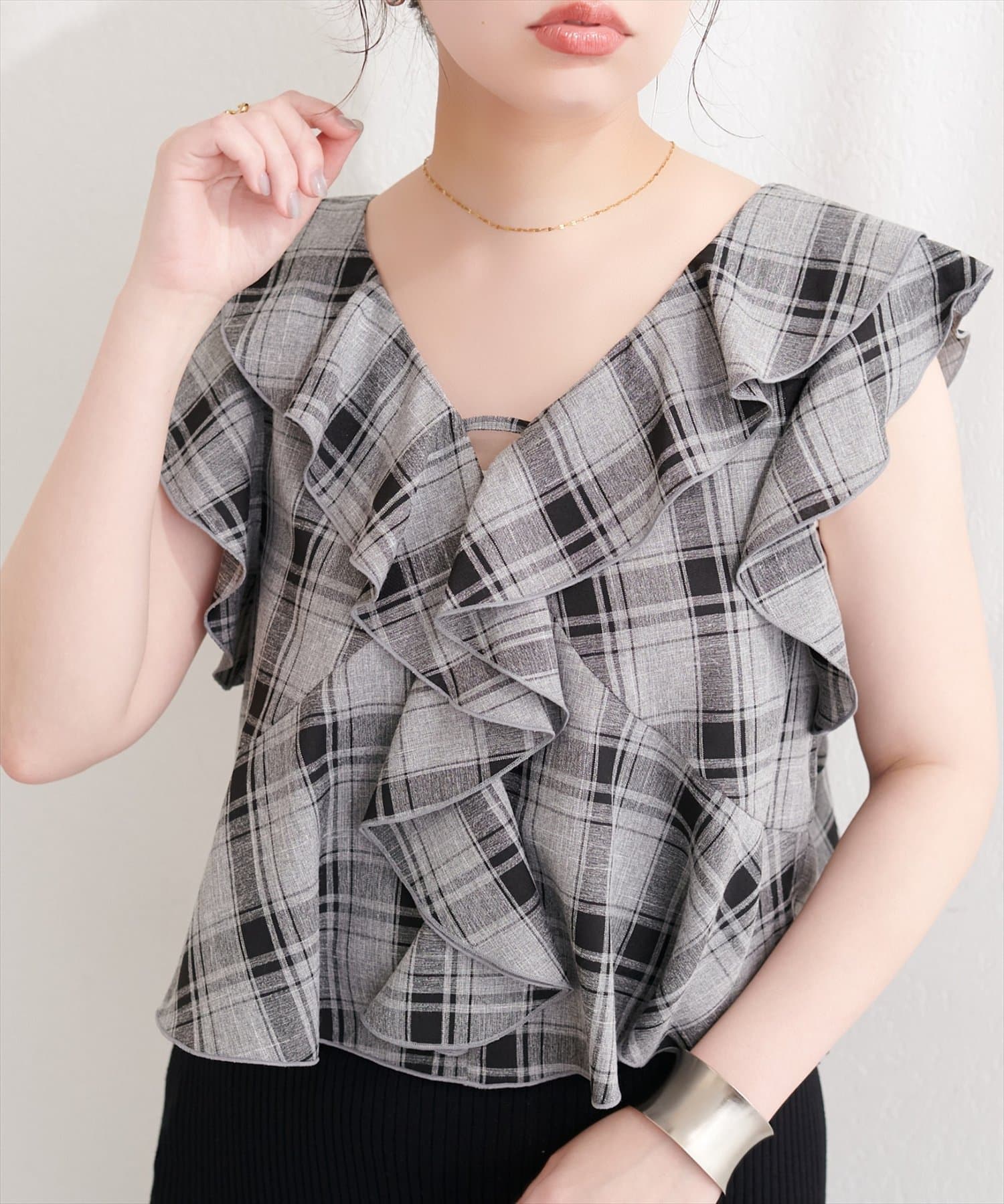 • natural couture(ナチュラルクチュール) 前後2WAYチェックラッフルブラウス