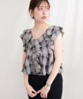 顔周りを華やかに彩るラッフルデザインが愛らしい一枚。