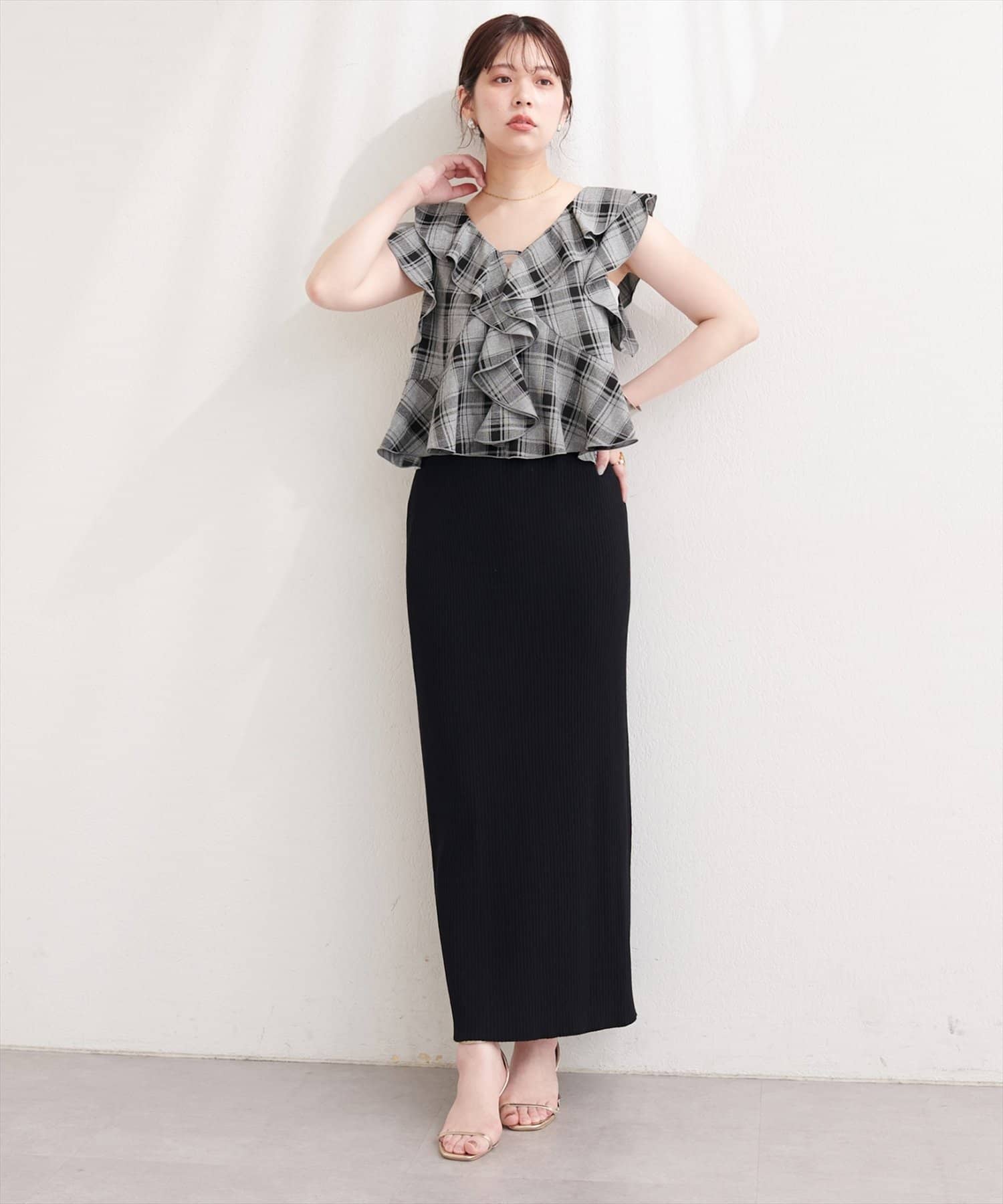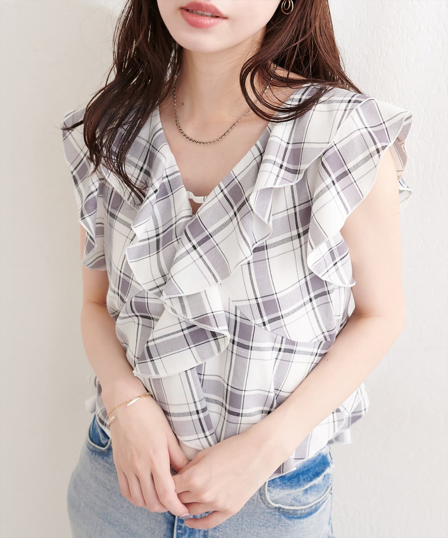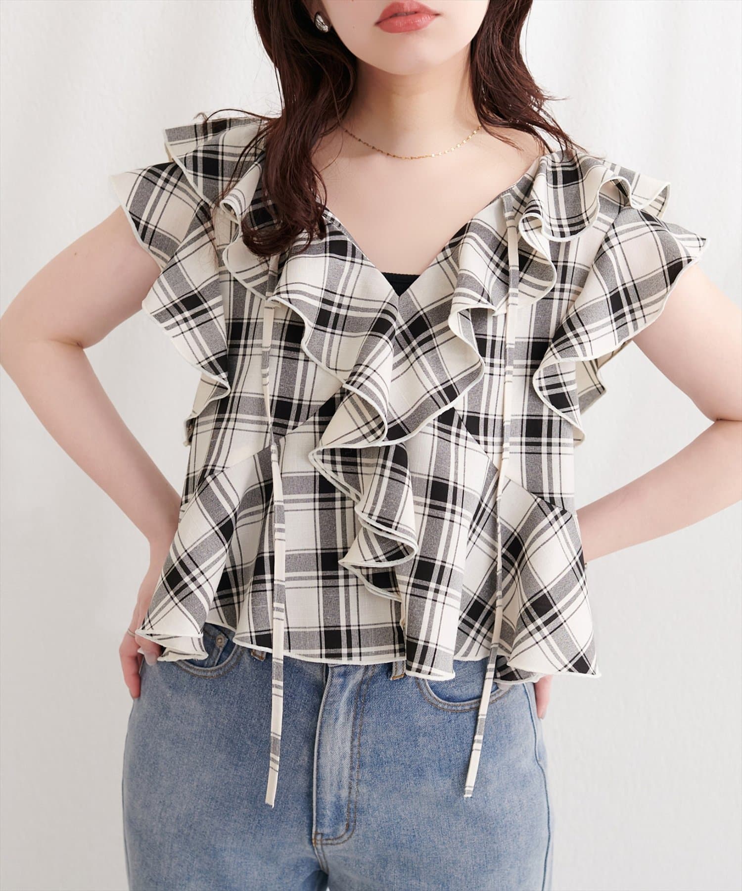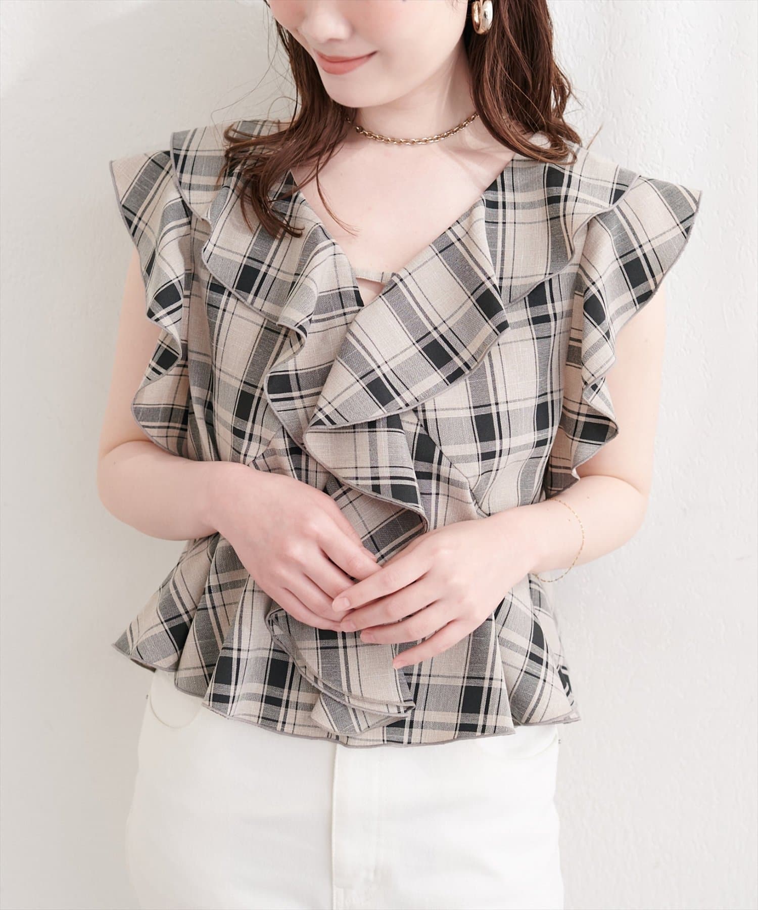 natural couture(ナチュラルクチュール) 前後2WAYチェックラッフルブラウス