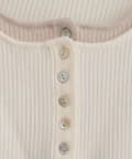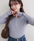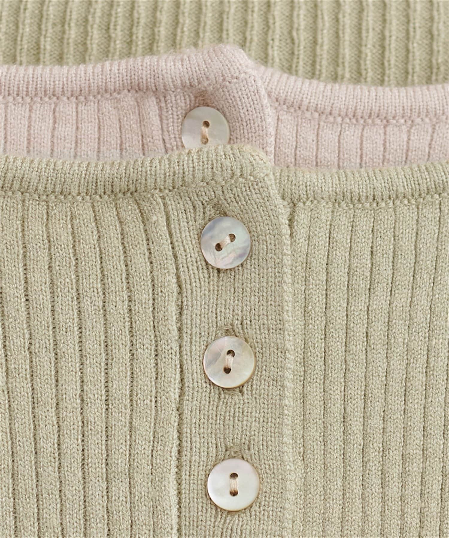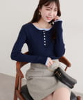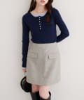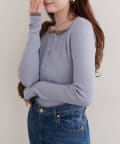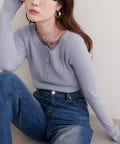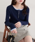 フロントのボタンデザインは、クラシカルな雰囲気をプラスするとともに、着こなしのアレンジも可能に。