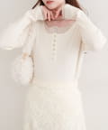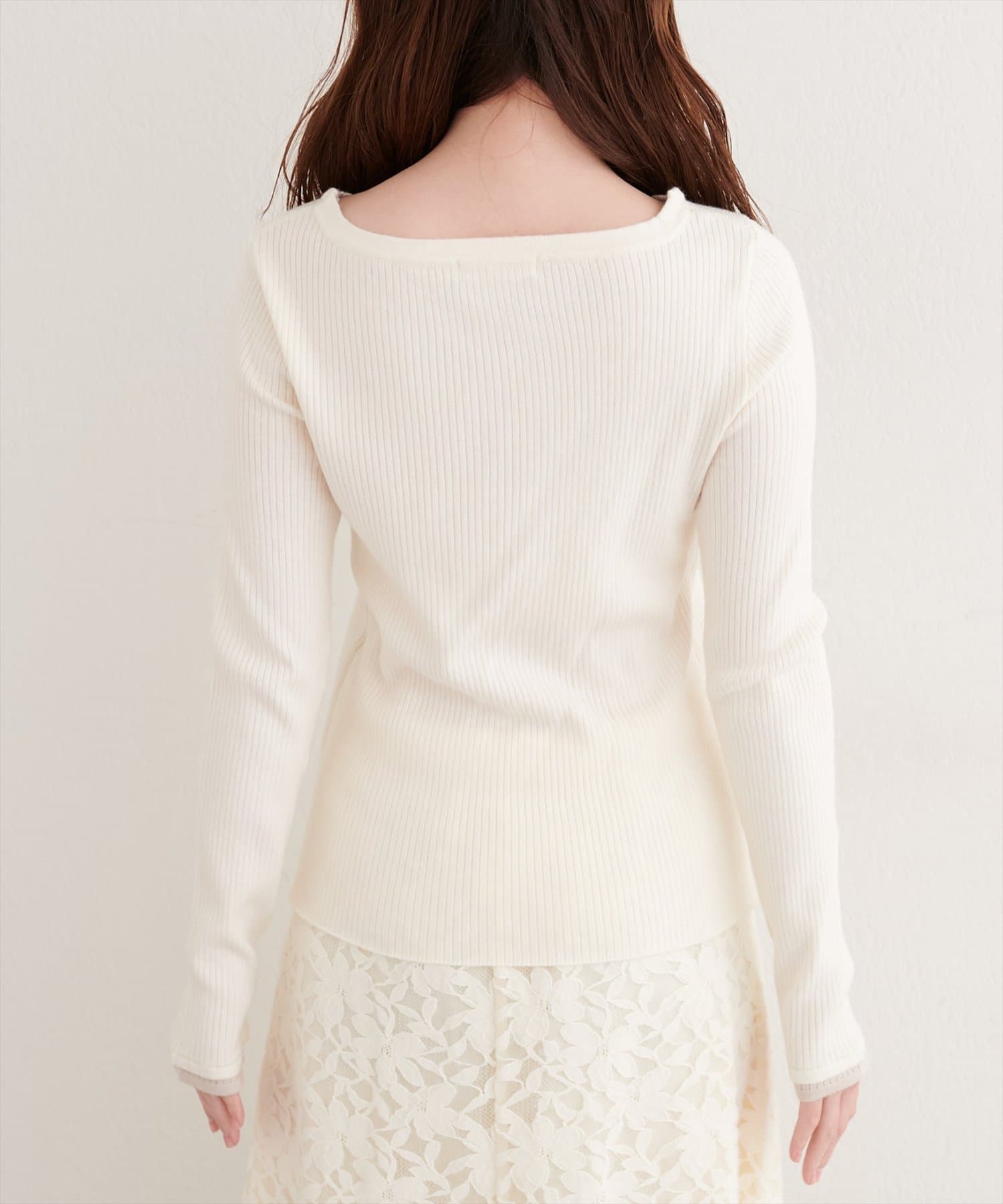 絶妙な開き具合のネックラインは、デコルテを美しく演出し、女性らしさを引き立てます。