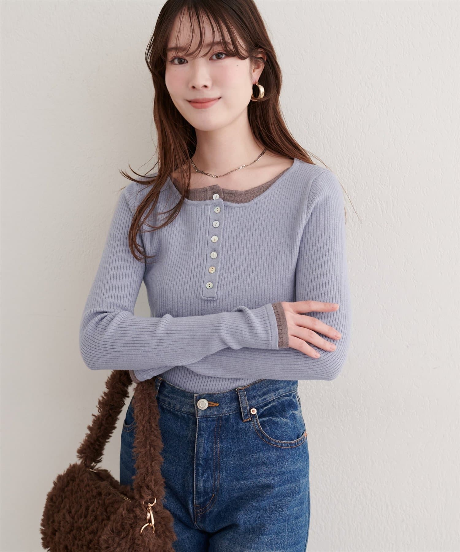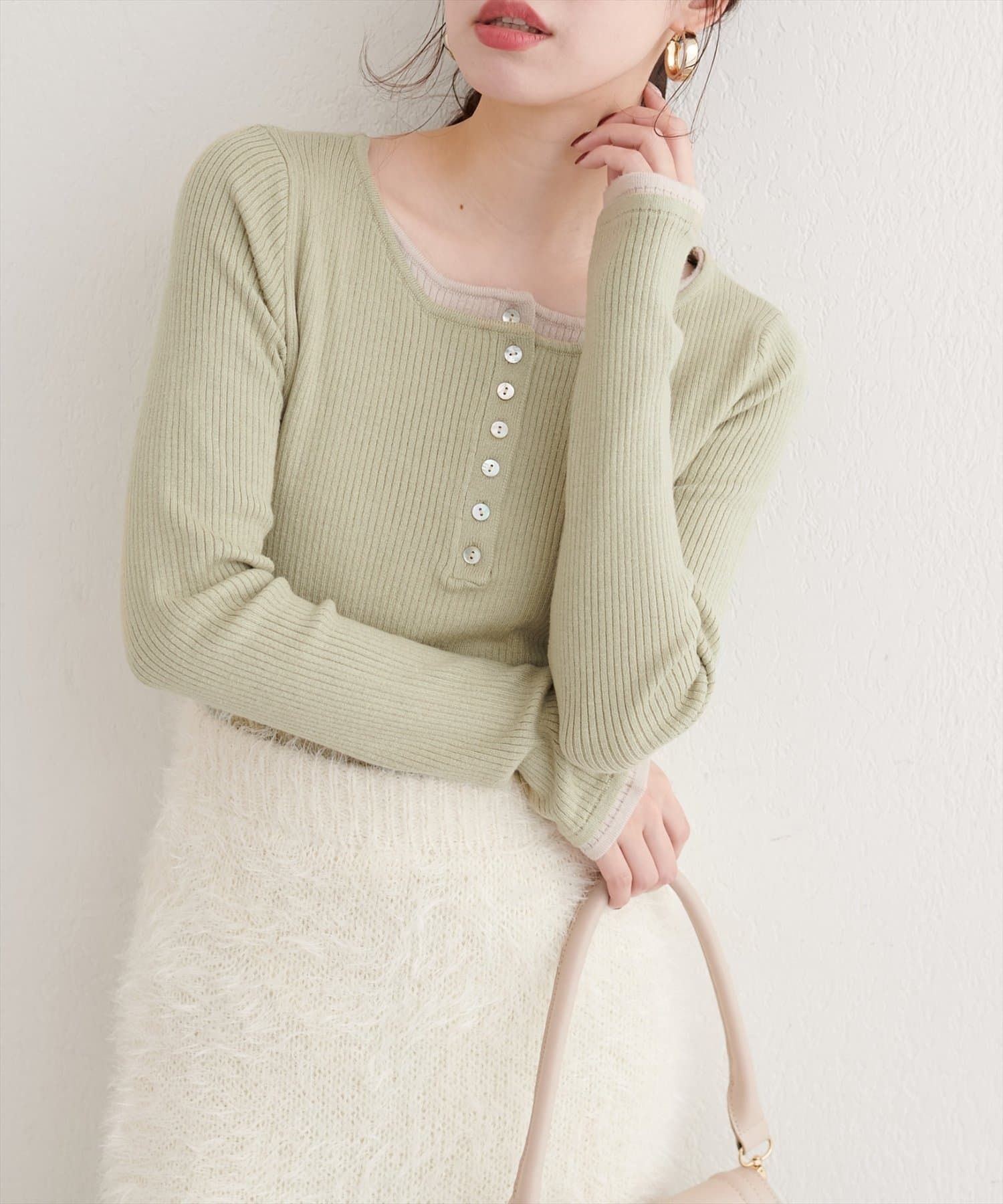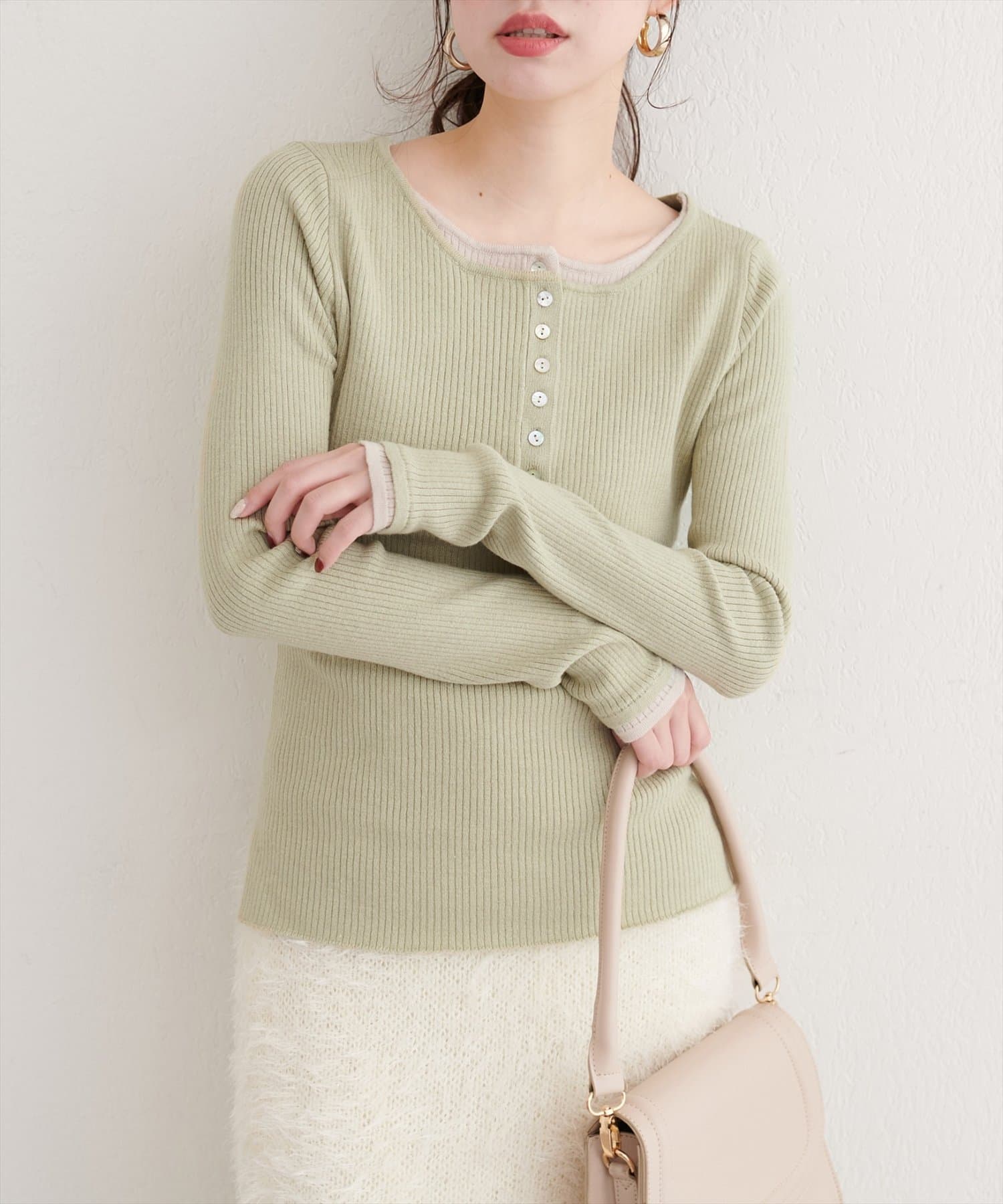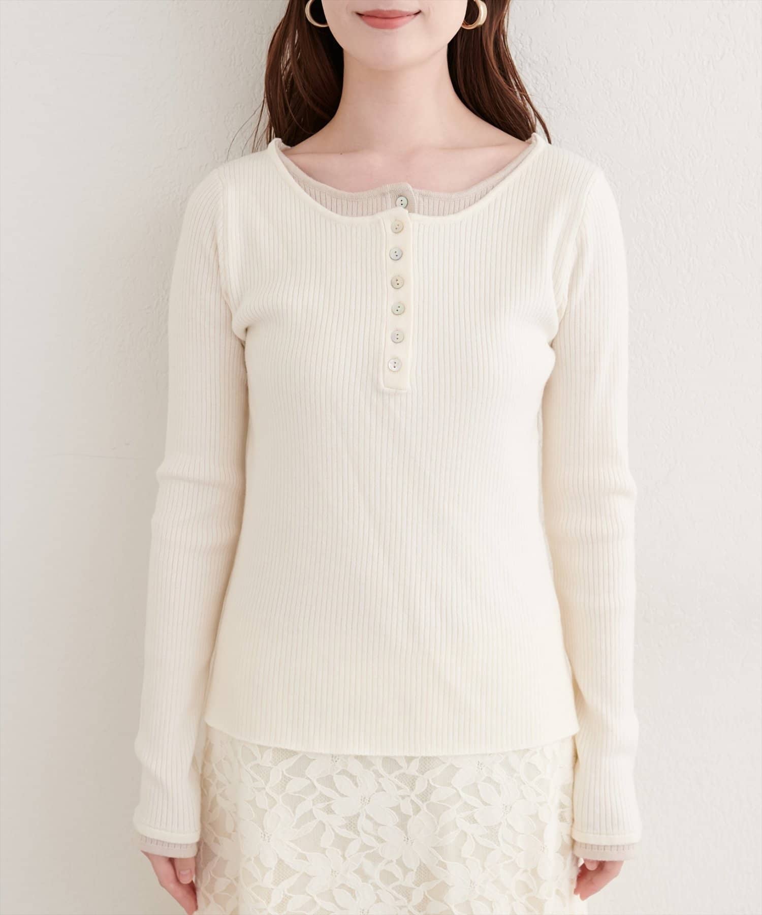 レイヤードニットプルオーバー