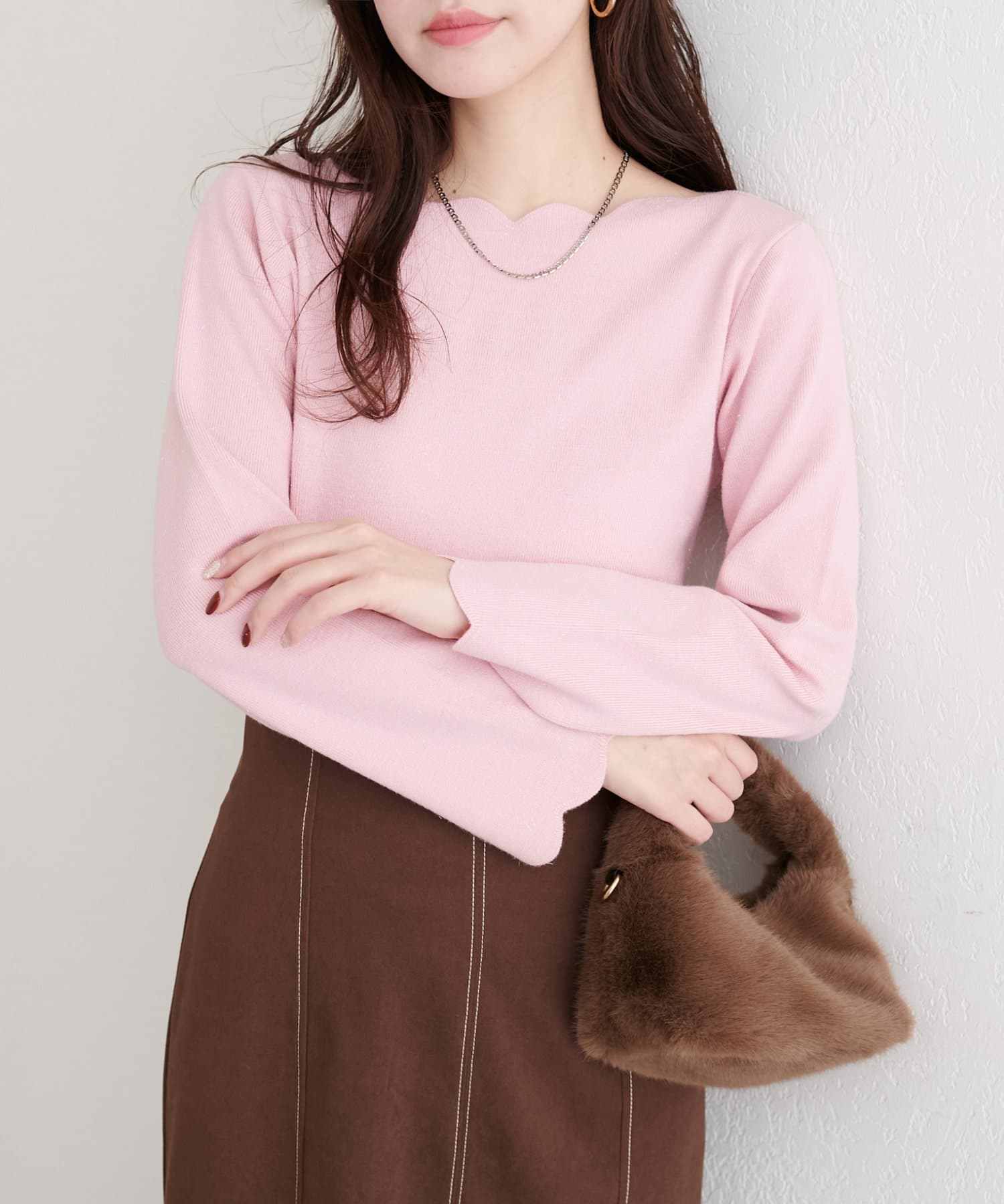 袖口のスカラップは、手元を華奢に見せ、さりげない可愛らしさを演出。