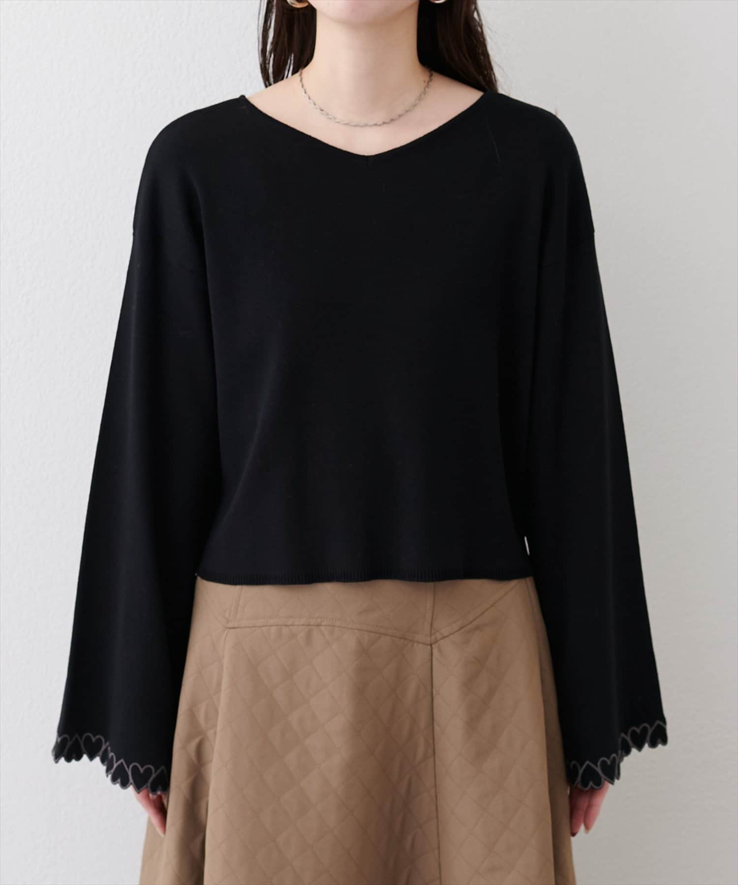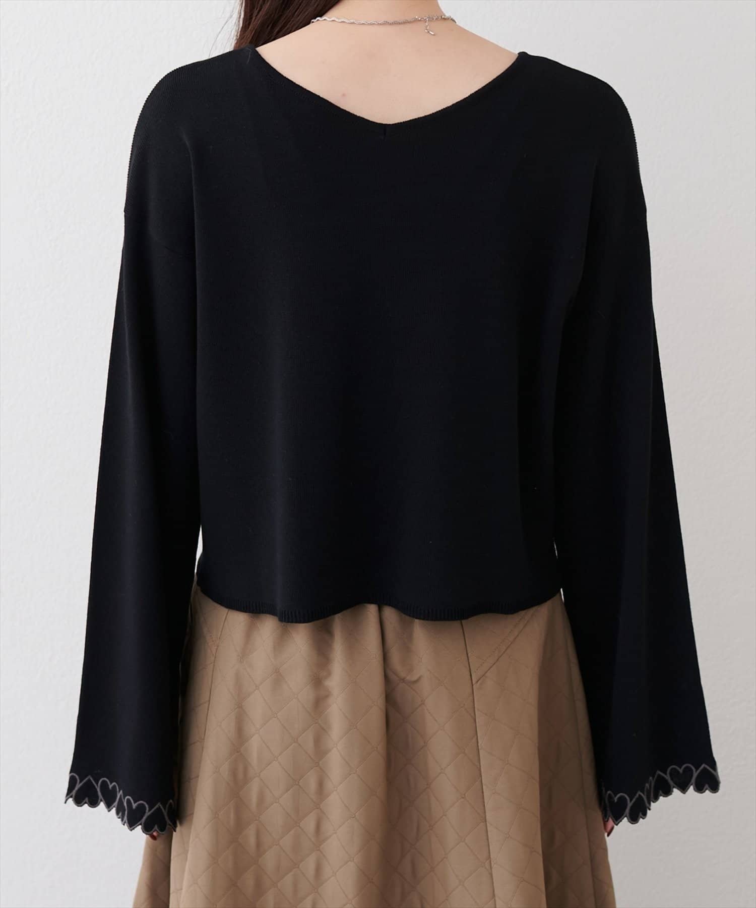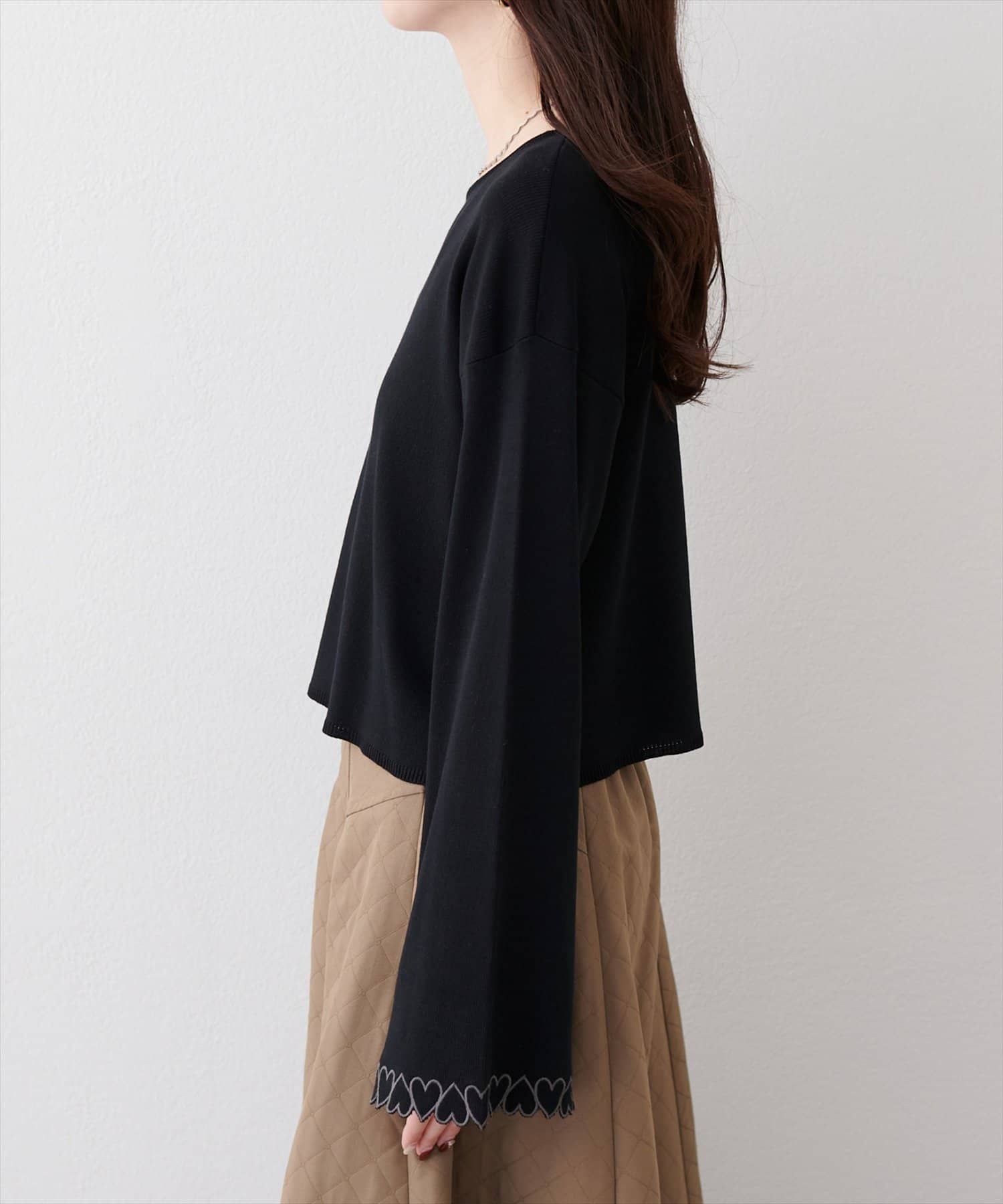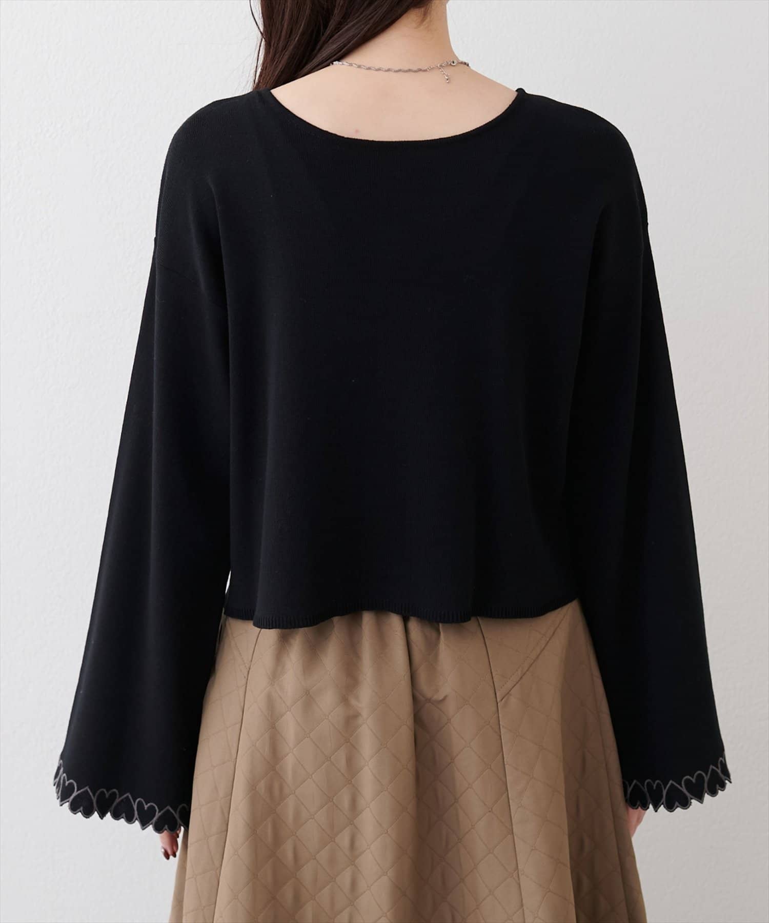 • natural couture(ナチュラルクチュール) お袖ハートショート丈ニットプルオーバー