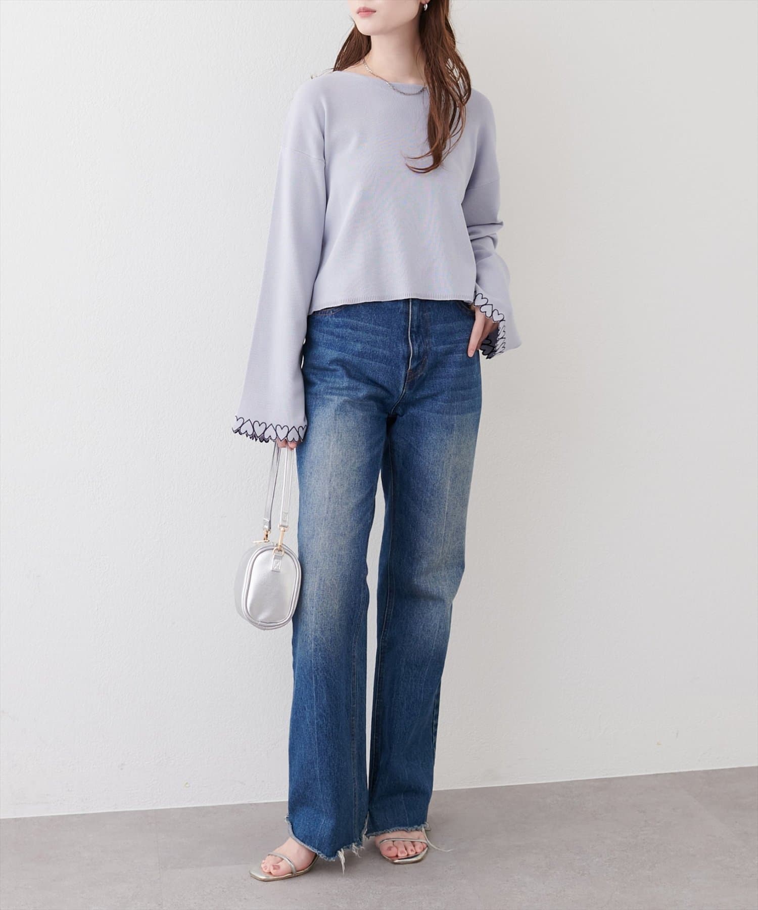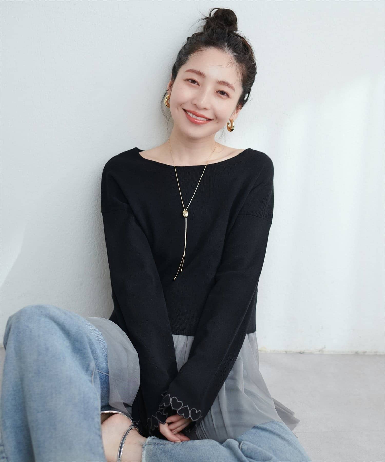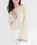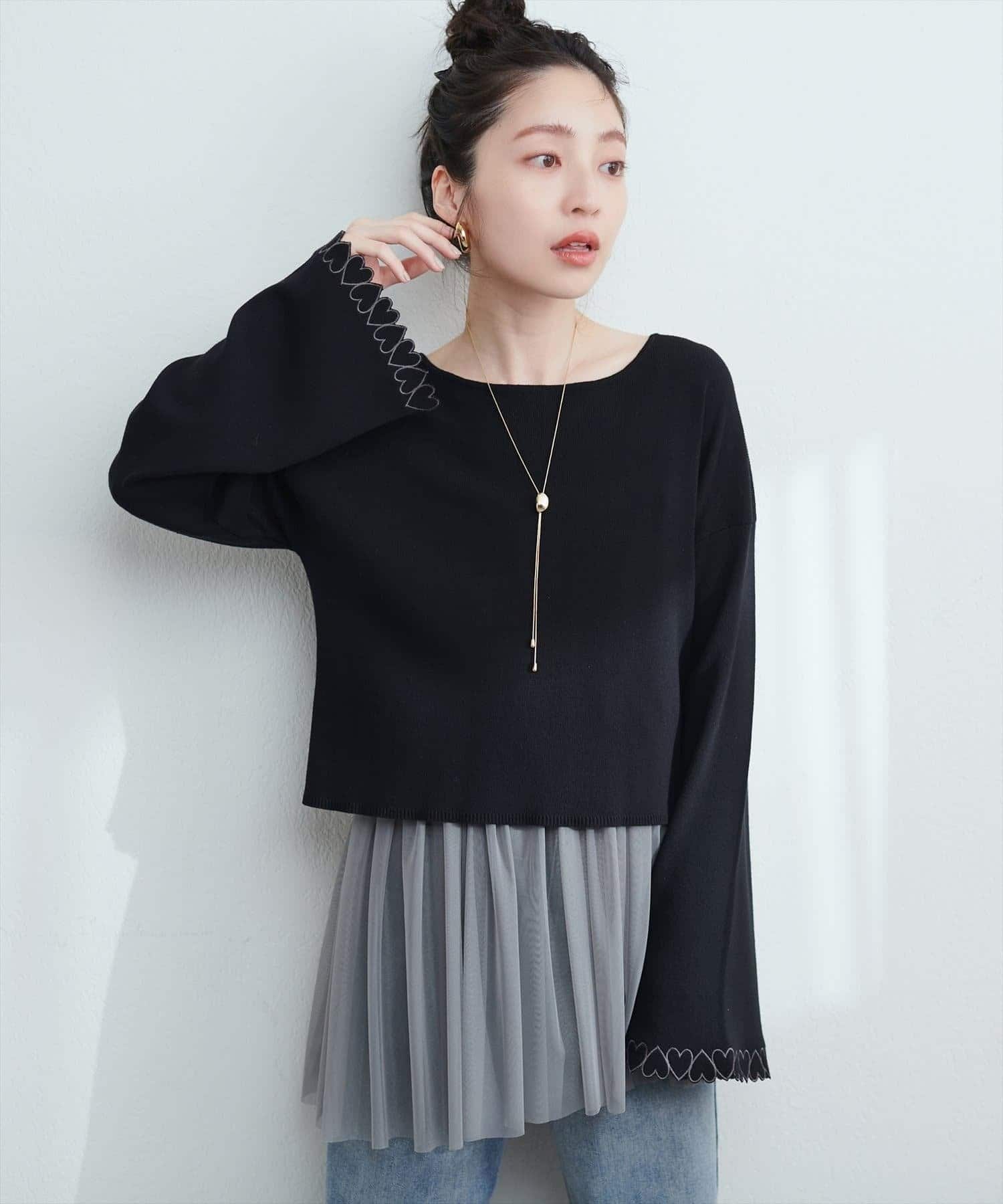 • natural couture(ナチュラルクチュール) お袖ハートショート丈ニットプルオーバー