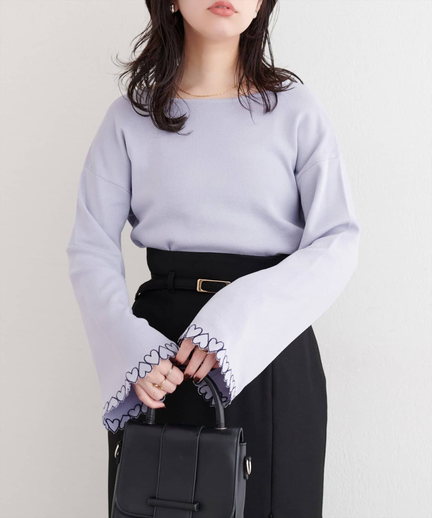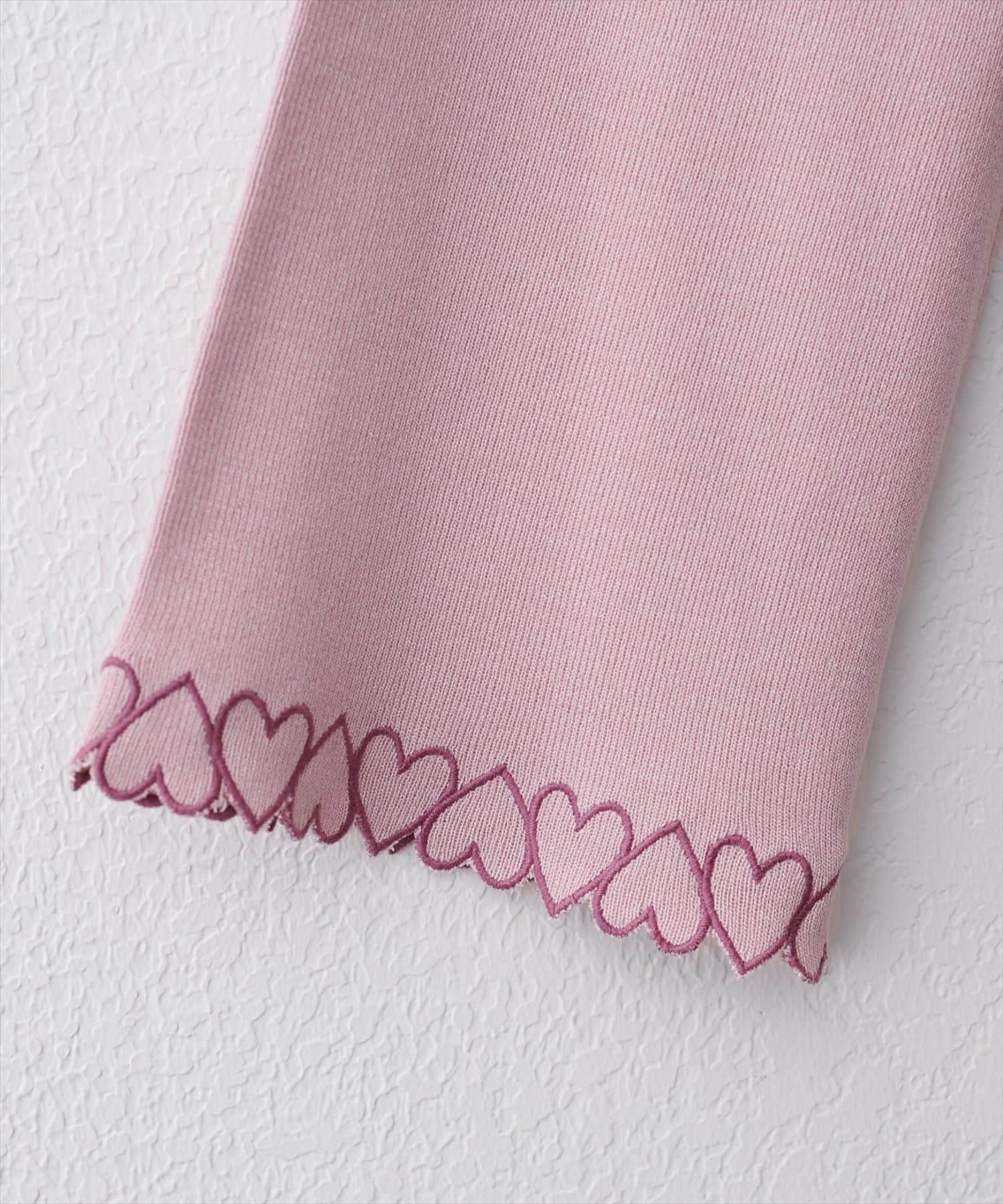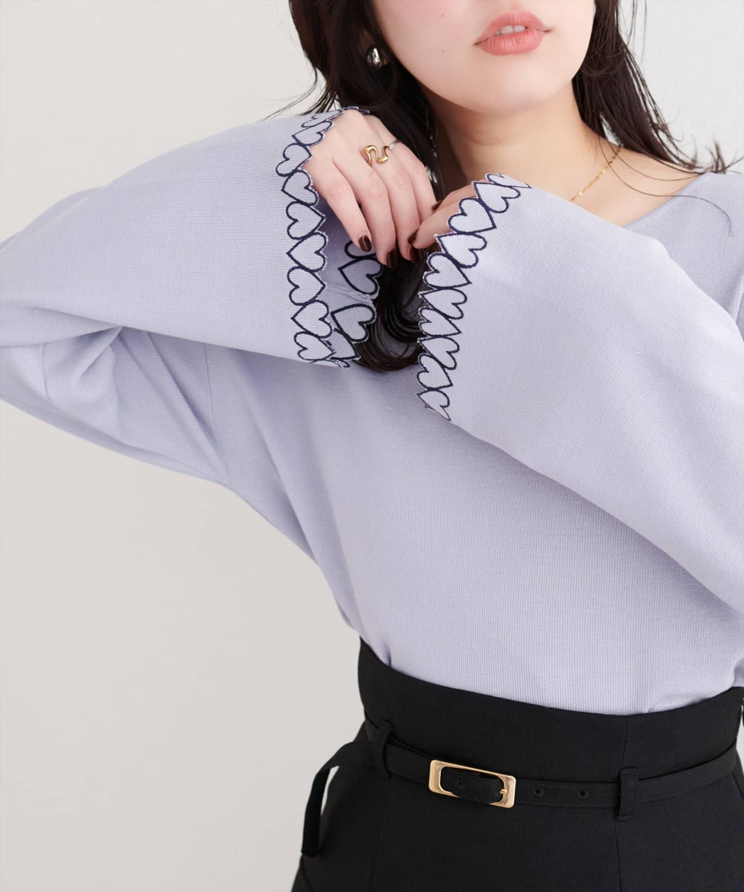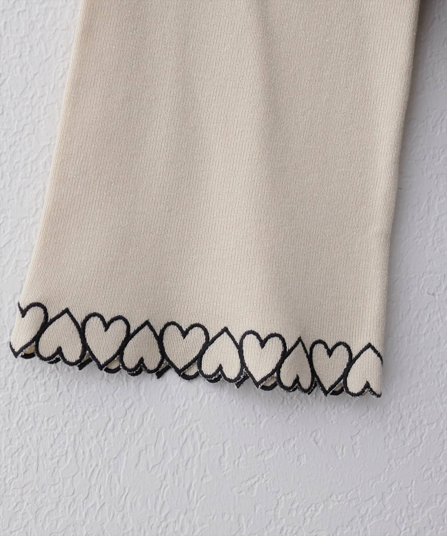 交互にハートが連なった袖口がかわいいニットプルオーバー。