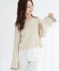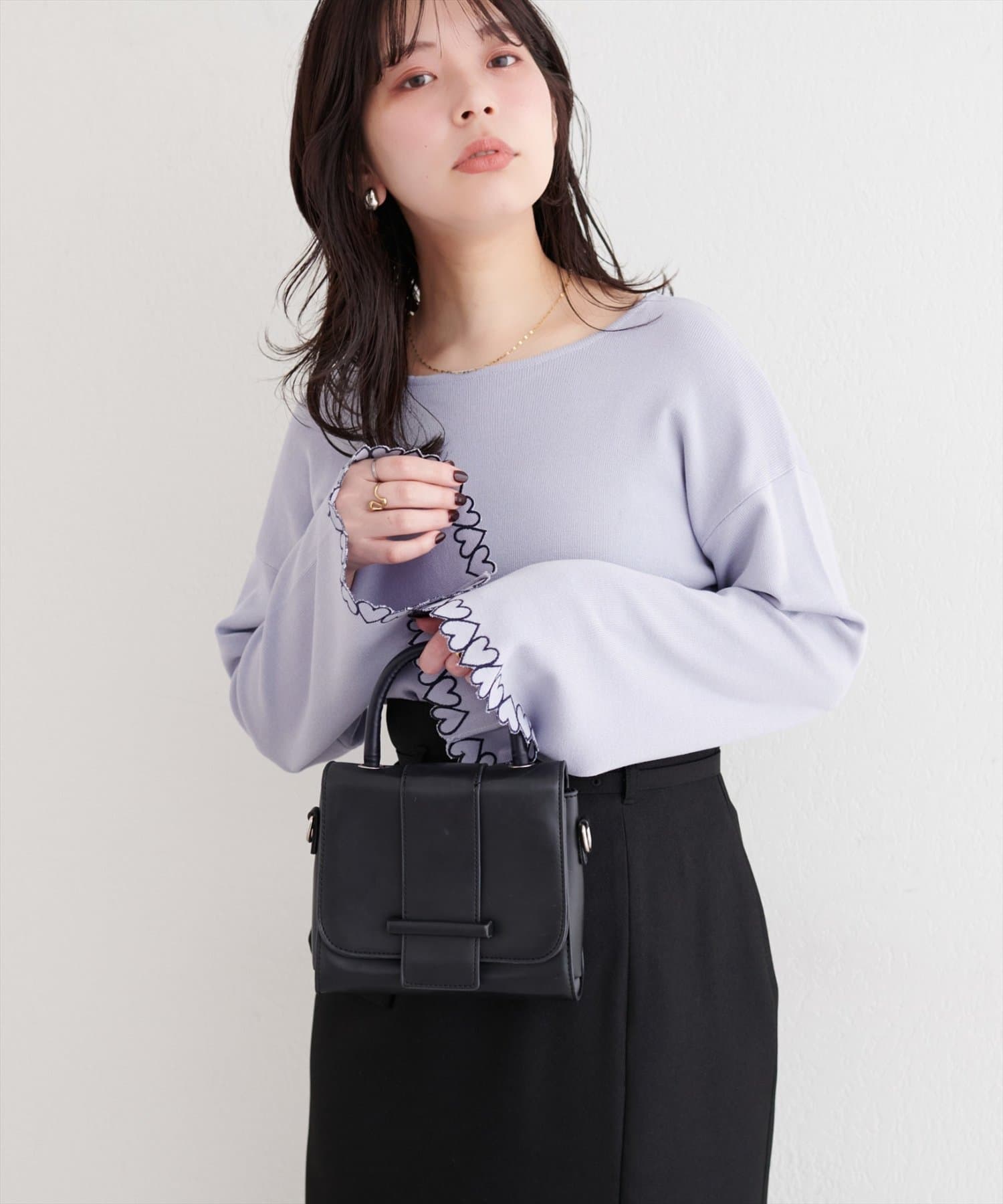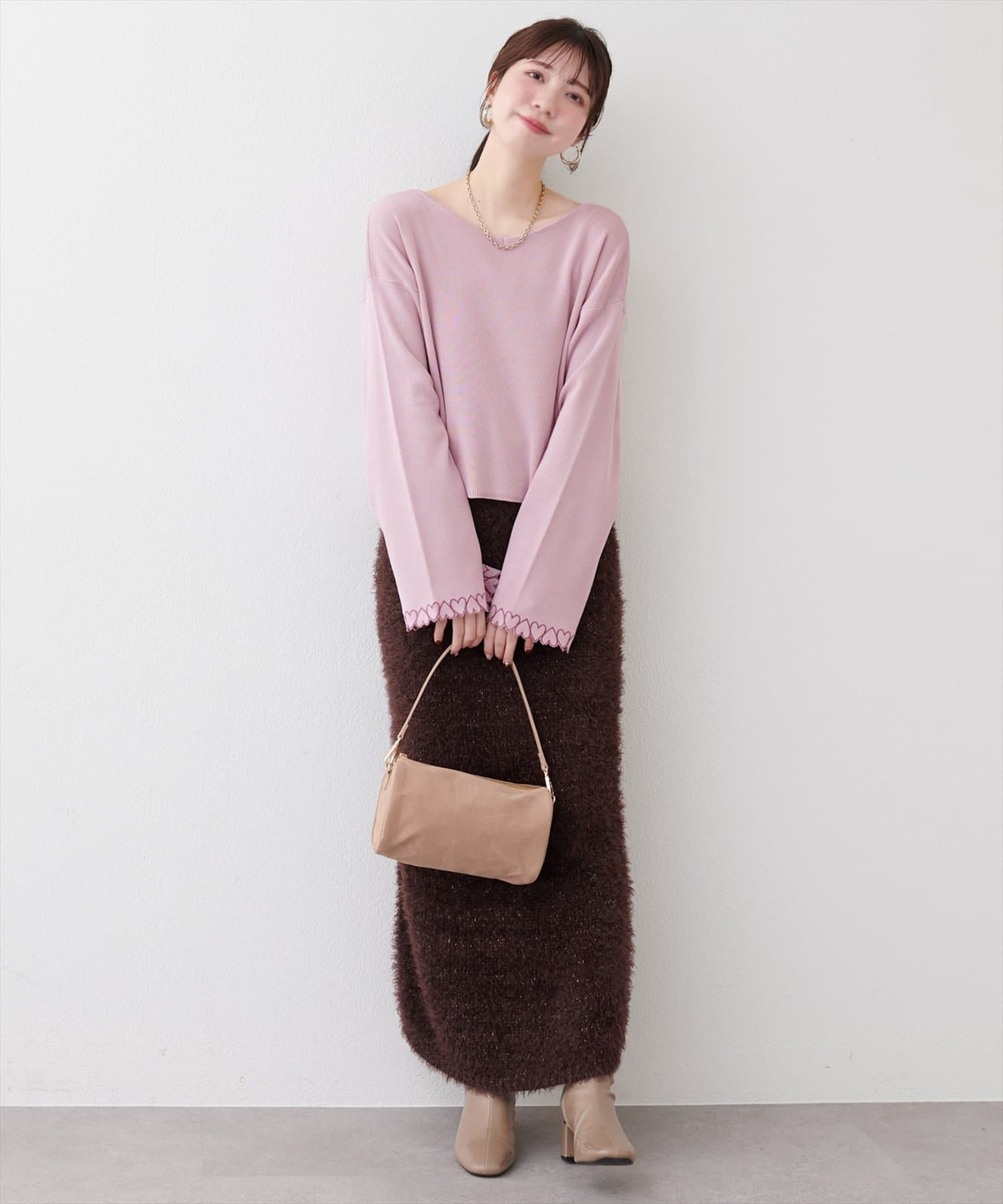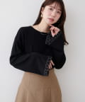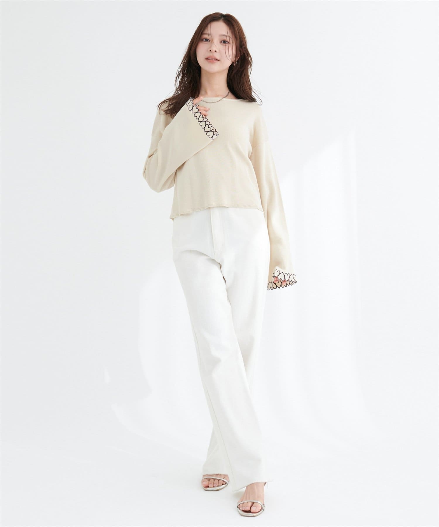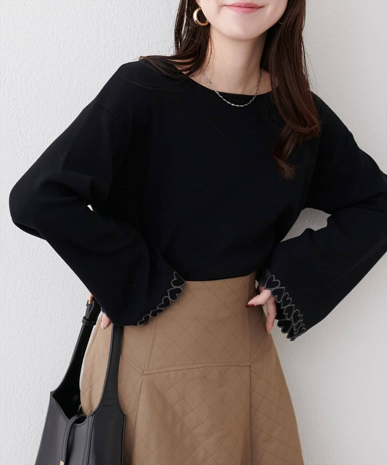 交互にハートが連なった袖口がかわいいニットプルオーバー。