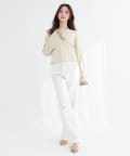 スタイルアップが叶うショート丈と、フレアスリーブでフェミニンさをプラス。