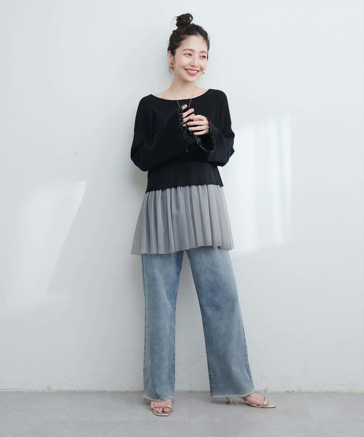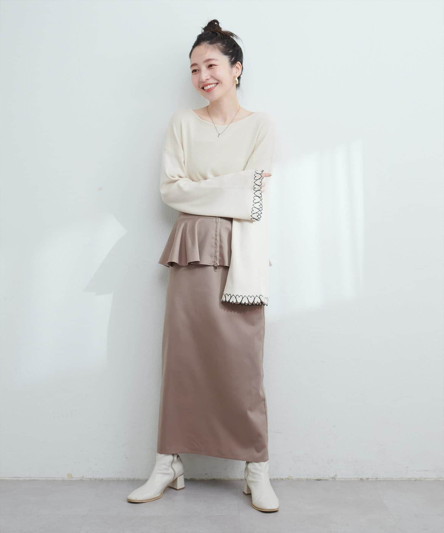 ボトム選ばずタイトスカートやマーメイドスカート、キャミワンピースを合わせてフェミニンに着こなしたり、