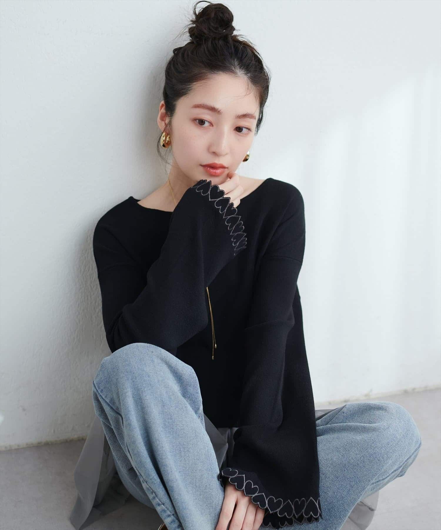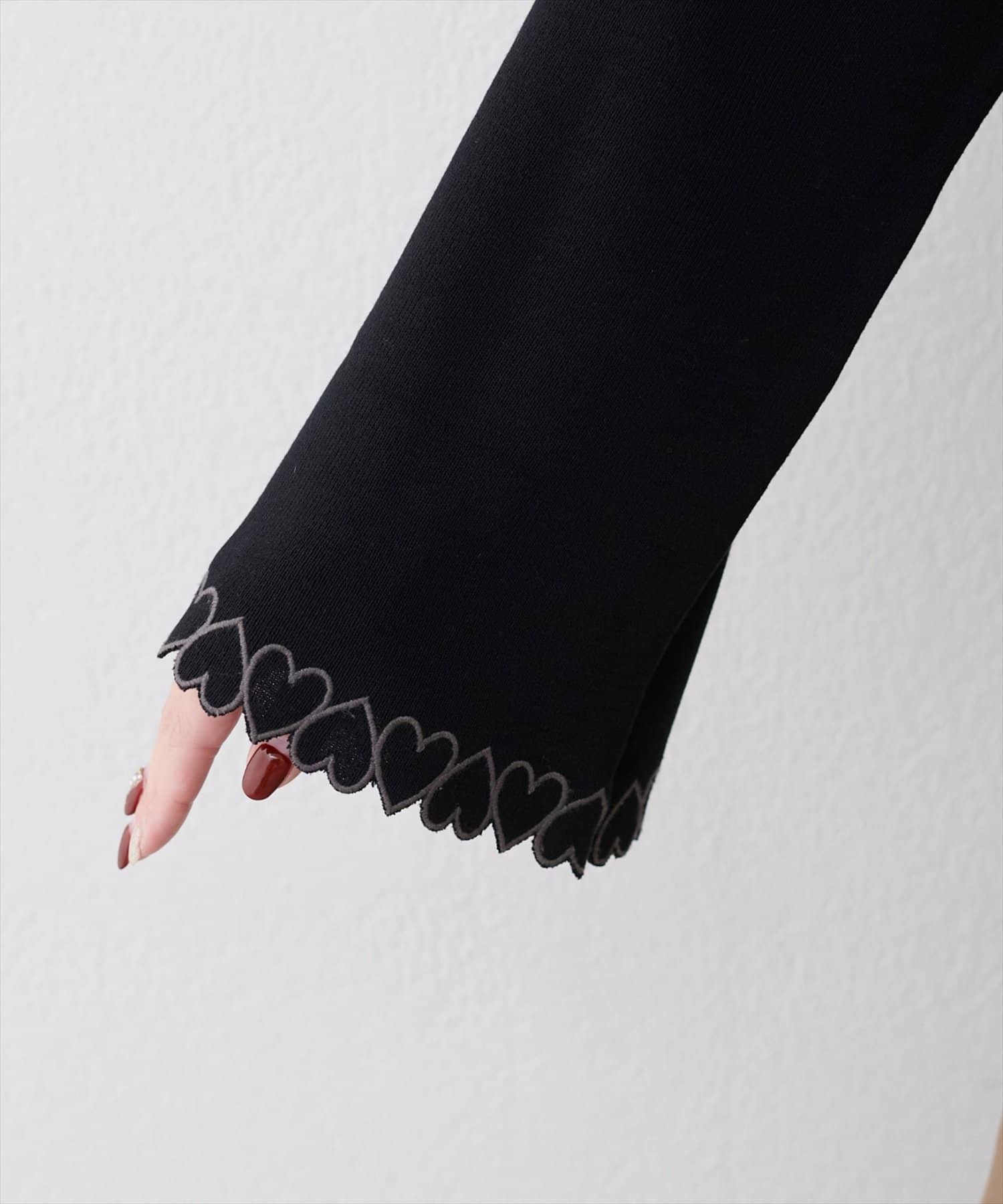 袖のハート刺繍でさりげなくオシャレで周りの目を引くアイテム。