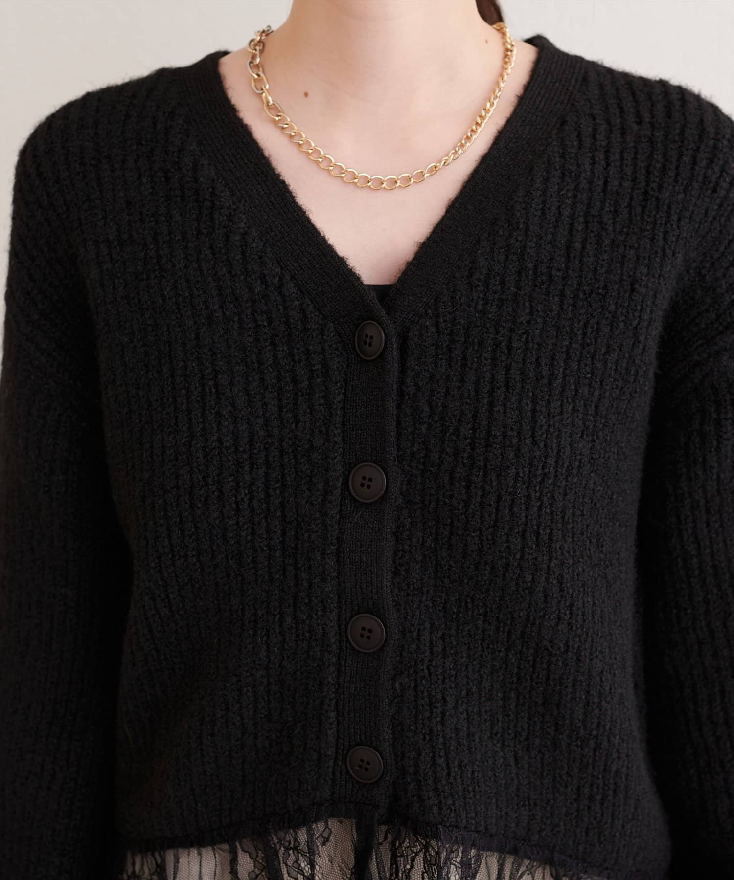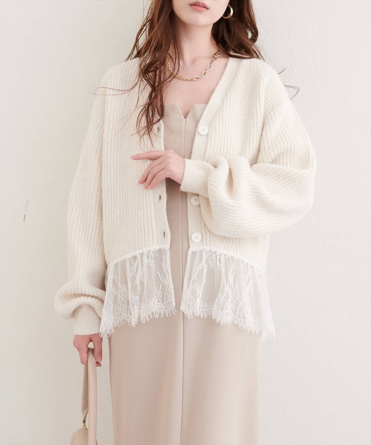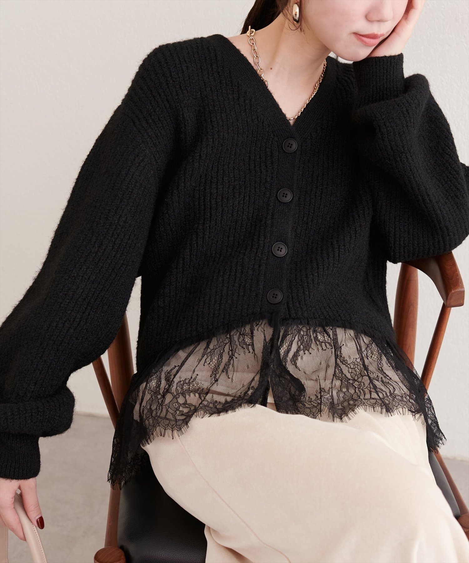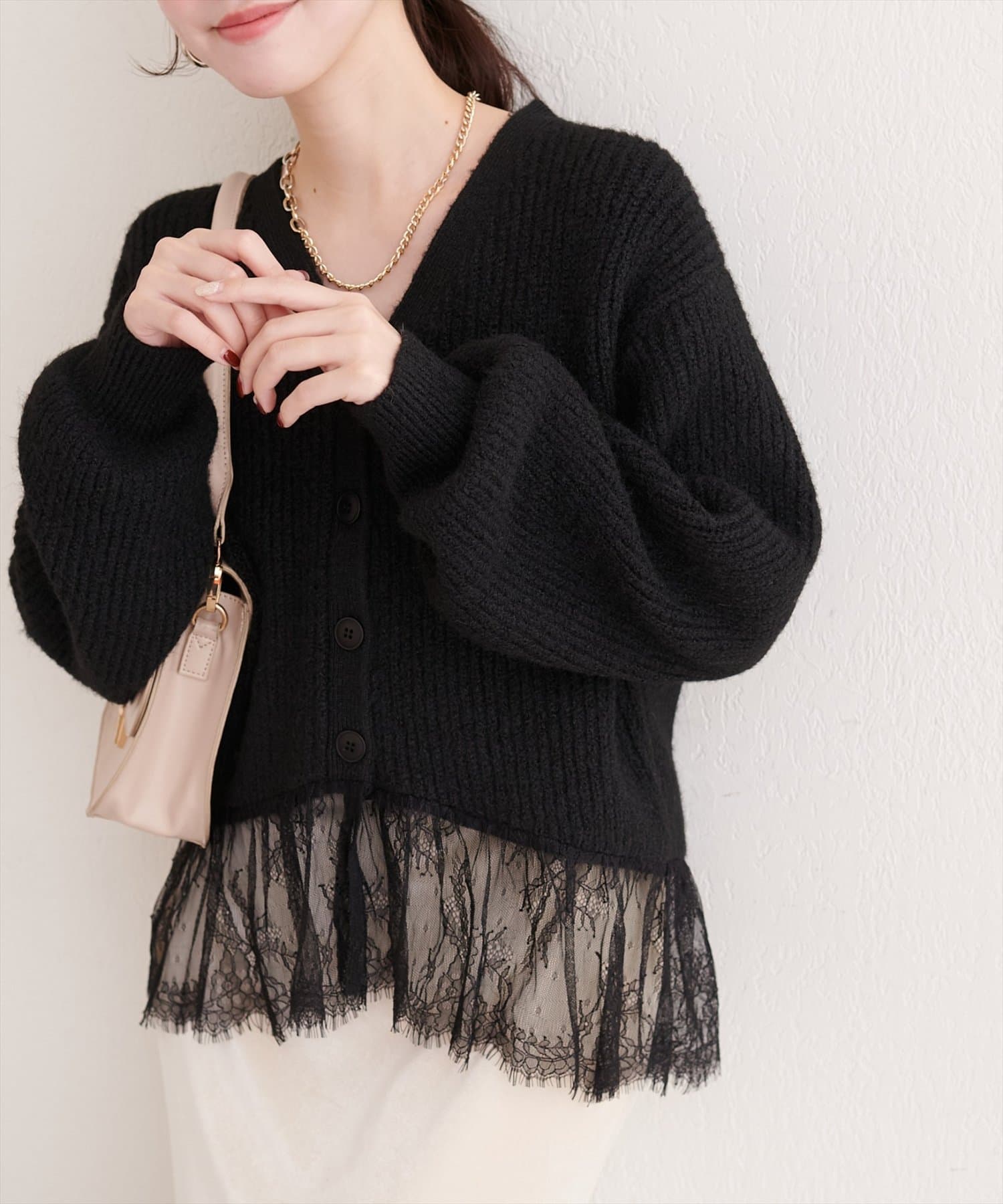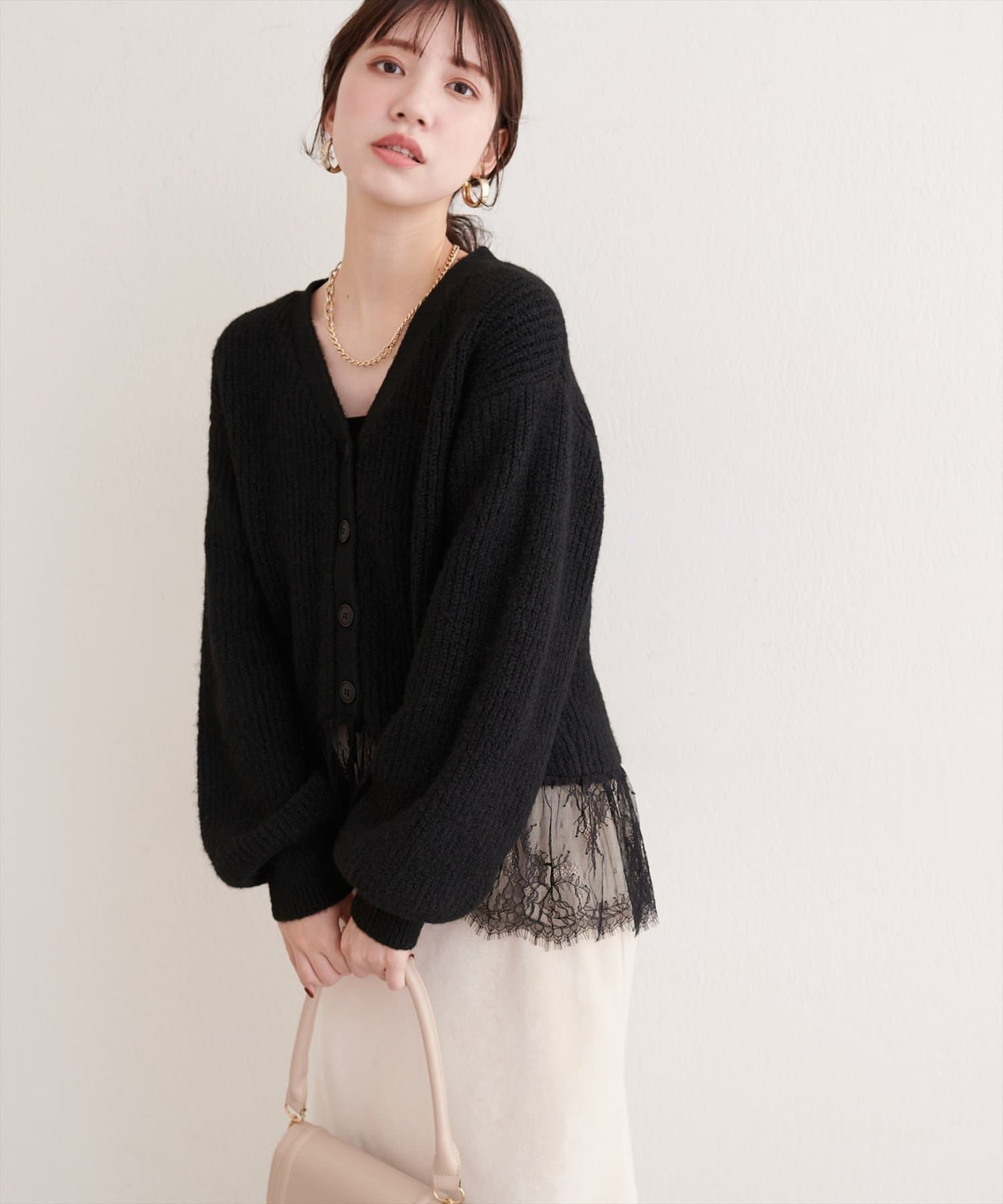 ボタンを留めてプルオーバーとして着こなせば、レースの甘さが際立ち、よりフェミニンな印象に。