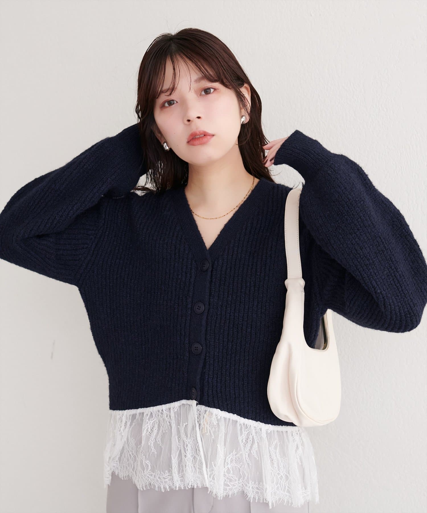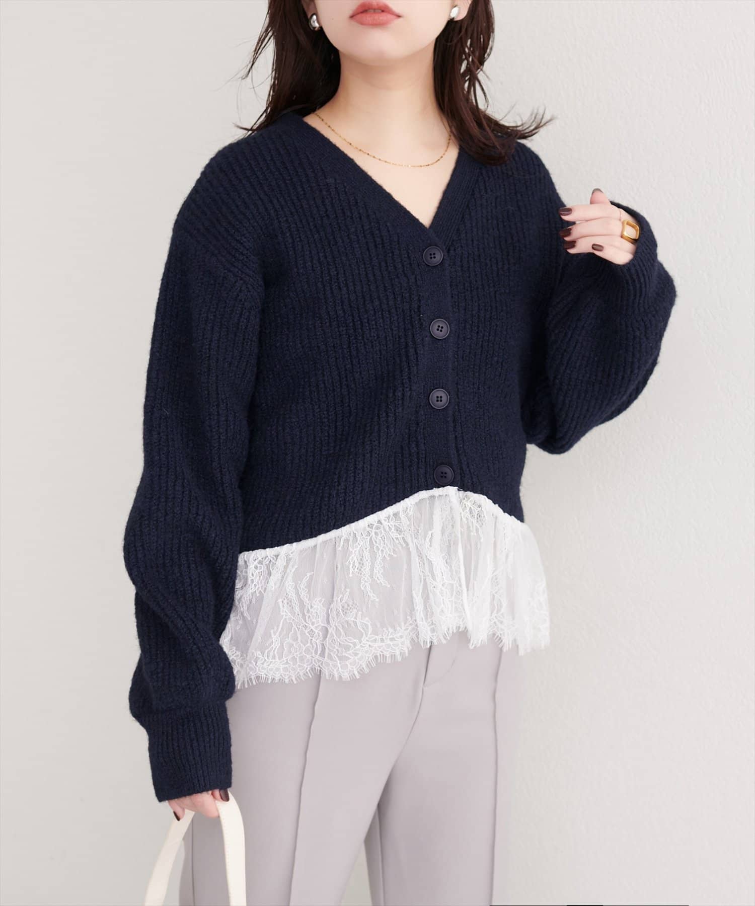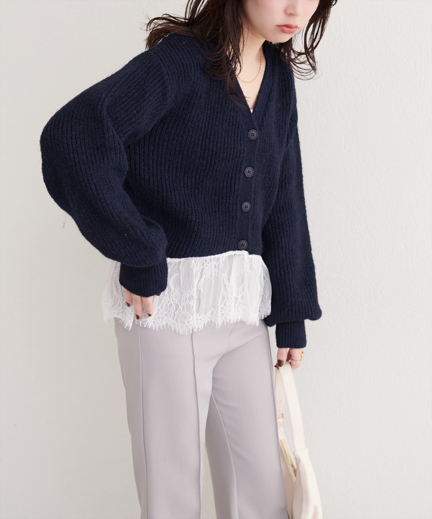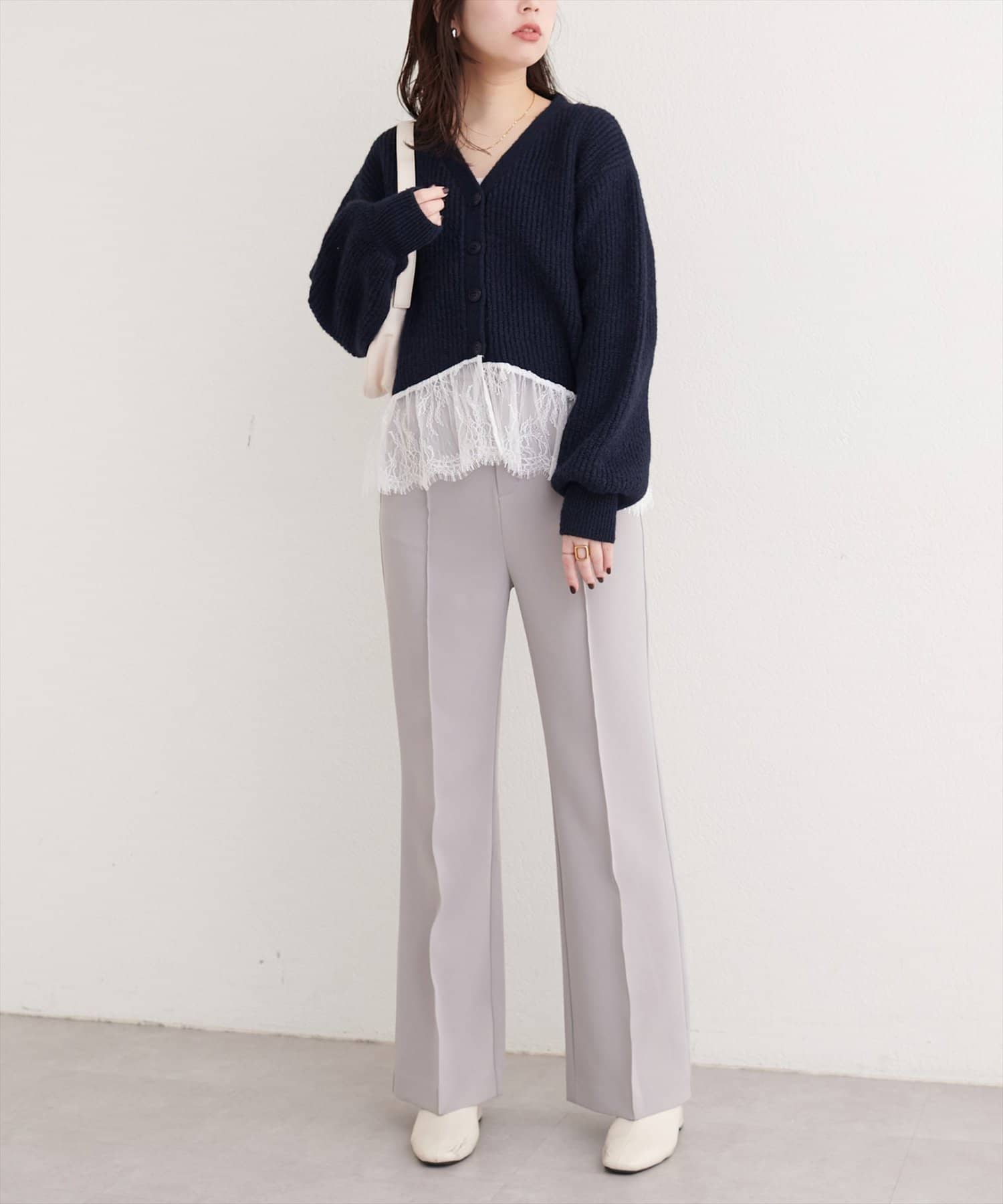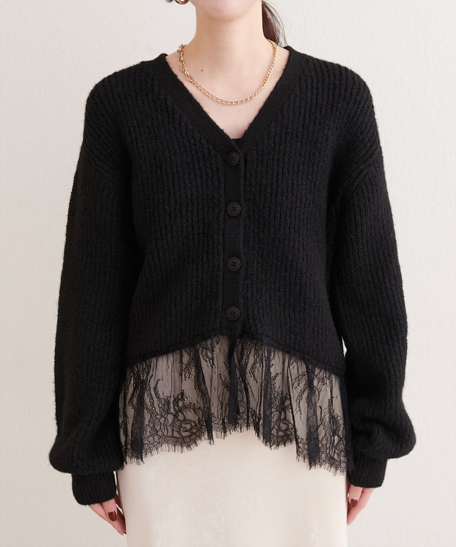 ボタンを留めてプルオーバーとして着こなせば、レースの甘さが際立ち、よりフェミニンな印象に。