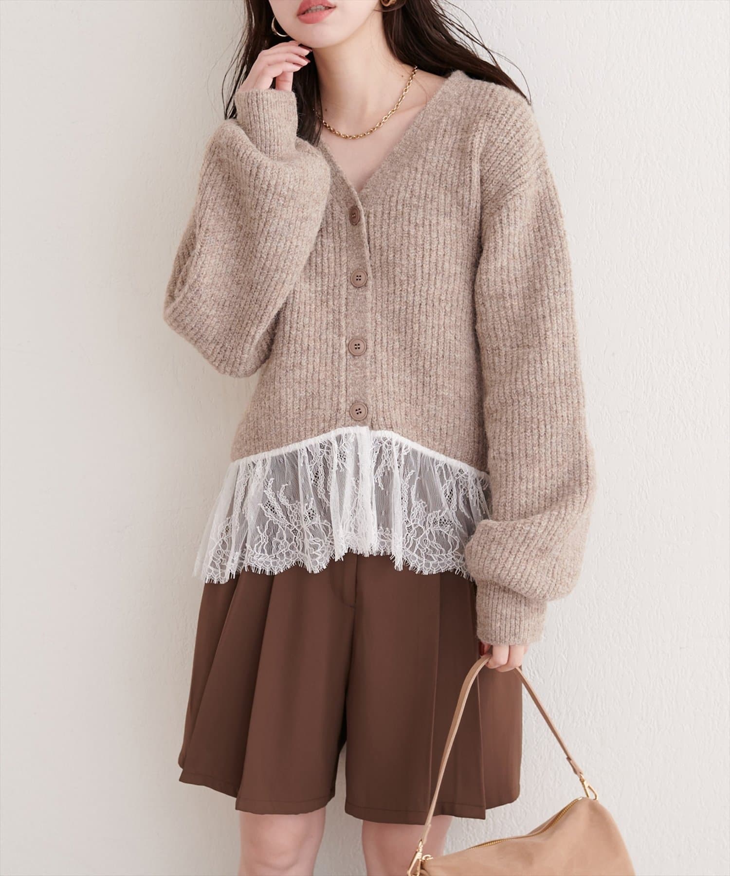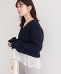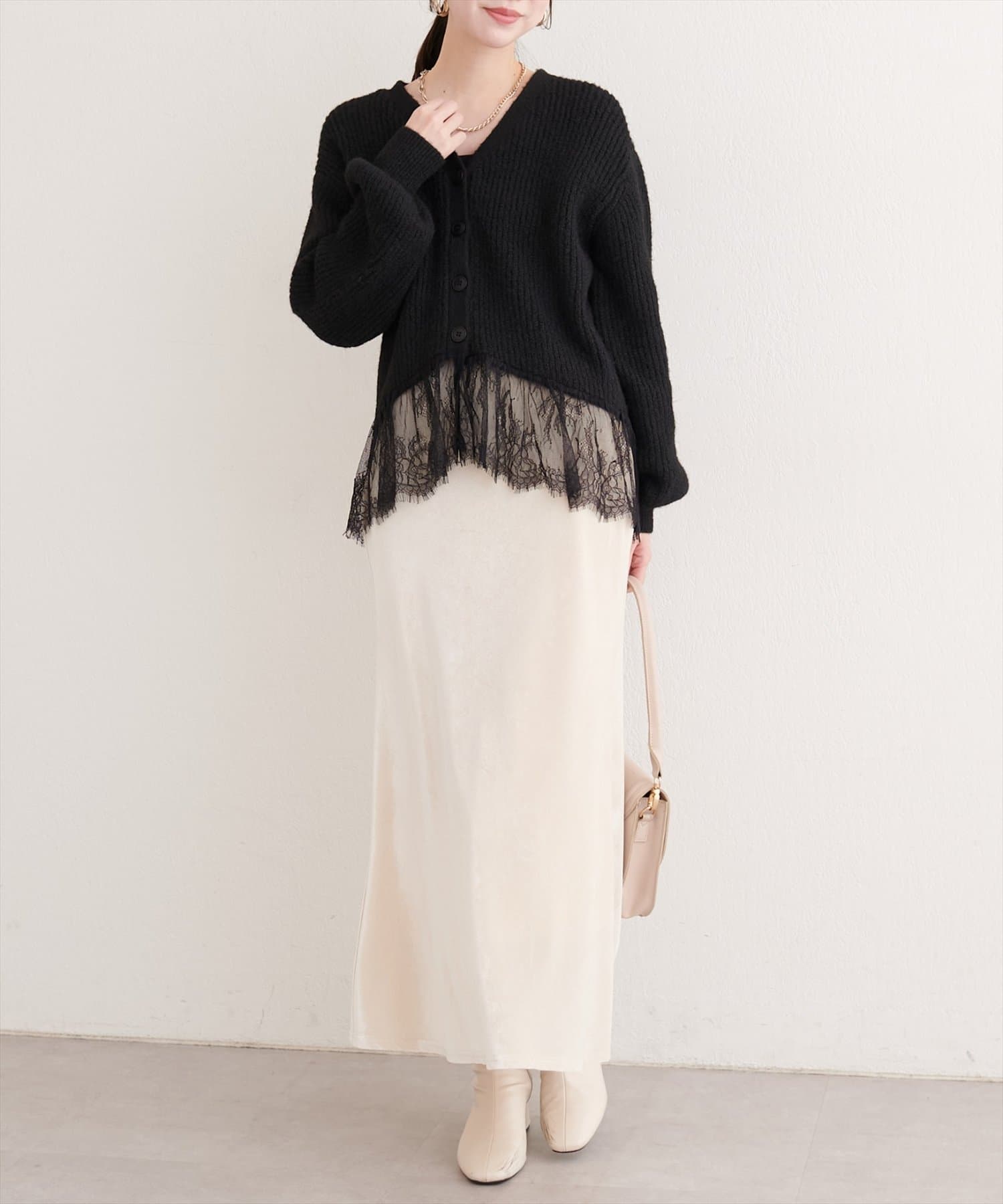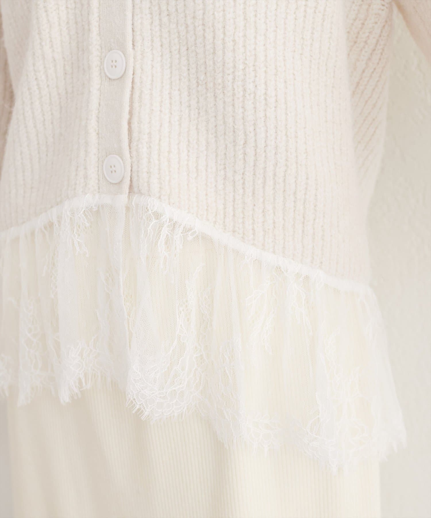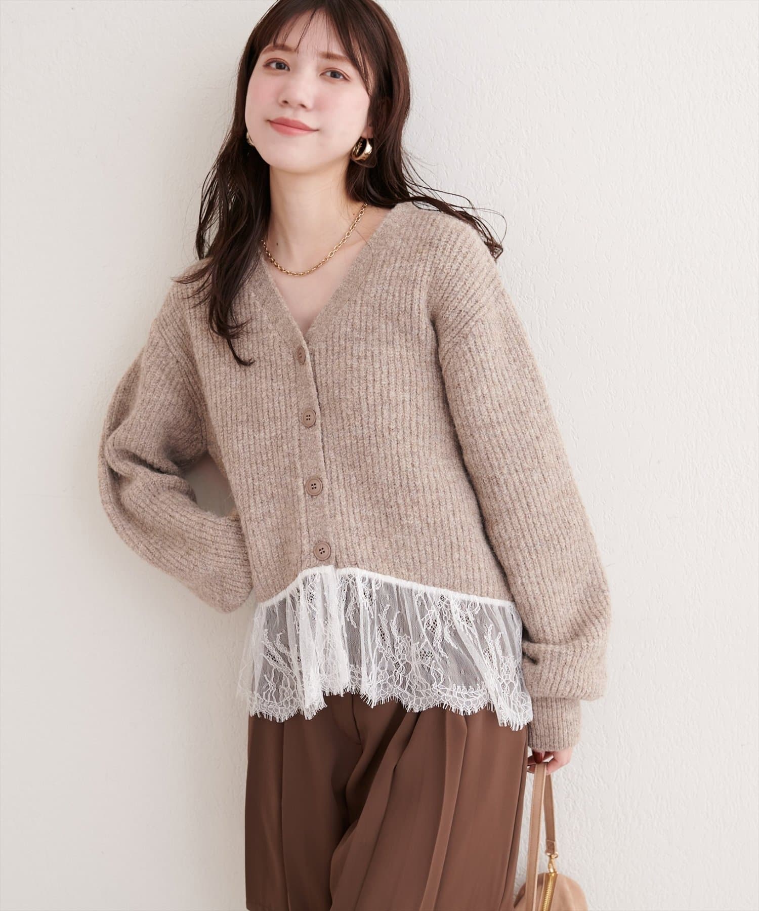 ボタンを留めてプルオーバーとして着こなせば、レースの甘さが際立ち、よりフェミニンな印象に。