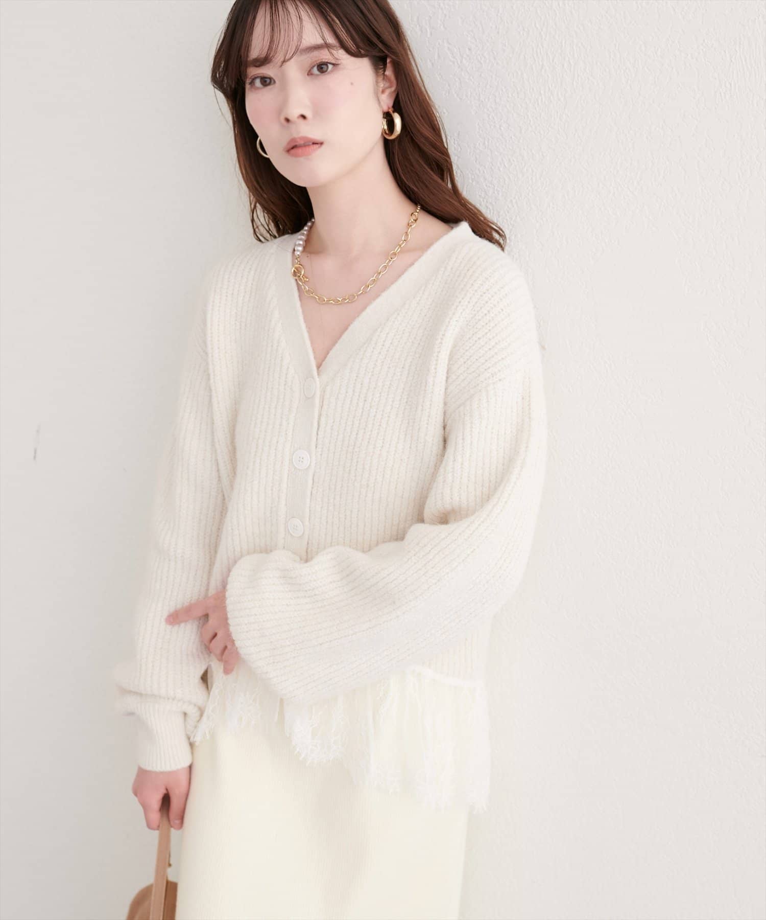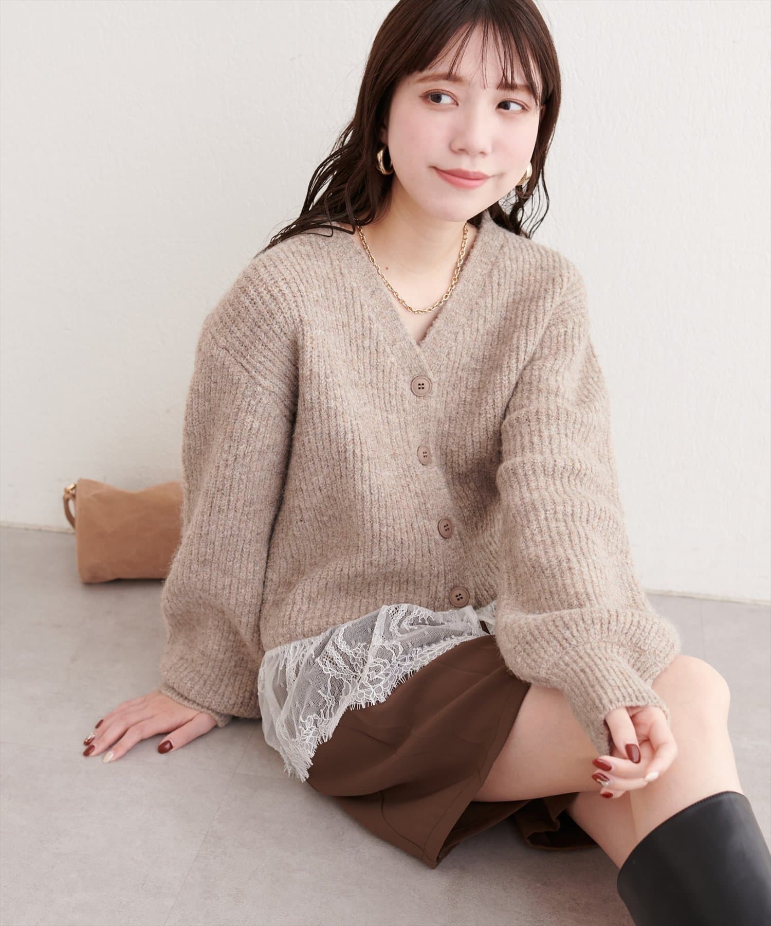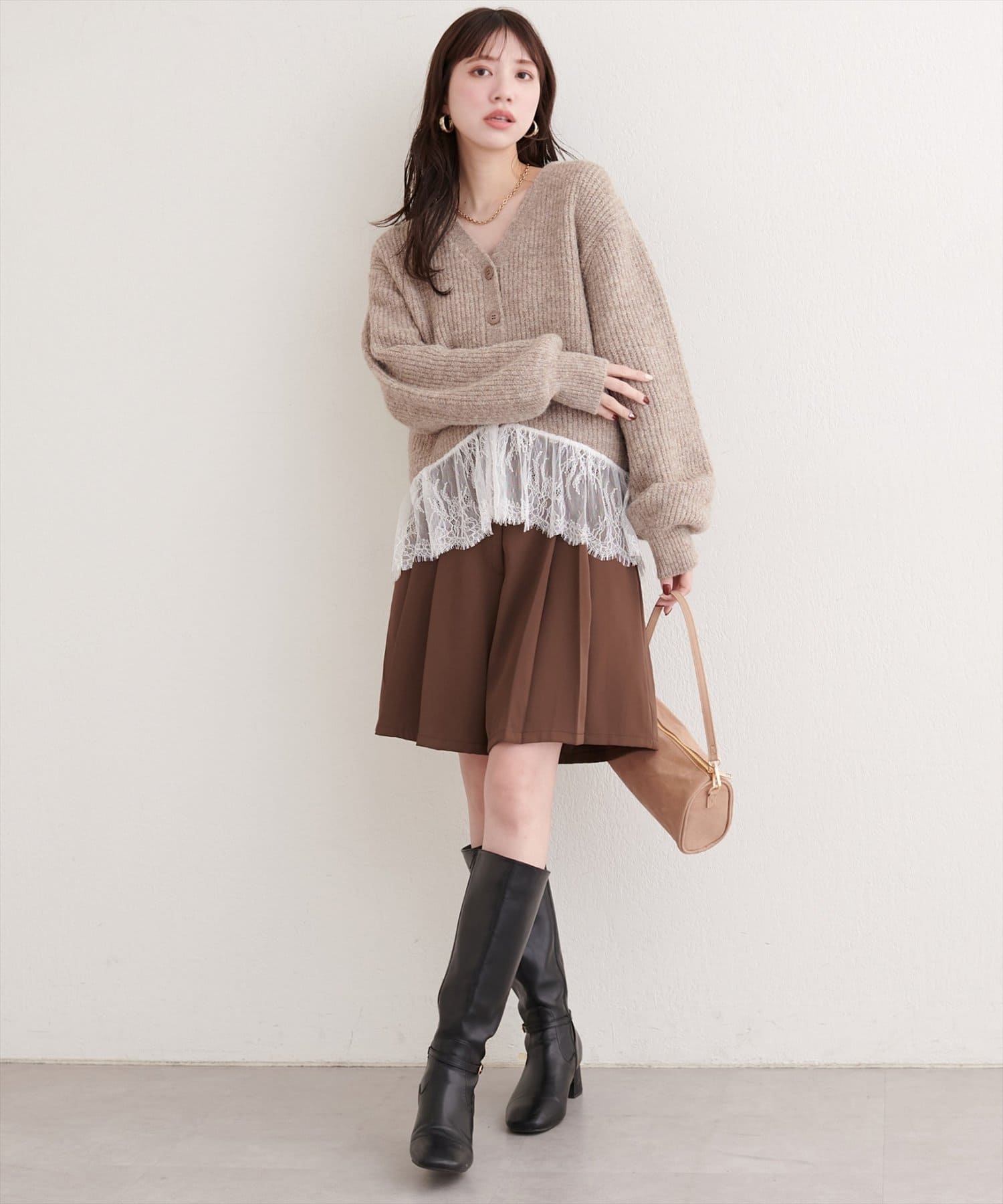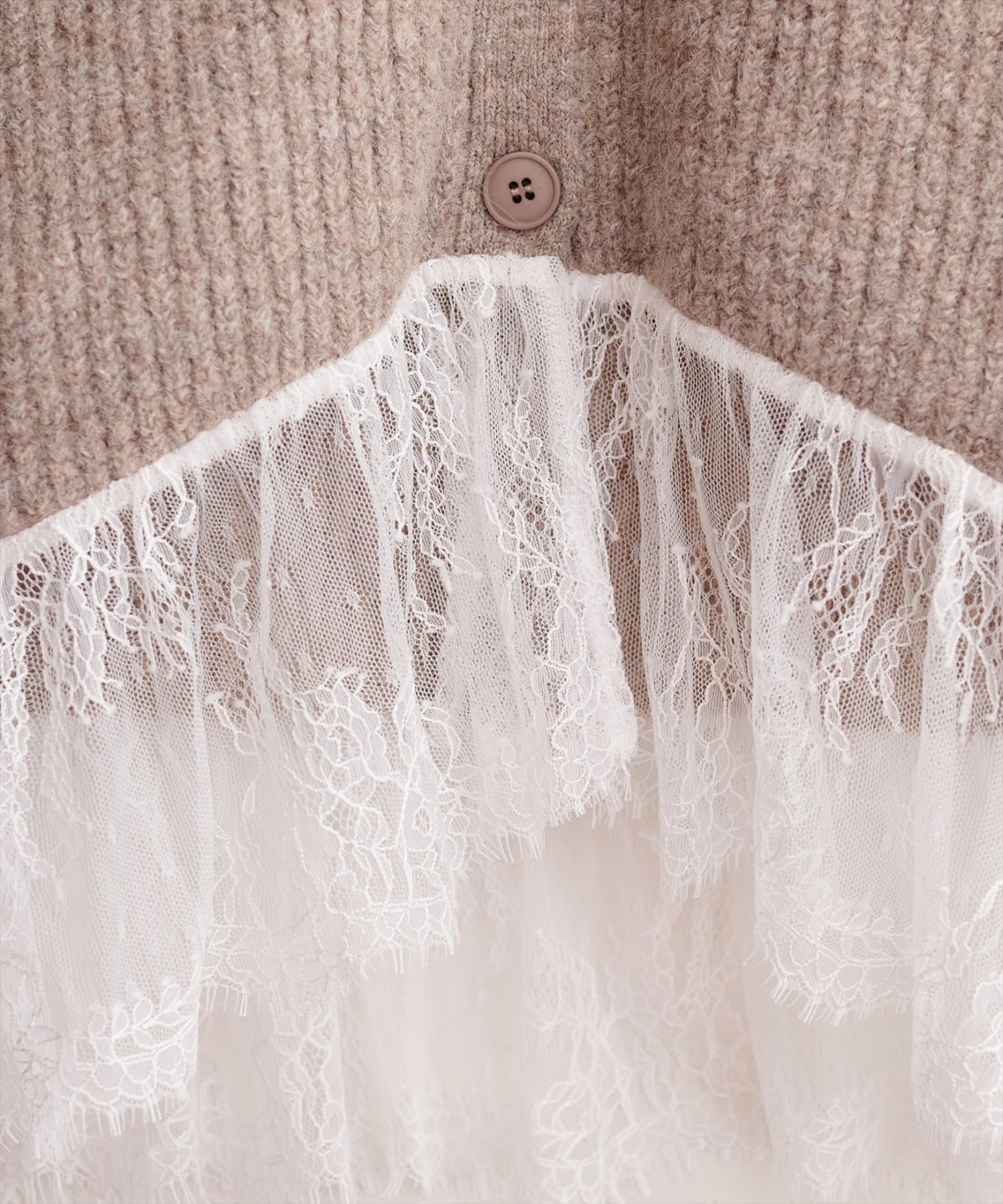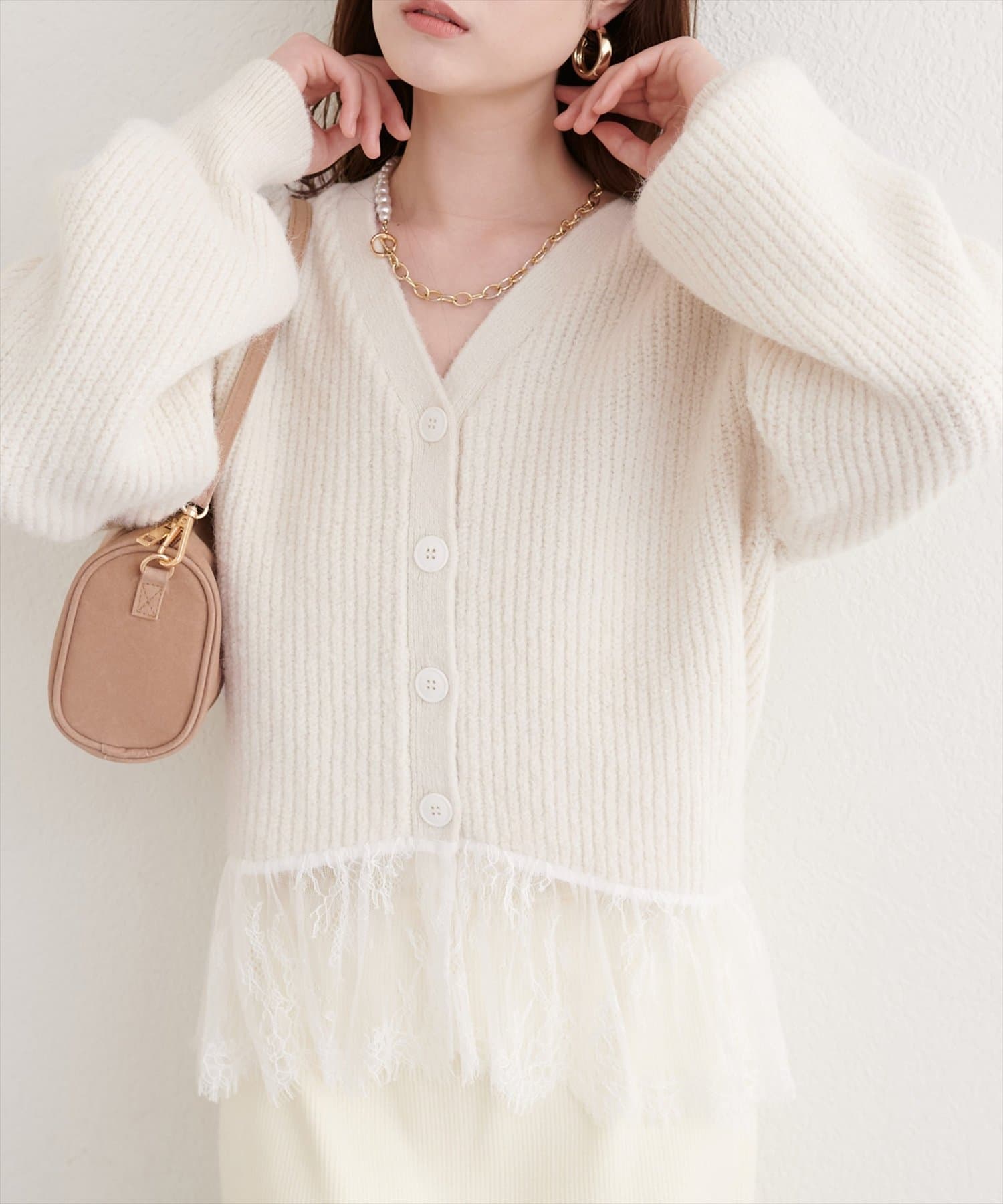 ボタンを留めてプルオーバーとして着こなせば、レースの甘さが際立ち、よりフェミニンな印象に。