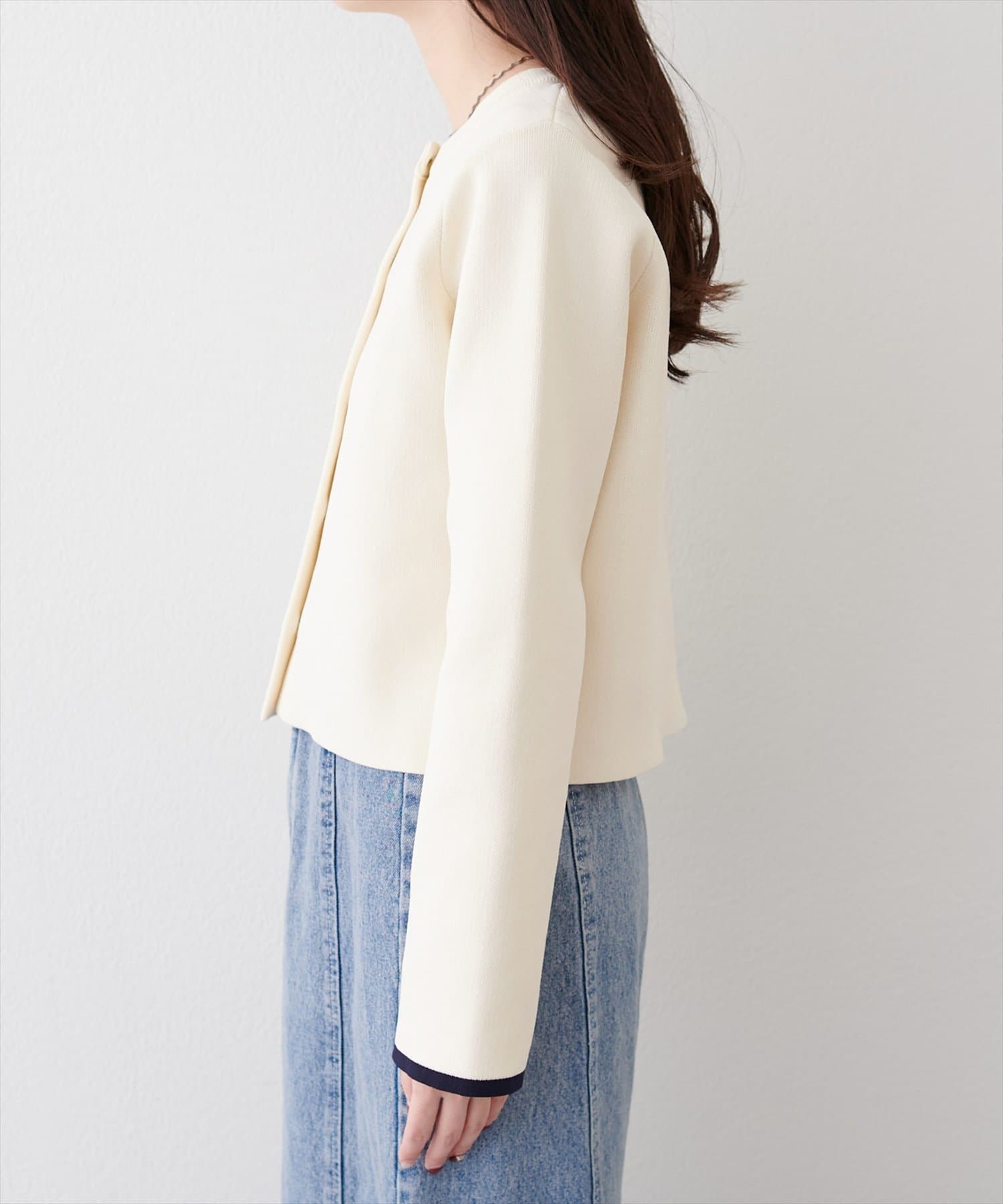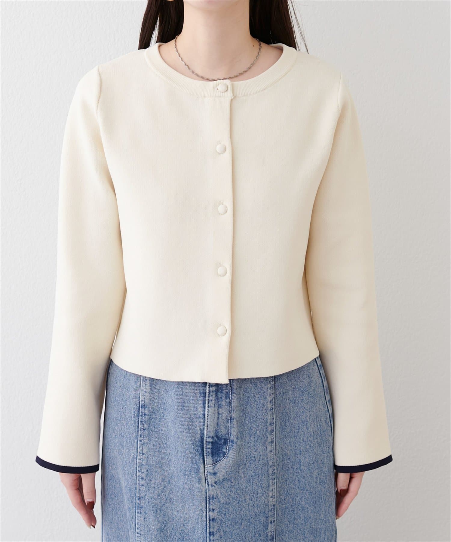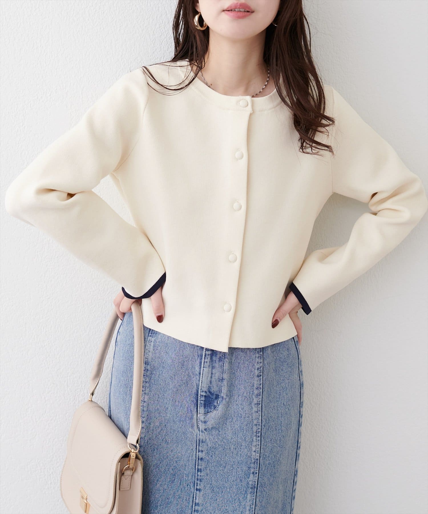 特徴的なのは、袖口に施された配色デザイン。さりげないアクセントが、コーデをワンランク上に。