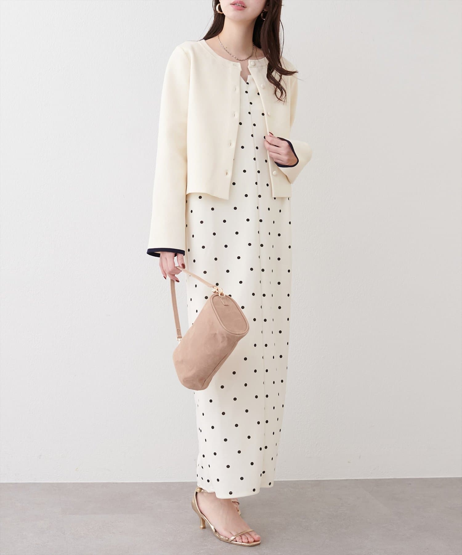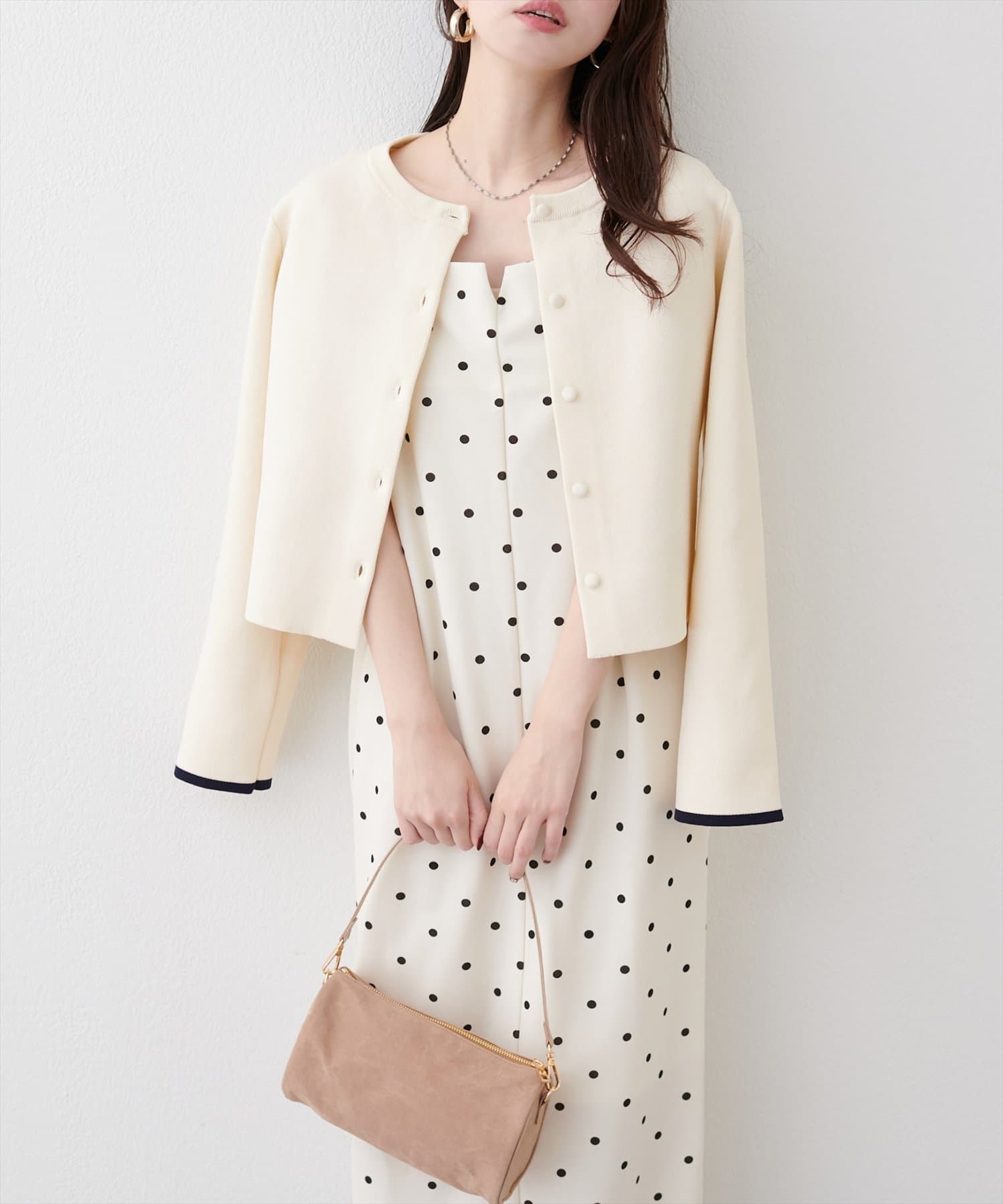 ワンピースの上から羽織れば、フェミニンな印象に。
