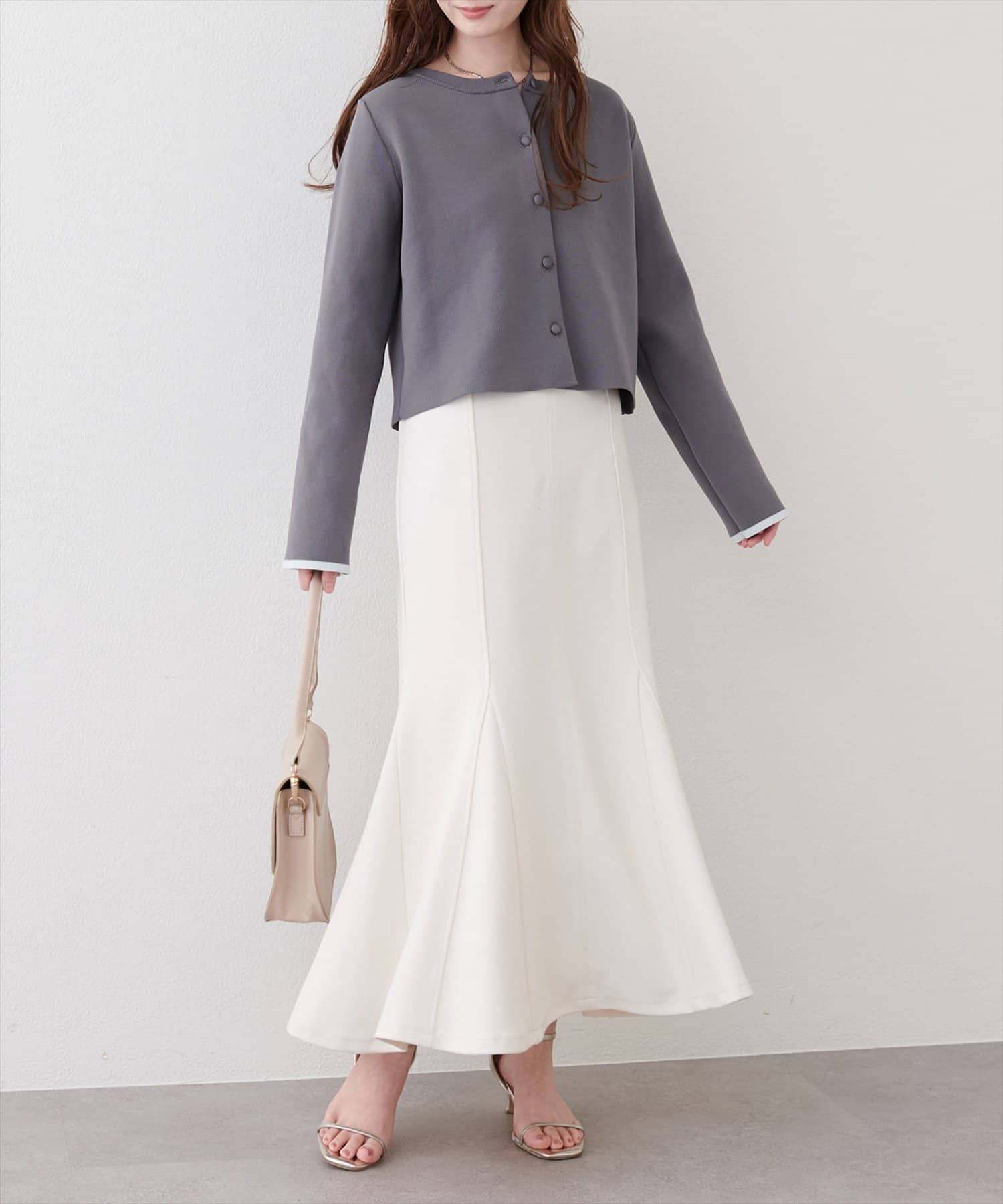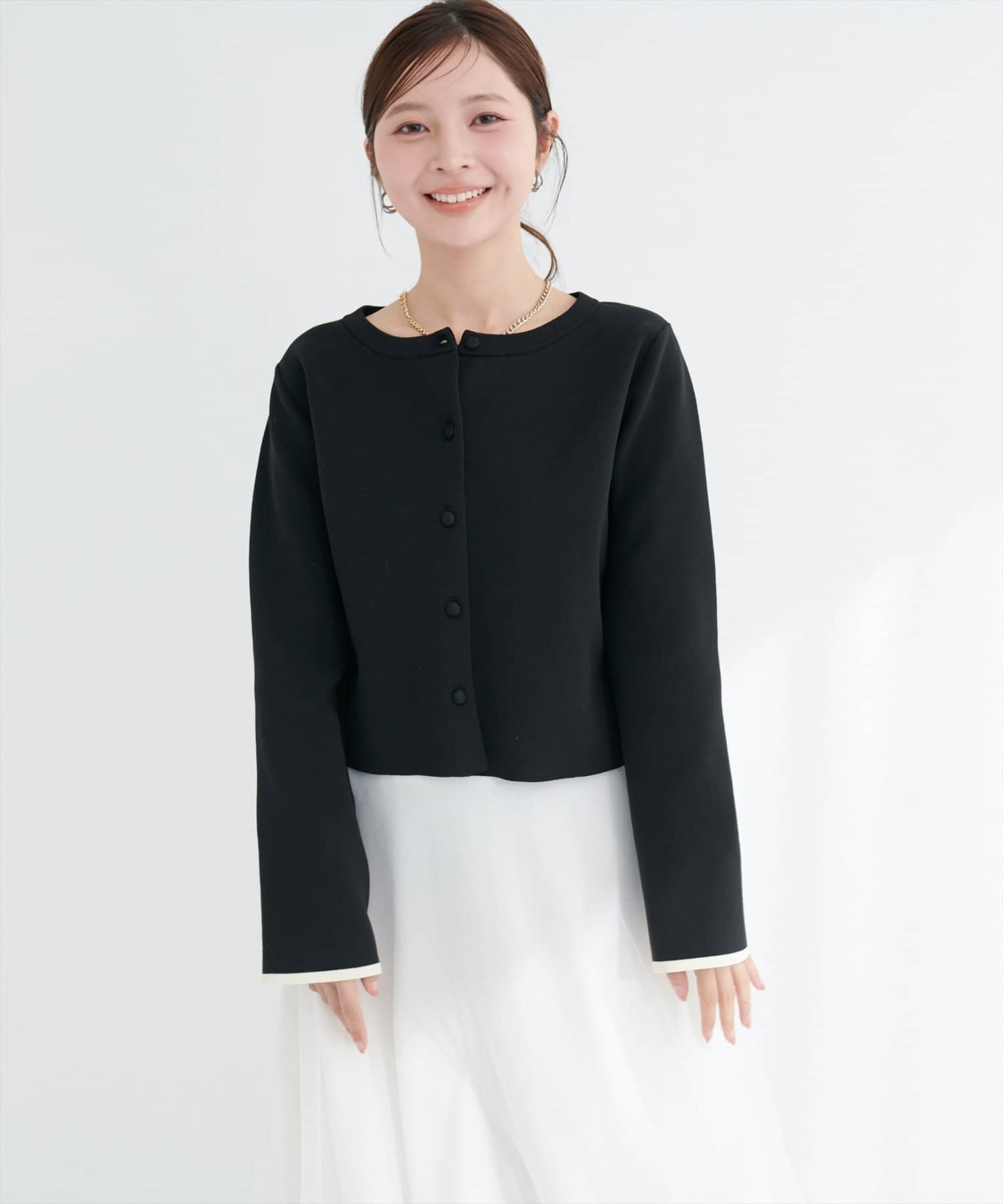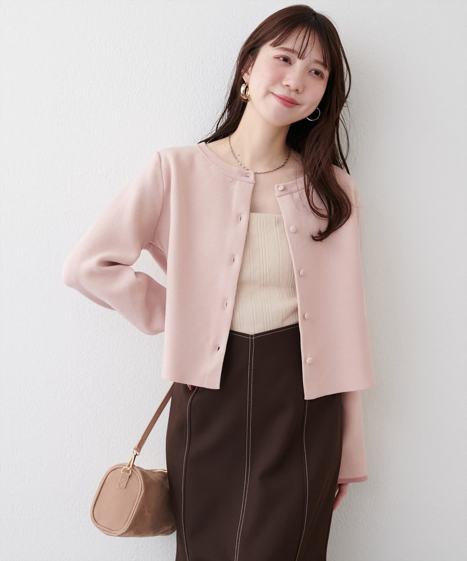 短めの丈感はスタイルアップ効果も期待でき、ワンピースやハイウエストのボトムスとの相性も抜群です。