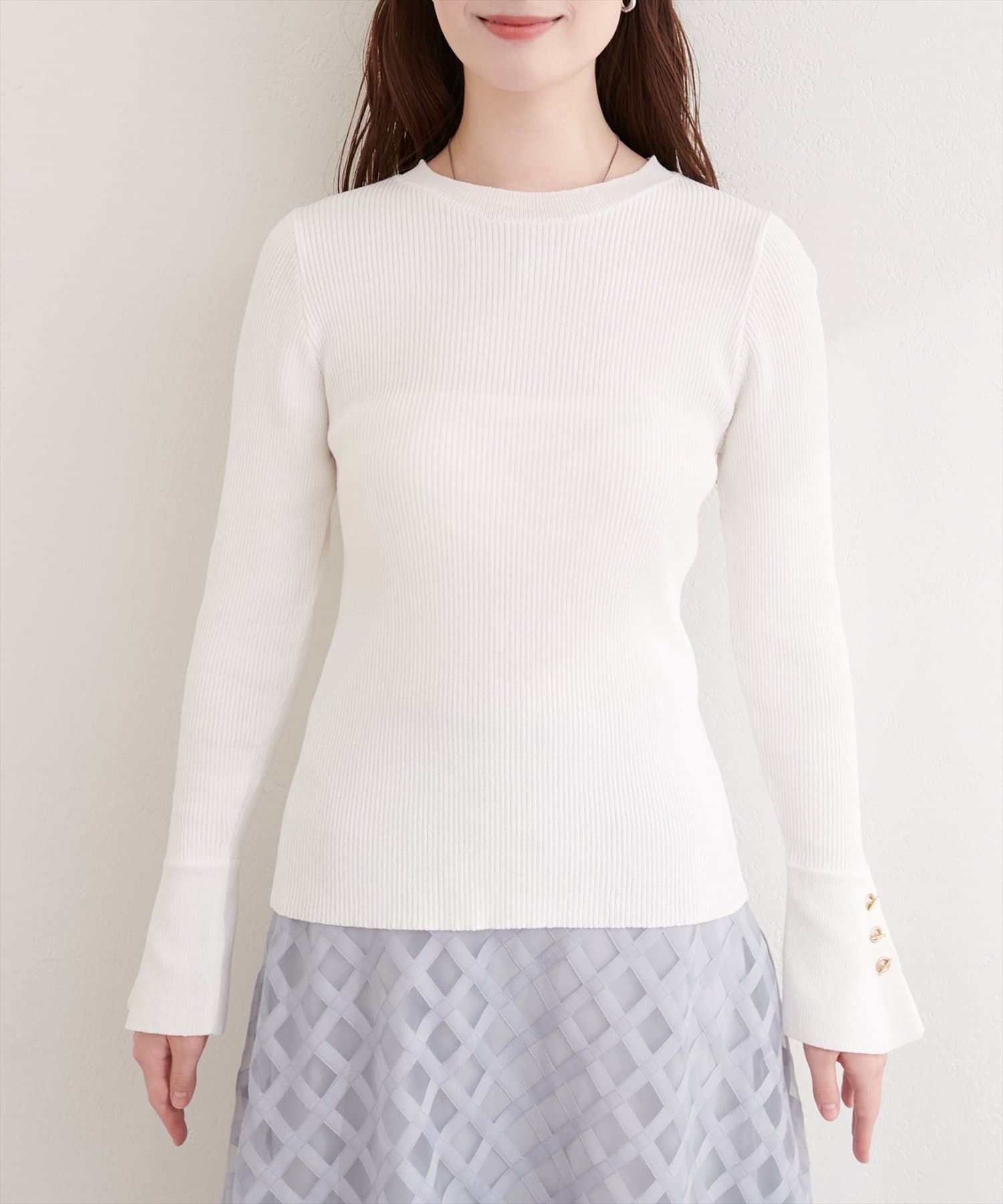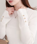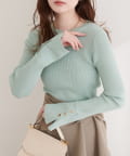 袖口ハトメ釦クルーネックニットプルオーバー