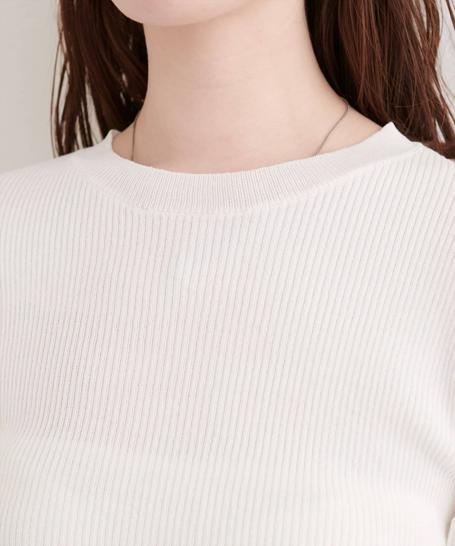 ネックラインは、顔まわりをすっきりと見せるクルーネック。